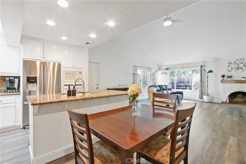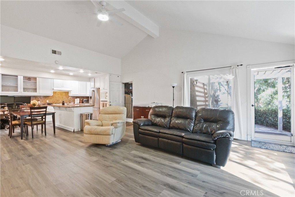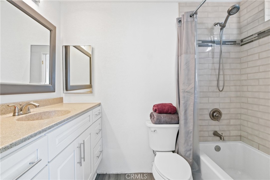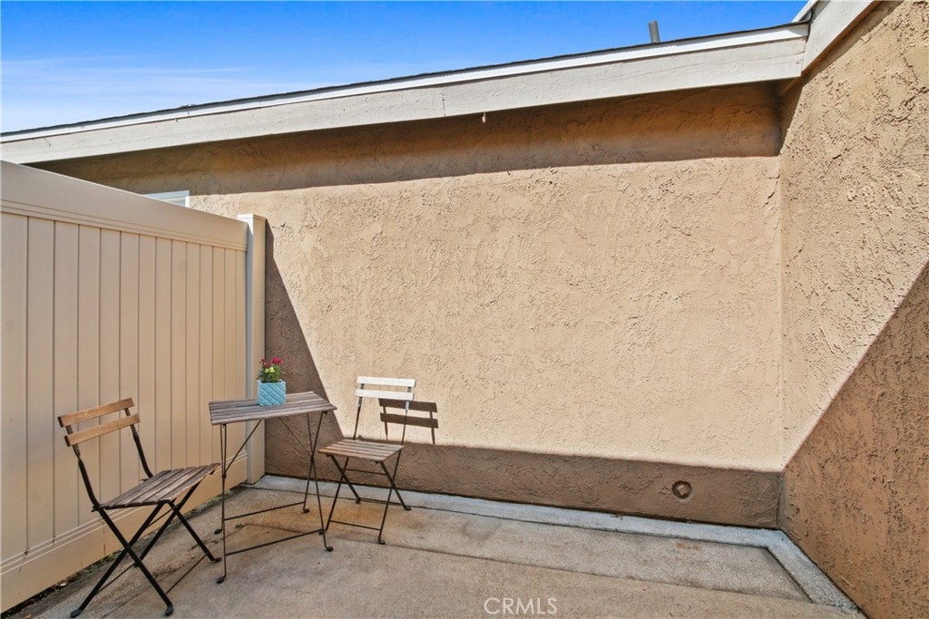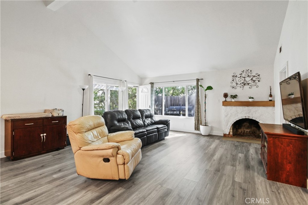 ***Charming Mission Viejo Condo*** This 2 bed 1.5 bath condo features a single-story, open floor plan with an attached 2 car garage and private backyard. The main living space is accented with laminate flooring, vaulted ceiling and a brick fireplace. The open kitchen is complete with a built-in oven/microwave combo, stone countertops, undermount sink and a counter height dining area. The master bedroom features an updated full bathroom and a private patio. The roof was replaced by the HOA in 2020. The home was re-piped with PEX piping in 2021 and there is plenty of storage in the garage and unpermitted loft/attic space. Pheasant Hill is a small community made up of only 20 homes. Residing on the cul-de-sac of the community, this end unit with only 1 shared wall (kitchen) is truly a rare find for Mission Viejo. Conveniently located near the 5 freeway, restaurants and shopping.