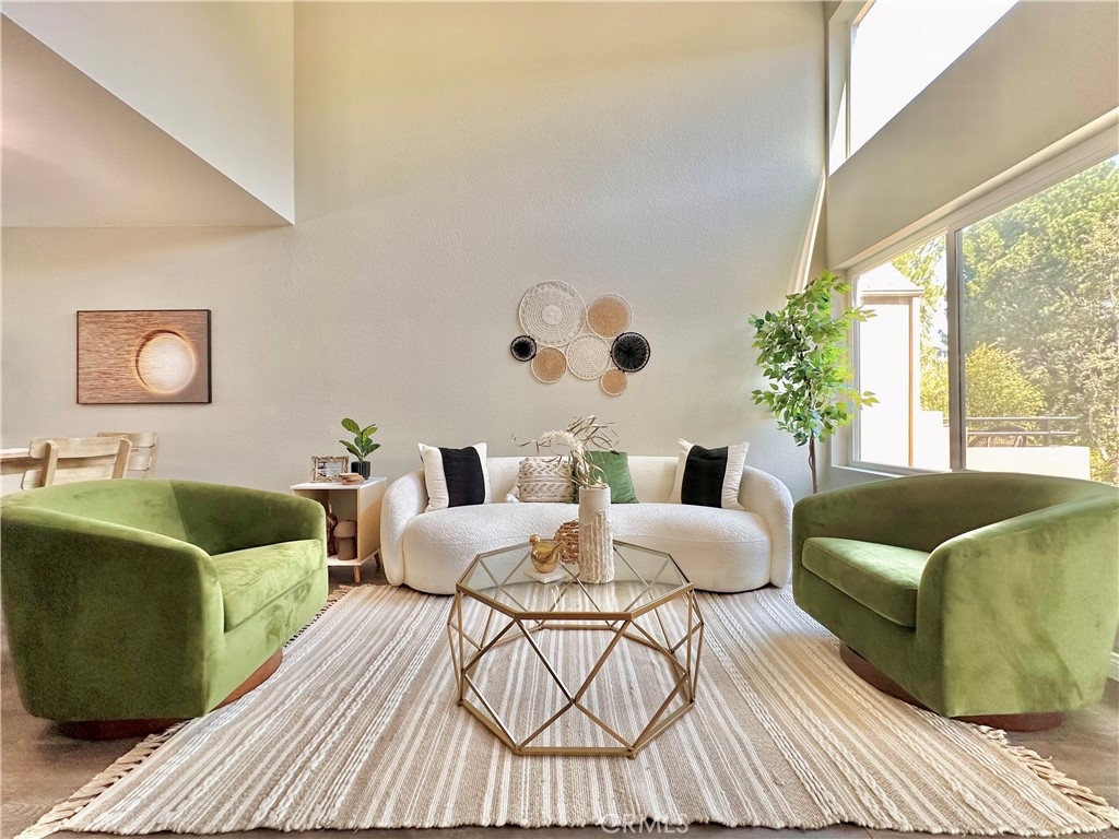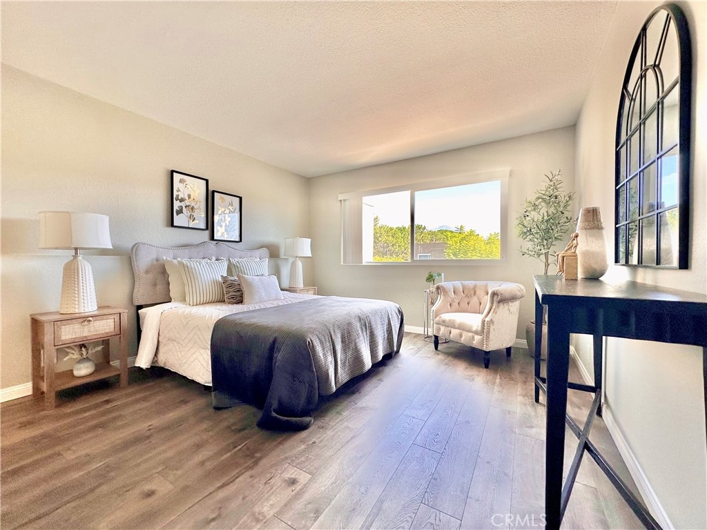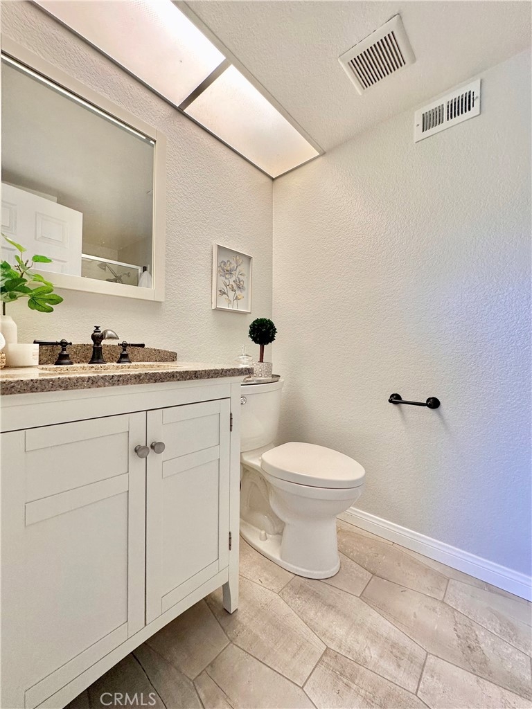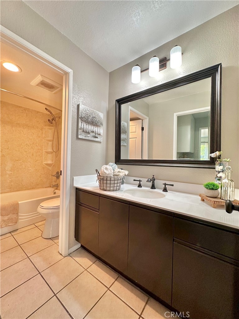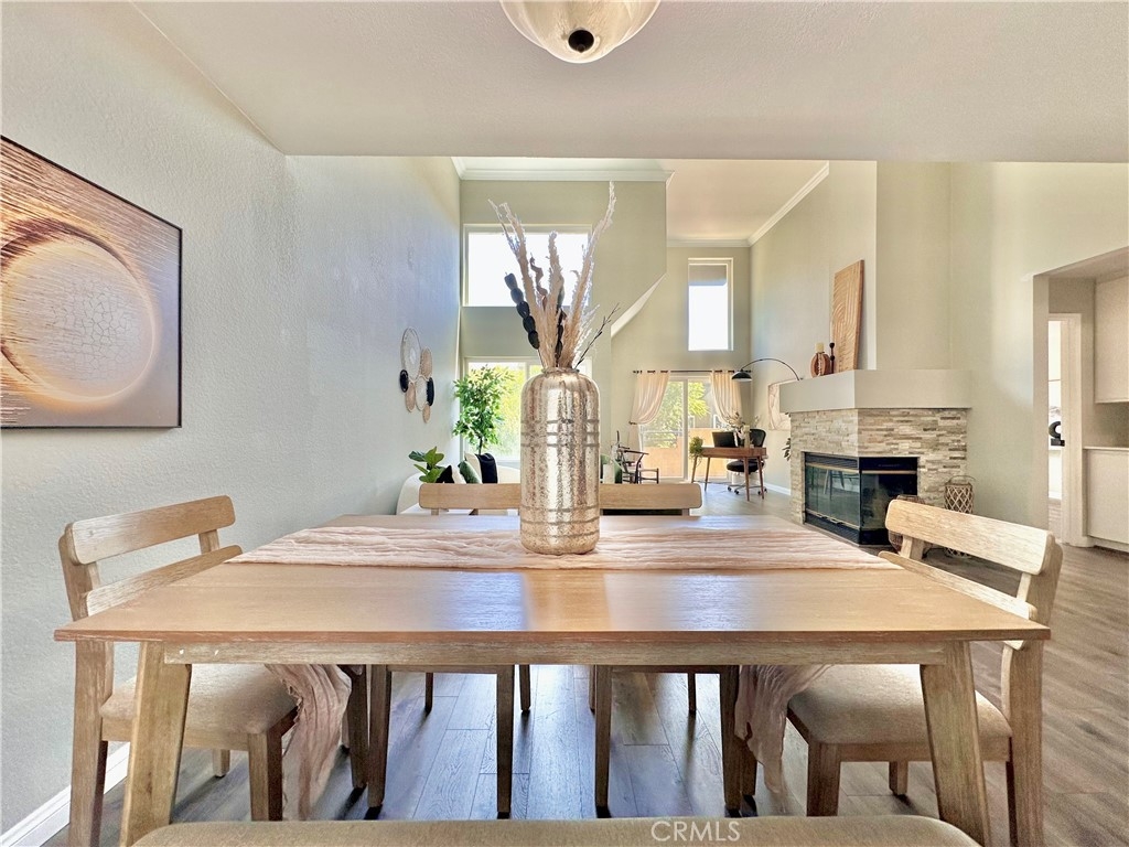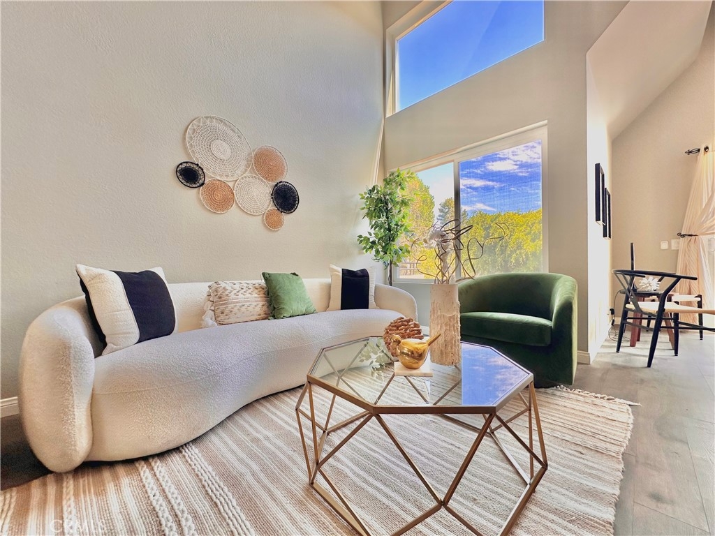 Welcome to this beautifully updated upper-level condo in the heart of Mission Viejo. This spacious two-bedroom, two-bath home offers comfortable living with thoughtful upgrades throughout. Step inside to find soaring, vaulted ceilings, modern paint, dual-pane windows, and laminate wood flooring accented by crown molding and upgraded baseboards. The open-concept layout is filled with natural light, creating a warm and inviting atmosphere. The kitchen is designed with style and function in mind, showcasing light gray cabinetry, quartz countertops, a subway tile backsplash, and a dining area that flows seamlessly into the great room. Here you’ll enjoy a cozy stone fireplace, a light-catching skylight, and access to your private patio with serene greenbelt views. The downstairs bedroom offers versatility as a guest room, office, or flex space, with a walk-in closet, while the upstairs bedroom features wood-like floors, and its own ensuite bath. A convenient in-unit laundry closet near the kitchen and a detached one-car garage with extra storage add everyday ease. Community amenities include two pools, two spas, and membership to Lake Mission Viejo, where you can enjoy boating, swimming, concerts, and year-round events. With no Mello-Roos and close proximity to shopping, dining, schools, and transportation, this home combines comfort, convenience, and lifestyle in one great package.