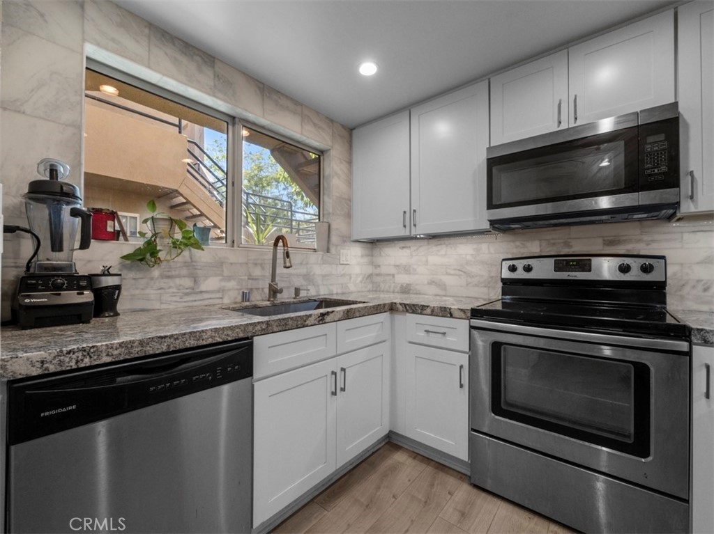 The perfect starter home! This 2bd 1.25 bath unit is located on ground level with no stairs, and a large wrap around yard. Upgraded Kitchen with beautiful grey granite counter tops, white soft closed cabinets backsplash through the whole kitchen and stainless steel appliances. Newer grey indestructible laminate flooring and recessed lighting throughout. Master Bedroom has Laminate Flooring, walk in Closet and vanity. 1 Car Attached Garage with Direct Access. The Rainbow Ridge Community Features 2 Pools and Spas, park, and Lake Mission Viejo membership. Walking distance to Restaurants, and Shopping. Close to tollroads, Lake Forest sports park, and Irvine spectrum.
