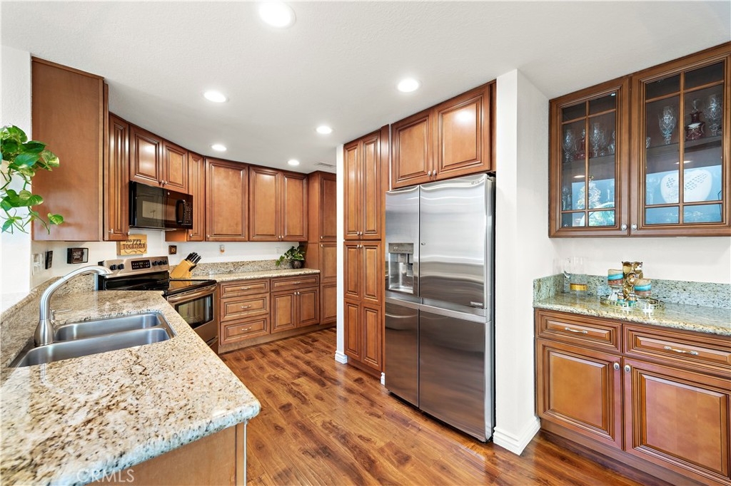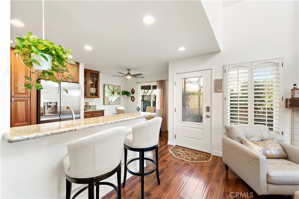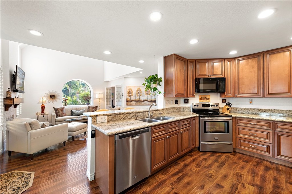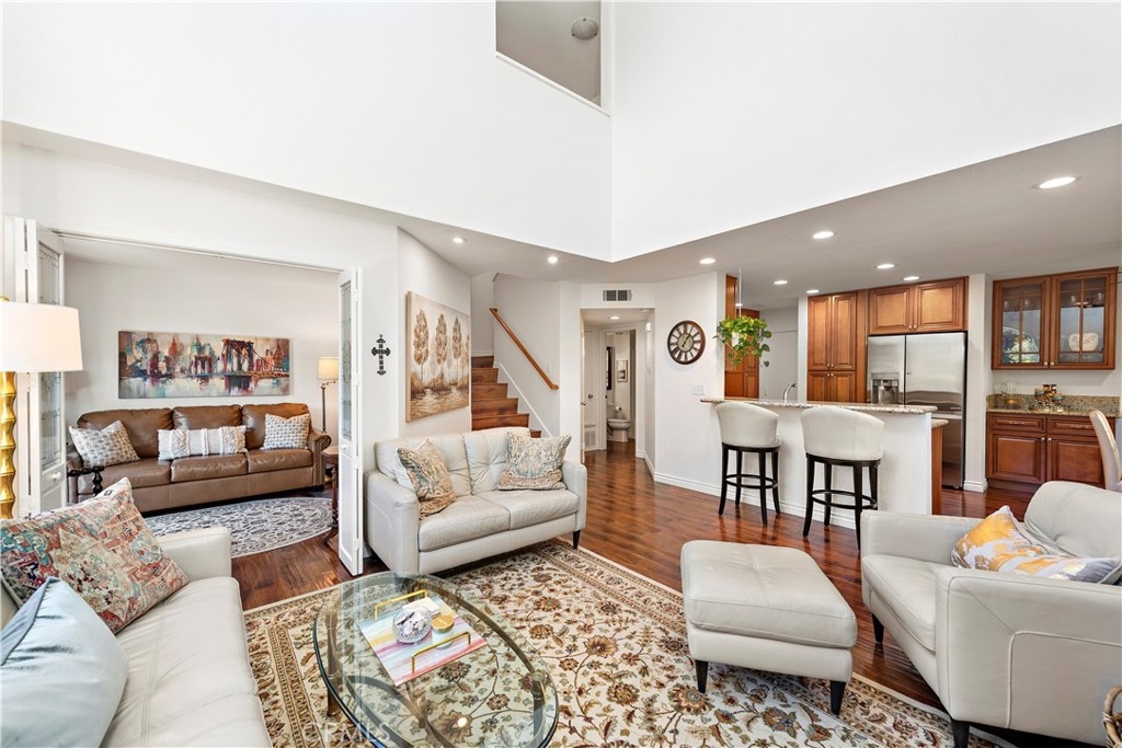 $50,000 price reduction-priced to sell immediately!! Lowest priced meticulously maintained END-UNIT TOWNHOME with 3 bedrooms and 3 bathrooms located in Mission Viejo. This spacious and spotless home features an open concept floorplan and an abundance of newer windows allowing natural light to enhance your living space. Enter into the inviting living room with soaring vaulted ceilings, stunning updated flooring, and a cozy fireplace. The space seamlessly flows into the remodeled kitchen with granite counters, stainless steel appliances, a breakfast bar and a dining area. A bedroom and full bathroom are conveniently located on the first floor which is perfect for guests, a den or a home office. The second floor's primary bedroom features an en-suite bathroom and plenty of closet space. The secondary bedroom is generously sized and is adjacent to the full hall bathroom. This home has been repiped with PEX as well. Enjoy the gorgeous SoCal weather and dining al fresco in your large wrap-around backyard. Community amenities include two pools, spas, a tot lot and access to beautiful Lake Mission Viejo. This home is sure to please!