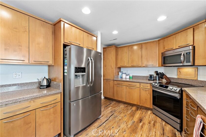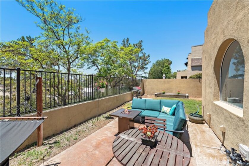 END-UNIT TOWNHOME with 3 bedrooms and 3 bathrooms located in the Rainbow Ridge community. This SPACIOUS, LIGHT, and BRIGHT home features an open concept floorplan. Enter into the inviting living room with soaring vaulted ceilings, updated flooring, and a cozy fireplace. The space seamlessly flows into the open-concept kitchen with granite counters, stainless steel appliances, a breakfast bar, and a dining area. Features throughout include recessed lighting, two-tone paint, large windows, and plantation shutters. A bedroom and full-sized bathroom are conveniently located on the first floor which is perfect for guests or for a home office. The second floor's primary bedroom features an en-suite bathroom with a step-in shower, a granite countertop vanity, and plenty of closet space. The secondary bedroom is generously sized and is adjacent to the full hall bathroom. Enjoy the sunsets and outdoor BBQs in the courtyard and wrap-around backyard. Amenities include two community pools, spas, a tot lot, and a walking path, and access to Lake Mission Viejo. No Mello-Roos. Don't miss out on this home!