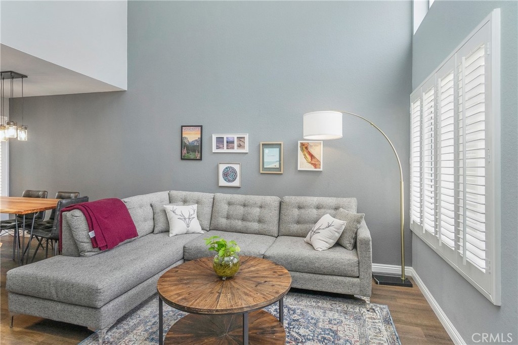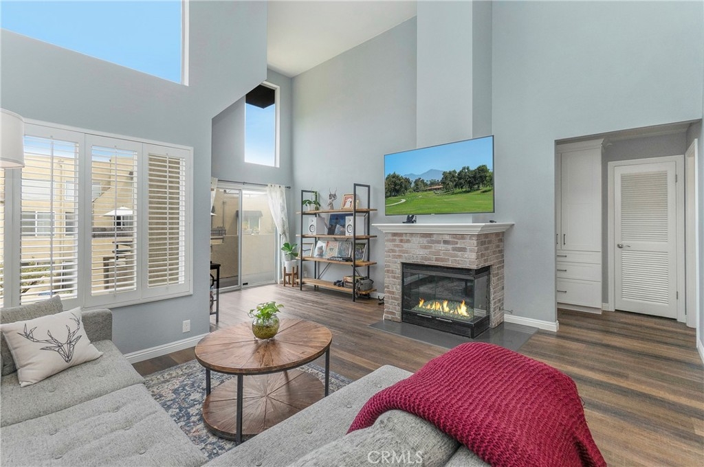 Get ready to be WOWED! Welcome to this BEAUTIFULLY upgraded, upper level, 2 bedroom, 2 bathroom condo. This turn-key home has an open floor plan that features dramatic vaulted ceilings in the living room which allows for a lot of natural light. The kitchen is GORGEOUS with its expansive quartz counter top, white cabinets, stylish backsplash, stainless steel appliances, large sink, and recessed lighting. The primary bedroom in located on the main level and has a walk-in closet with custom built-ins. The primary bathroom has been updated from floor to ceiling with a pleasing rustic aesthetic. Located on the second floor is the SPACIOUS secondary bedroom and has its own private bathroom. The home has been re-piped with Pex piping, has a nice clean open balcony, and comes with a one car garage and an additional parking space. The HOA amenities include pool & spa, court and playground. The second HOA allows for access to Mission Viejo Lake. This home is located walking distance to the local high school, elementary school and Saddleback Church. Such a lovely home you don't want to miss!