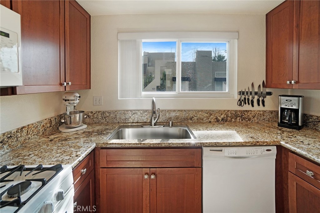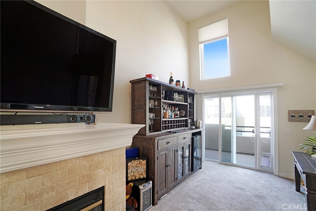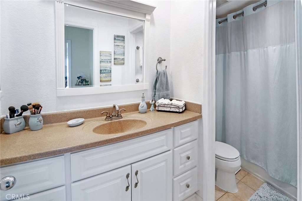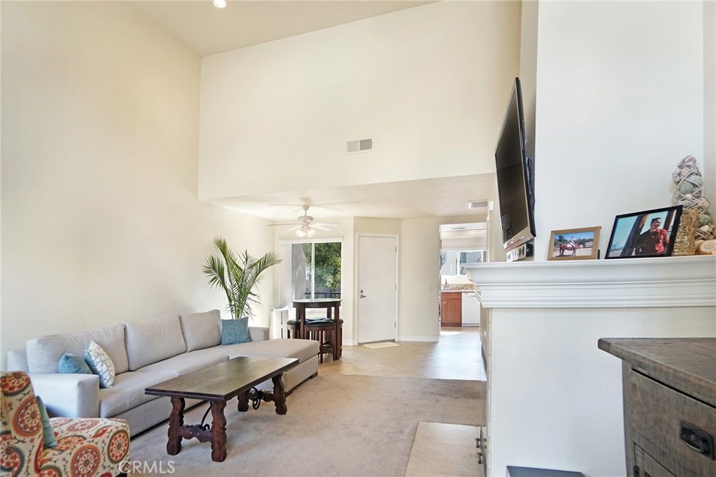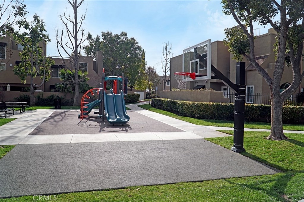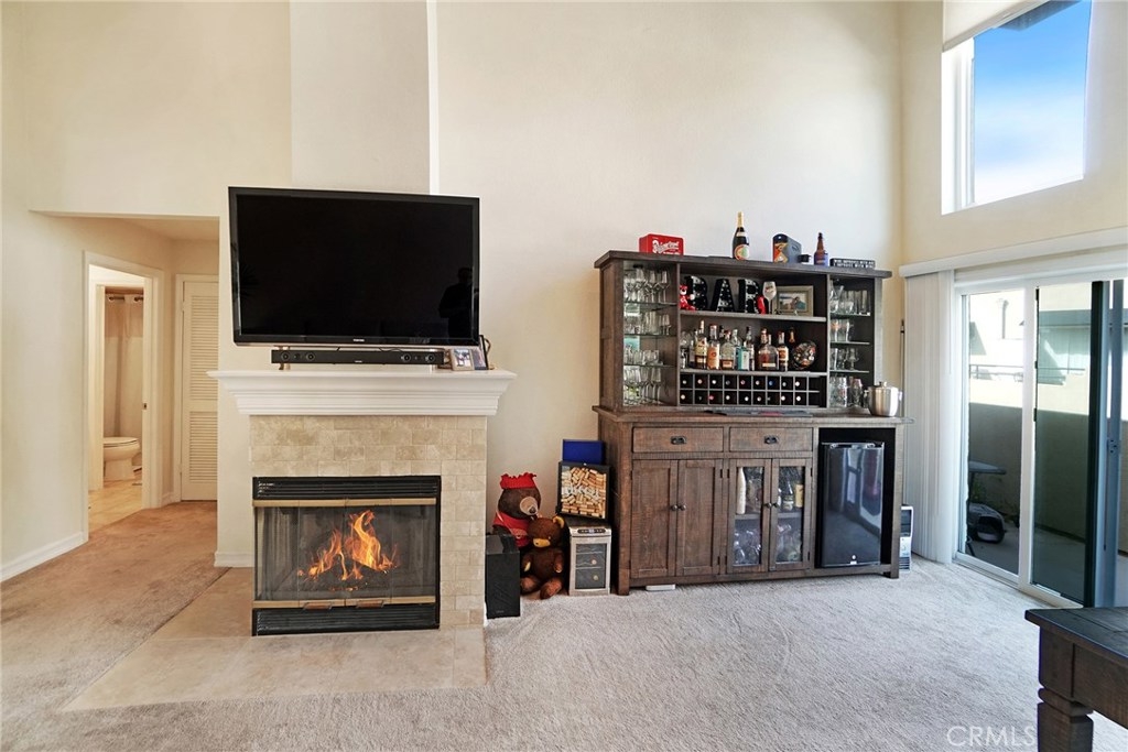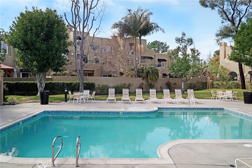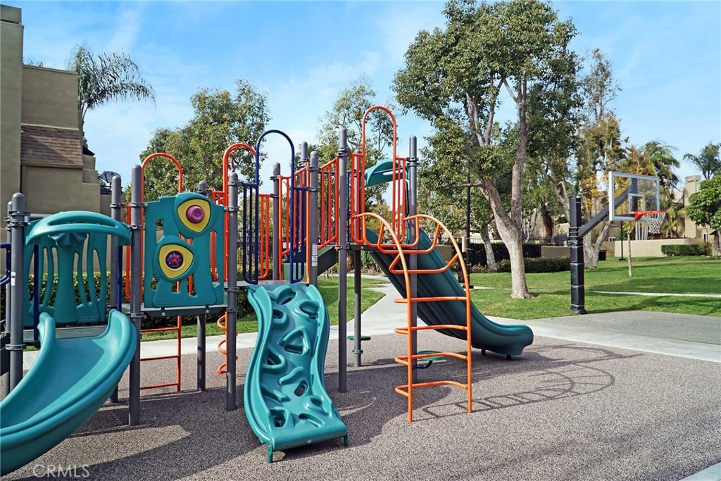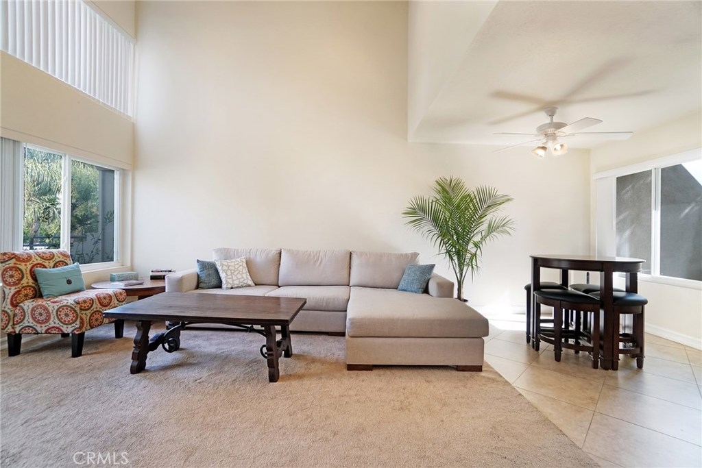 Two story top floor condo unit with huge vaulted ceilings. Front patio and rear balcony. Separate bedrooms and baths. One bed / bath master suite upstairs on the second level. Main floor has separate bedroom and bath, living room / dining room - great room space. Kitchen with included stacked full size washer & dryer, refrigerator, gas stove (one of very few in the complex), kitchen with granite counters, newer wood cabinets and fixtures. Tile floor entry. Gas fireplace in living room. Plenty of living space which feels even larger. One car garage below unit with storage space. Outstanding part of the community near an awesome pool. Other pool and playground area in the complex too. You will love the feel of this home! AND: membership to the Lake Mission Viejo Association: lake privileges include fishing, boating, concerts, picnic grounds, sandy beaches and more.