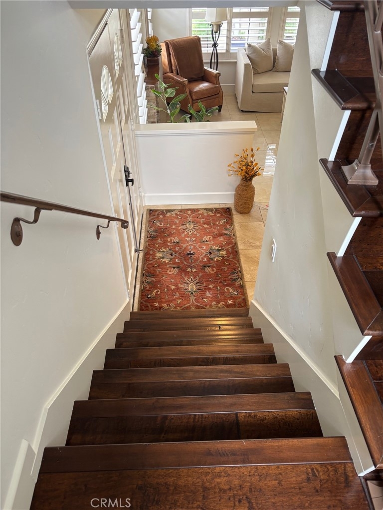 Price Improvement!!!Turn-key, move-in ready home located in the Ridgemont community in Mission Viejo! This beautifully upgraded townhome offers an ideal location just minutes from the nearby park and the newly remodeled pool and spa. Step inside the double door entry to find tile flooring throughout the first level and a bright, open floor plan that seamlessly connects the living, dining, and kitchen areas. The inviting living room features large windows with shutters while the adjacent dining area opens to the private patio—perfect for relaxing or entertaining. The spacious kitchen boasts white shaker cabinetry, stainless steel appliances, and recessed lighting. An upgraded guest powder bath is located on the main level adjacent to the direct access garage entry. The stairway, landing, and tech area features hardwood flooring and wrought iron railings. On the second floor you’ll find two generously sized suites, offering privacy and convenience, each with its own upgraded ensuite bath with custom cabinetry. The primary suite enjoys beautiful sunset views, upgraded crown moldings, and a walk-in closet with custom organizer. The secondary suite is equally generous, with high ceilings, above storage, mirrored wardrobe doors and a custom closet organizer. Additional highlights include direct access to a 2-car garage with laundry hookups (washer & dryer included), stacked stone fireplace in the living room. This home has been newly painted, with upgraded baseboards and features a tankless water heater. The patio has a drip irrigation system with timer for plant lovers. With easy access to the 5 freeway and toll roads as well as ample guest parking this townhome is the perfect blend of convenience and comfort.