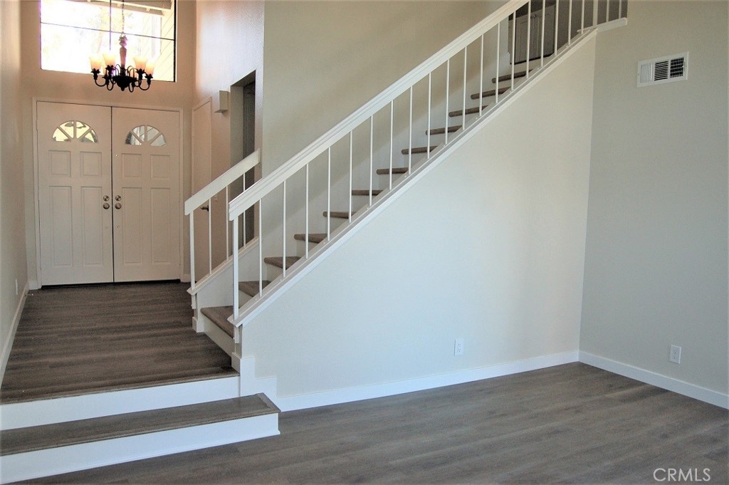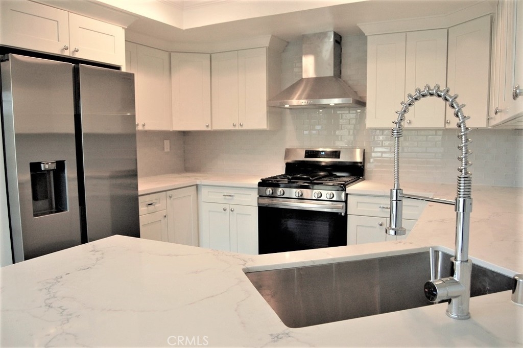 SPECTACULAR townhome that has been completely remodeled! EVERYTHING inside is BRAND NEW . . . and on an unobstructed 150 degree view lot! As you enter, you notice the wood flooring, fireplace and the soaring ceilings with towering windows washing the unit in light. The kitchen completely new with custom cabinets, Quartz counter tops, tile backsplash and the new (never been used) stainless steel appliances that include: side-by-side refrigerator with ice maker, self-cleaning oven with grilling range, dramatic vent hood, dishwasher and a very special microwave drawer. Add the Farmer's sink, upgraded faucet, recessed lighting and expanded counter top for bar eating in the kitchen. The wood flooring runs through the complete unit. The dining area features a ceiling fan and all of this looks out upon your private view patio. Upstairs is a large master bedroom with a sitting area, duel mirrored wardrobes and a ceiling fan. The master bathroom has dual sinks, Quartz counter tops, new cabinets, framed mirror, recessed lighting and the custom shower is tiled with a large insert and a special roller glass door. The other two bedrooms have mirrored wardrobes, ceiling fans and the upstairs bath is all new. There is a two car attached garage, newer air conditioner and water heater. The association has a swimming pool and you have access to Lake Mission Viejo. The developer, William Lyon, re-piped all the units.