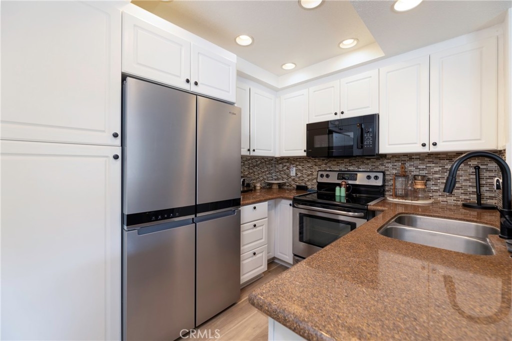 Price Improvement for this Beautiful, Upgraded 2 Bedroom, 1 Bath Ground Floor Unit featuring a Large Private Fenced Backyard with newly replaced Vinyl Fencing and a fruit bearing Orange Tree. The back yard is ideal for a bar-b-que parties or just enjoying your garden. Interior is Freshly painted throughout. Remodeled Kitchen has Granite Countertops and Upgraded Back Splash, a Stainless Steel Sink and Stainless Steel Appliances. Remodeled Bathroom with Walk-In Shower with Freeway Tile. New Designer Tile Flooring throughout the Home. Wall Air Conditioning, new Wall Heater and Ceiling Fans. There is 1 dedicated parking space in front of the Condo. Guest Parking is available. Enjoy the amenities at Lake Mission Viejo close by which includes the beautiful Lake, with several Beaches, Docks for Renting Boats, Fishing and many other park like areas. Great Family Neighborhood. Wonderful Location.