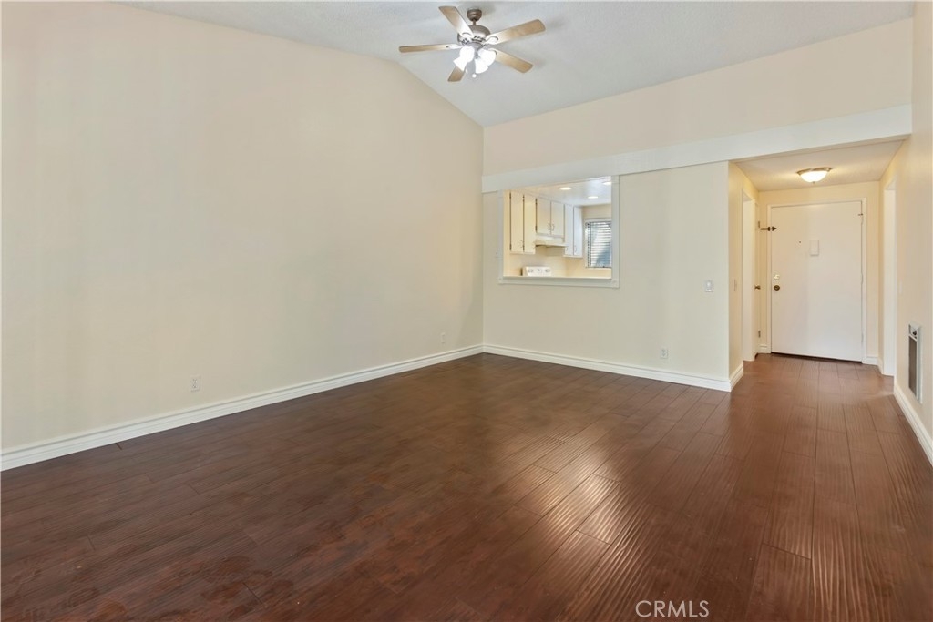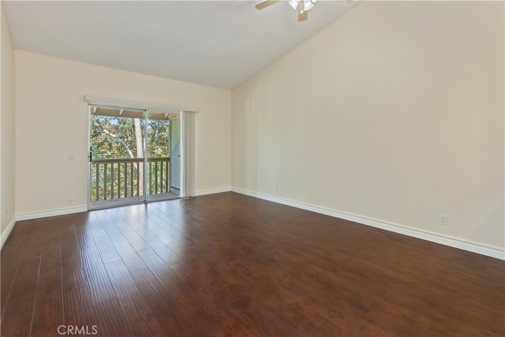 Price Just Lowered! Nicely maintained 2 bedroom 1 bath upper unit in the Valencia HOA community. This bright and roomy condo has been freshly painted throughout and has new carpeting in the bedrooms. The Living Room, Kitchen and Hall have laminate flooring that is in good condition. The Living Room has a desirable high vaulted ceiling which adds volume to the space. The kitchen is light and bright with freshly painted cabinets. Both bedrooms are roomy and bright with ample closet space. The Bathroom shows nicely with tile flooring and a refinished tub/shower. The Laundry closet area is conveniently located off the rear deck. The community is located close to shopping, entertainment and beaches and is in walking distance to a nearby park. Additionally, the condo has access to Lake Mission Viejo which provides year round activities.