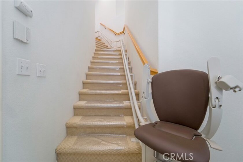 Location, location, location, sets this fabulous 2 bed, 2 bath, 2 car garage home apart from the rest, as it backs to the Oso Reservoir and provides great accessibility! Rare opportunity to own an upgraded home in a serene setting, with access to community amenities and award winning schools.! Spend your Summer on Lake Mission Viejo, located just a couple of miles away! Enjoy pools, parks, sport courts and access to hiking and biking trails, just minutes away! This lovely home, with no-one above or below you, boasts a double drive, extra deep two car direct access garage and an accessible chair lift for a flight up stairs, taking you to the second floor encompassing the complete floor plan! Once you arrive, you have no reason to come down until you leave again, as there is an intercom system to support the ease of visitors or deliveries. Living and dining rooms boast cathedral ceilings, hardwood flooring, plantation shutters and a cozy fireplace. The large balcony opens up from the dining room and also the secondary bedroom, offering plenty of room to grill and entertain, or just relax and enjoy the breezes off of the Reservoir. The kitchen spans much of the home, offering a huge breakfast bar, a newer s.s. set of appliances, including the refrigerator and boasts a walk in pantry! The laundry room sits right off of the kitchen for ease of use! The owner's suite is complimented by a generous walk in closet, and bath with shower, tub with dual vanities! The secondary bed and bath are on the opposite side of this fabulous floor plan, for a very usable and private space for family, visitors, or home office! This home sits just off of the wilderness trails that wrap around the Oso Reservoir offering views and space to enjoy nature! This is an upgraded, light, bright and clean home, where you can just pack and move in! Upgrades throughout include hardwood flooring, plantation shutters, maple cabinetry, slab granite, newer s.s. appliances, recessed lighting and much more. Spend your Summer at Lake MV enjoying concerts, boating, fishing, movies at dark, volleyball, classes for kids and more! This home can cater to many different abilities, with the direct access garage, chair lift for any with mobility challenges and ease of use once up at the second floor, all living and sleeping quarters are laid out to enjoy. Low taxes, no mello roos, location, award winning schools, access to dining and shopping and Lake M.V. membership, make this a special one!