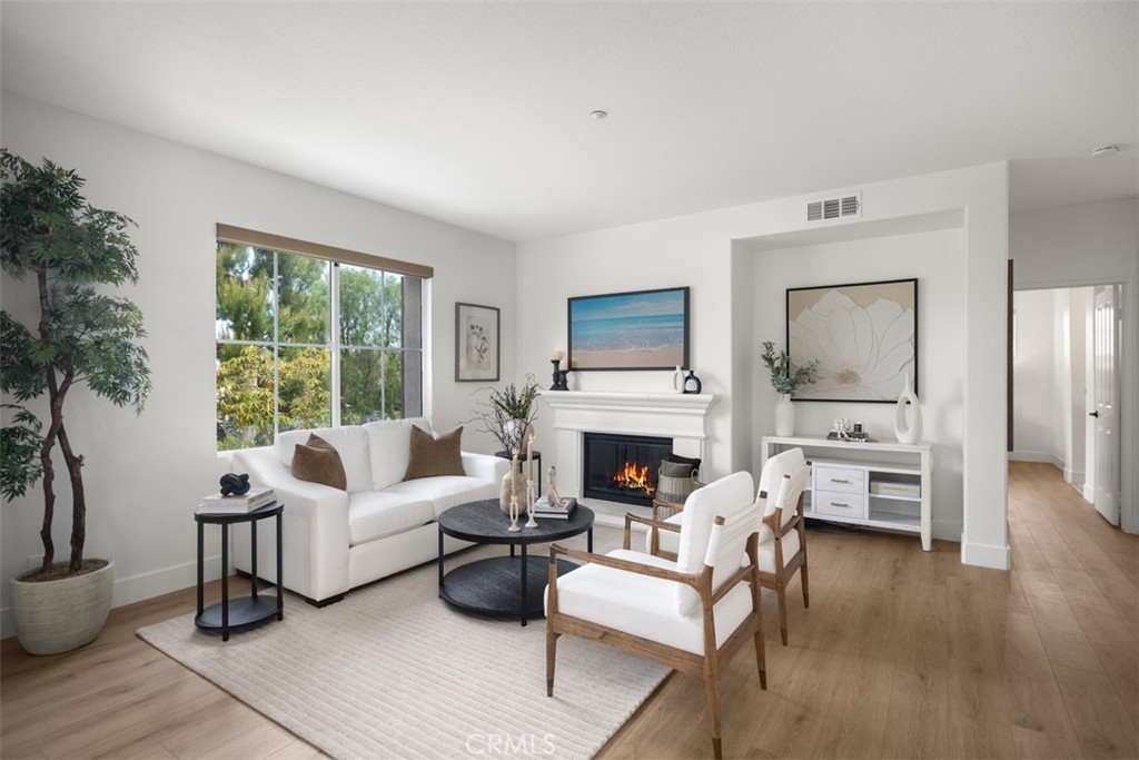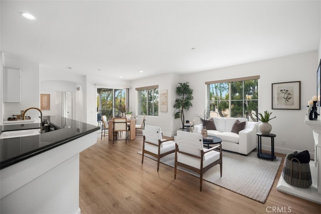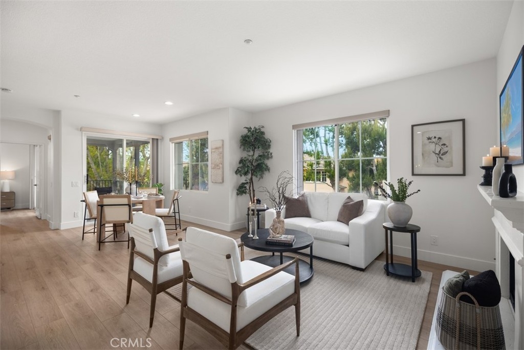 Welcome home to this amazing Sienna Ridge corner unit in Painted Trails Neighborhood, offering brand new upgrades and freshly-painted, bright and airy with an open floor plan and lots of windows for natural light. Pride of ownership is apparent in every corner. This unit sides to a greenbelt and park/picnic area. New neutral Luxury Vinyl Plank throughout. Open kitchen concept with breakfast bar opens to living and dining areas, adorned with granite slab counters & full slab granite backsplash. Samsung stainless steel appliances, including fridge, washer and dryer, recessed lighting and euro cabinets are added features. Living and Dining great room enjoys plenty of natural light and a well-placed fireplace. Generously sized bedrooms are located opposite of each other, creating privacy. Main bedroom is well-appointed with a new en-suite modern bathroom with step-in shower and a large walk-in closet. Spacious outdoor balcony adds to the nature-loving feeling of this community. Painted trails is a beautiful development that offers walking paths and trails with hilltop views and majestic views of Saddleback Mountains, and surrounding rolling hills, and water reservoir. This tree-lined community's Story Book appearance charms you from the minute you enter its boundaries. Community is well-maintained and professionally-managed. Enjoy all the community offers including walking paths, tot lots, sport courts swimming pools, Mission Viejo Lake, and majestic views, only minutes away from great schools, shopping, employment, and entertainment hubs.