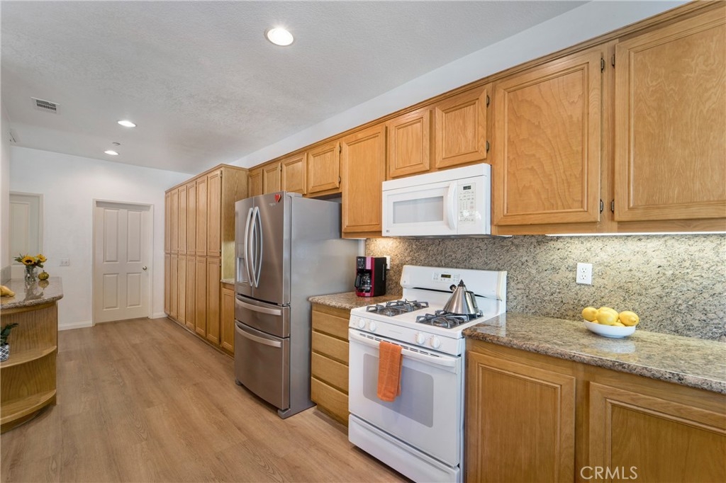 This incredible townhome is located down a private walk, with a welcoming front porch and a large, fenced backyard! Located at the base of the Saddleback Mountains, sits this gorgeous Mediterranean community called Painted Trails, with olive trees that line the entrance. Built around the Oso Reservoir, offering endless opportunities to enjoy outdoor living! Walking trails wind around the community offering a fitness park, a rose garden and views of the water and the mountains! Enter into the formal living and dining rooms graced with a warm fireplace and built in entertainment center. This kitchen is the most popular in the tract, as it spans the length of the downstairs with generous counter space, a work area and more than ample storage!! Slab granite covers the counters, and the sellers just purchased a brand new s.s. refrigerator, which they are gifting to the new owners!l There is also a newer Bosch dishwasher! The living room leads out to this amazing backyard, which offers space to rest, play, garden and entertain! The downstairs offers a guest bath as well as an individual laundry room filled with a newer washer and dryer, that is also being gifted to the lucky buyers! The downstairs is graced with all newer flooring, plantation shutters and ceiling fan. The sellers recently replaced the hot water heater so a new buyer does not have to worry about the longevity or efficiency. The upstairs presents a large master suite with walk in closet, second closet space as well as a linen cabinet. Tub, shower and dual vanities compliment this space. Two secondary bedrooms offer plenty of room to accommodate family, or guests and a home office. The secondary upstairs bath, sits in between both secondary bedrooms, as does a secondary storage area with counter top for display. The two car garage is an expanded size, which helps to accommodate two cars as well as storage. The backyard is a very generous size and offers space for entertainment, play and gardening! Currently hardscaped and softscaped, with a lovely space to garden and grow! Painted Trails offers wonderful community amenities, award winning schools just minutes away, low taxes and Lake Mission Viejo membership! Located close to shopping, dining, hiking and biking trails and just a couple of miles from all of the lake amenities! Be home for the holidays, and see how this community lights up with decorations and spirit!