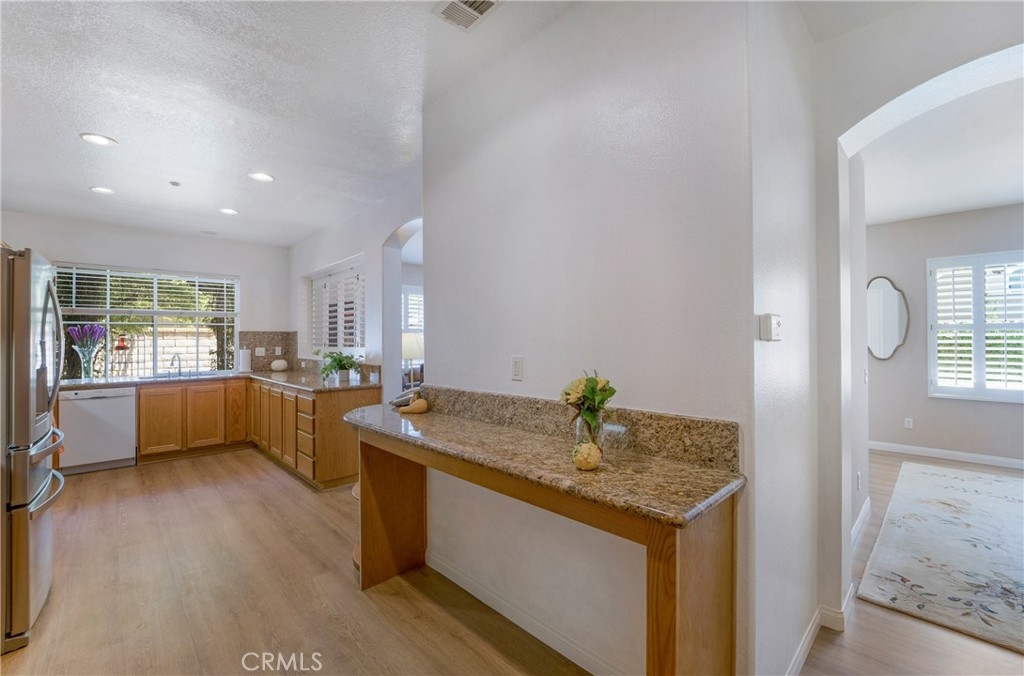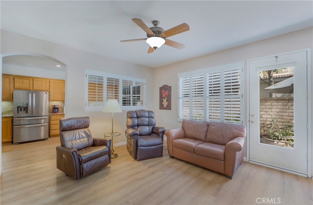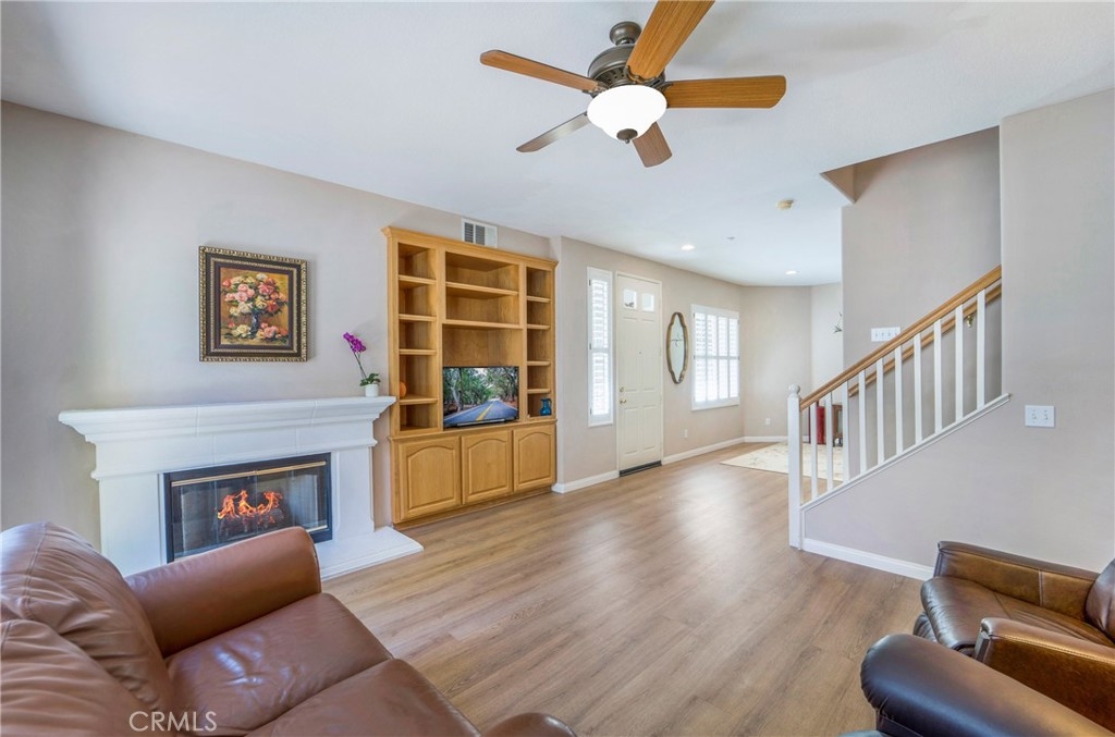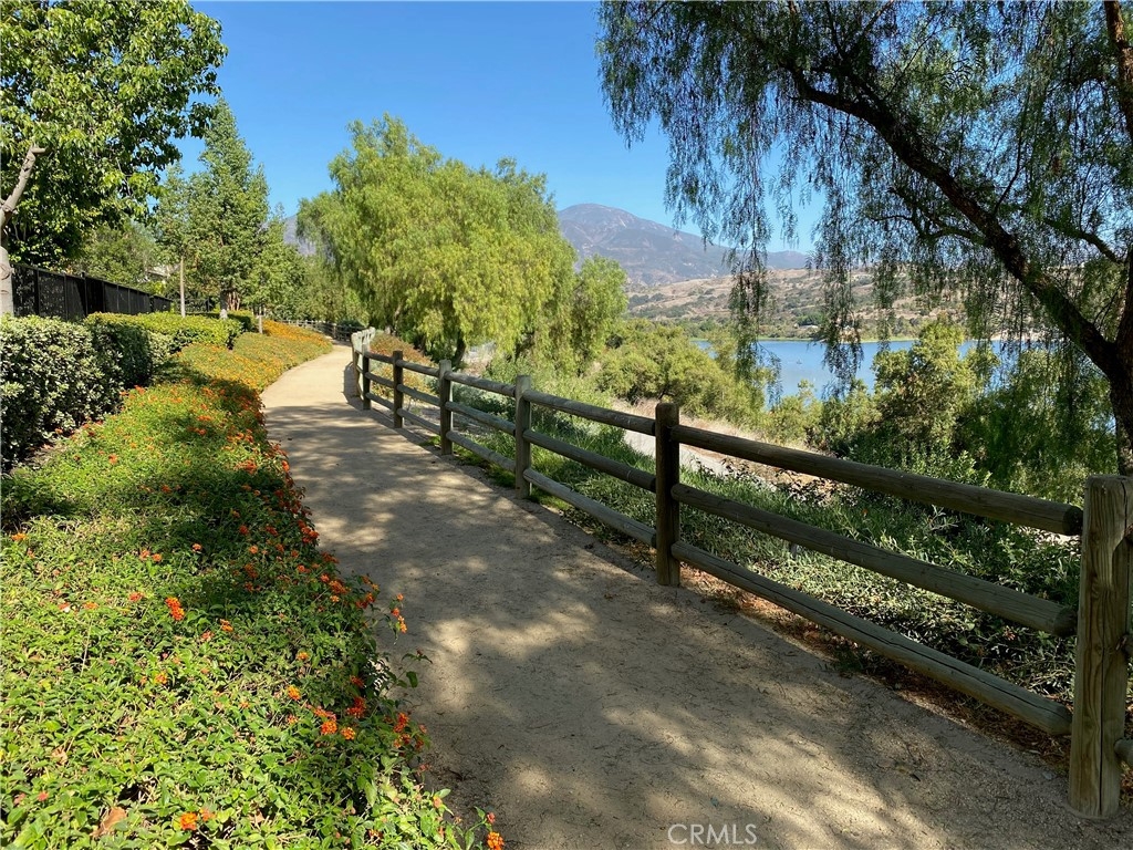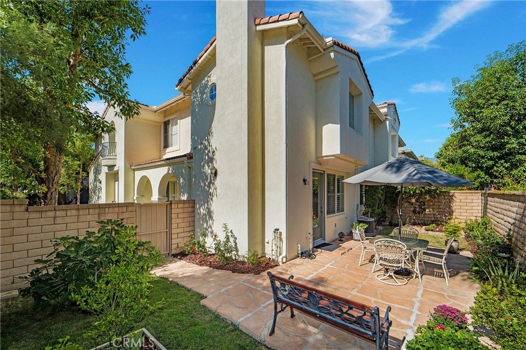 This incredible townhome is located down a private walk, with a welcoming front porch and a large, fenced backyard! Located at the base of the Saddleback Mountains, sits this gorgeous Mediterranean community called Painted Trails, with olive trees that line the entrance. Built around the Oso Reservoir, offering endless opportunities to enjoy outdoor living! Walking trails wind around the community offering a fitness park, a rose garden and views of the water and the mountains! Enter into the formal living and dining rooms graced with a warm fireplace and built in entertainment center. This kitchen is the most popular in the tract, as it spans the length of the downstairs with generous counter space, a work area and more than ample storage!! Slab granite covers the counters, and the sellers just purchased a brand new s.s. refrigerator, which they are gifting to the new owners!l There is also a newer Bosch dishwasher! The living room leads out to this amazing backyard, which offers space to rest, play, garden and entertain! The downstairs offers a guest bath as well as an individual laundry room filled with a newer washer and dryer, that is also being gifted to the lucky buyers! The downstairs is graced with all newer flooring, plantation shutters and ceiling fan. The sellers recently replaced the hot water heater so a new buyer does not have to worry about the longevity or efficiency. The upstairs presents a large master suite with walk in closet, second closet space as well as a linen cabinet. Tub, shower and dual vanities compliment this space. Two secondary bedrooms offer plenty of room to accommodate family, or guests and a home office. The secondary upstairs bath, sits in between both secondary bedrooms, as does a secondary storage area with counter top for display. The two car garage is an expanded size, which helps to accommodate two cars as well as storage. The backyard is a very generous size and offers space for entertainment, play and gardening! Currently hardscaped and softscaped, with a lovely space to garden and grow! Painted Trails offers wonderful community amenities, award winning schools just minutes away, low taxes and Lake Mission Viejo membership! Located close to shopping, dining, hiking and biking trails and just a couple of miles from all of the lake amenities! Be home for the holidays, and see how this community lights up with decorations and spirit!