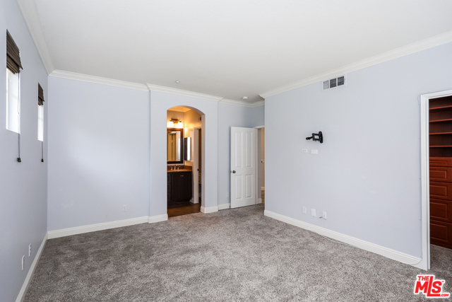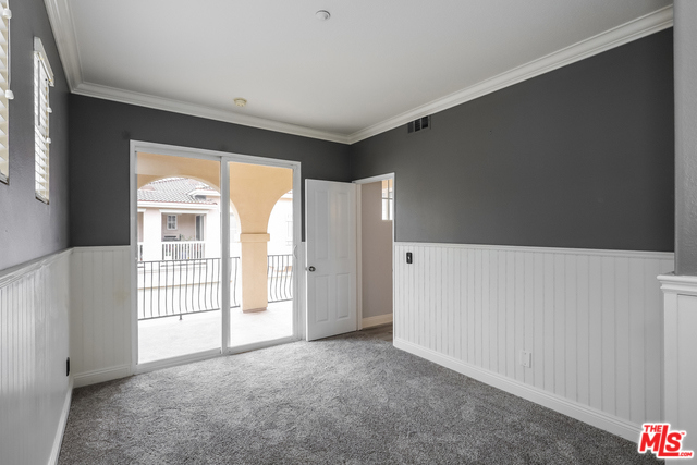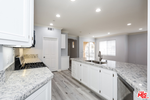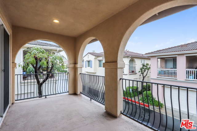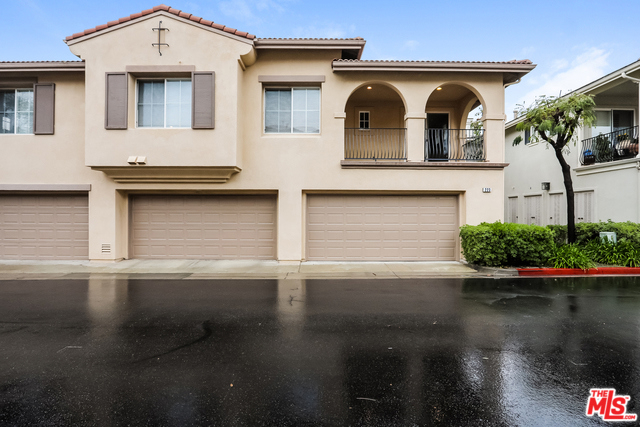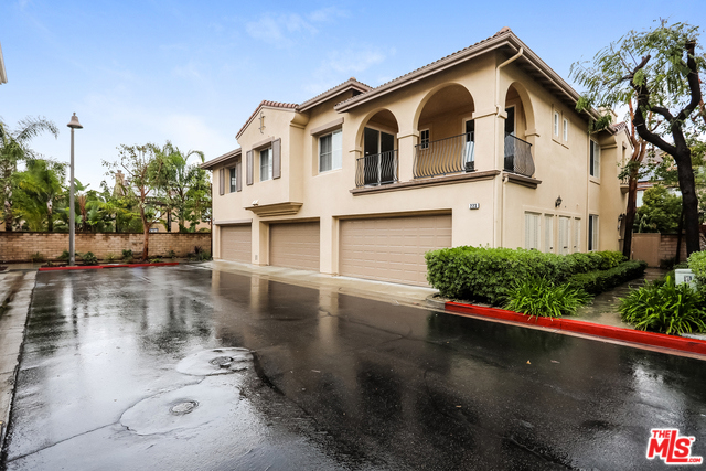 This Mission Viejo two-story offers a fireplace, granite kitchen countertops, a kitchen island with breakfast bar, a master bathroom with dual sinks, a master bedroom walk-in closet, a covered balcony, and a two-car garage.