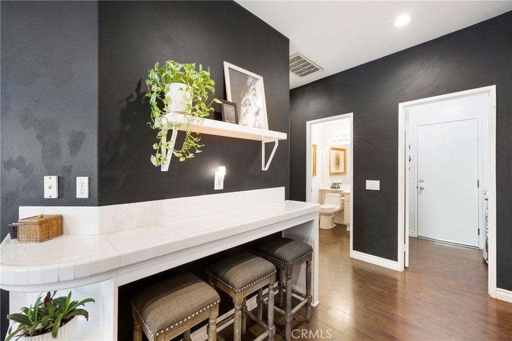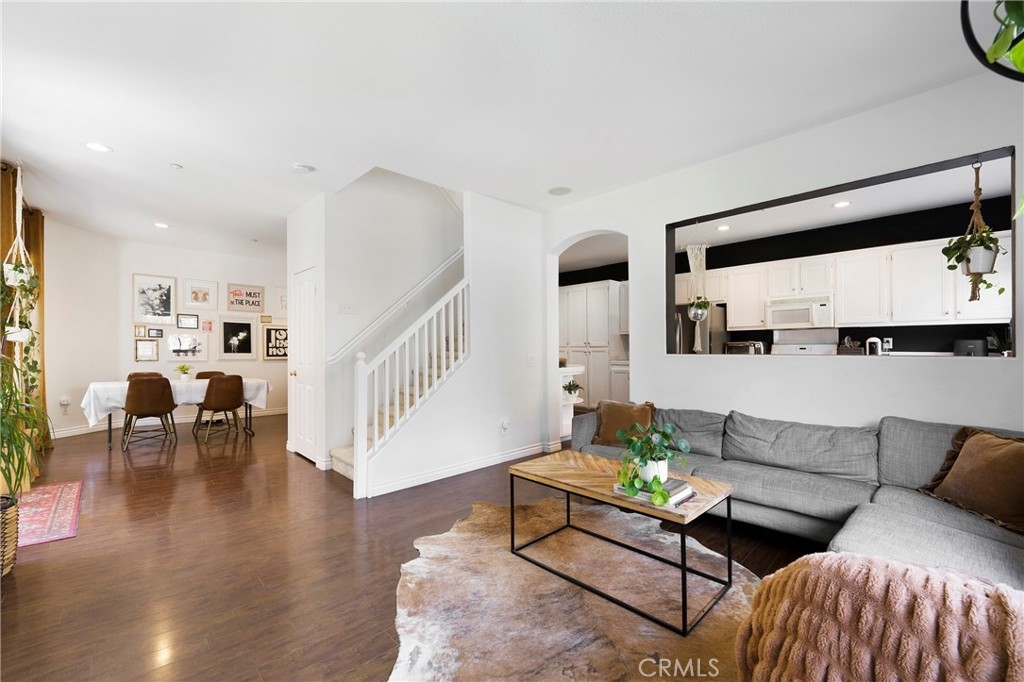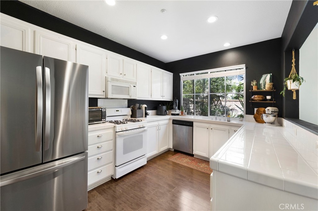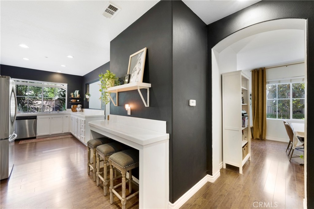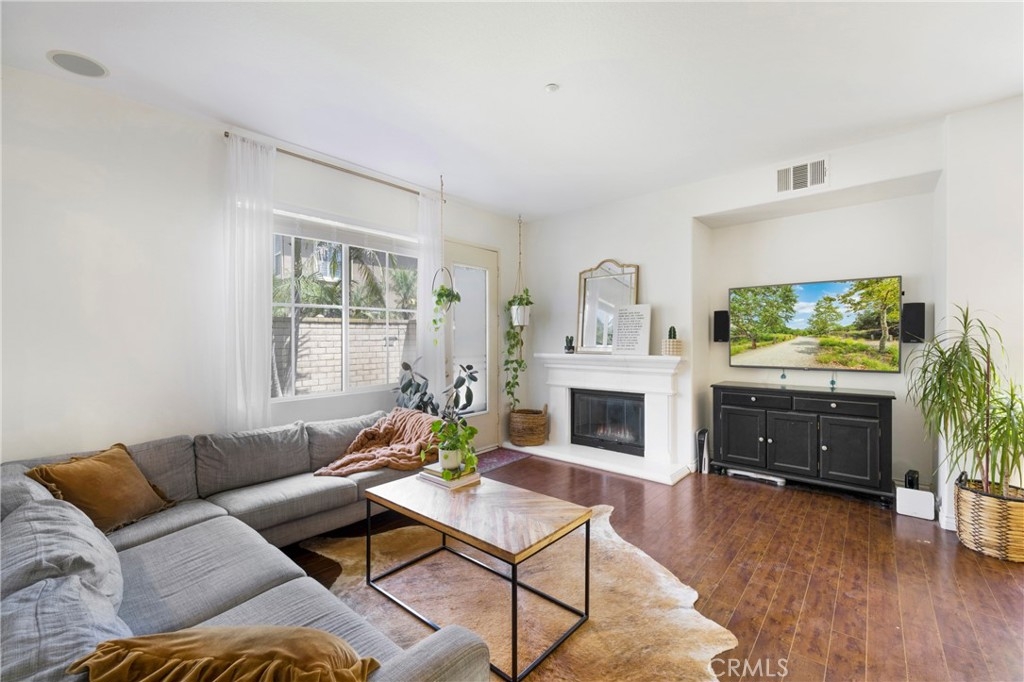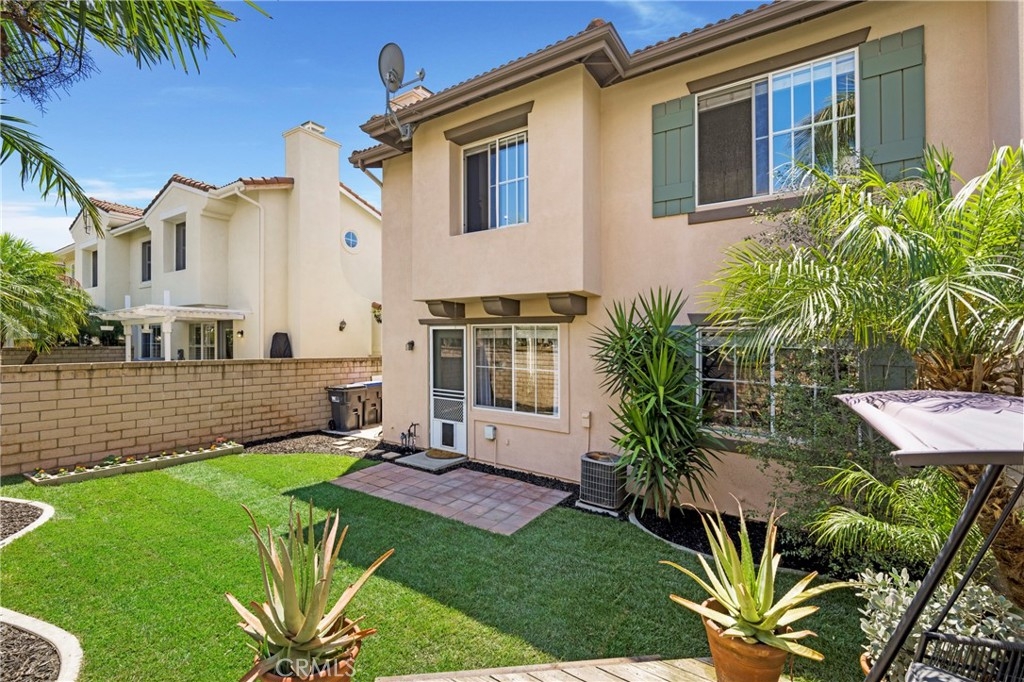 Fabulous Boho Chic townhome beckons to buyers who want a space to entertain in, cook in, or just play in, and appreciate the lush and spacious backyard with fresh sod! Spend your Summer at the lake, located just a couple miles away offering swimming, boating, paddle boarding, fishing, concerts and movies under the moonlight! Just around the corner from one of the community pools, parks, sport courts, tot lot and wilderness trail entrances. Welcoming front porch leads you into the formal living and dining rooms. The living room boasts a gas fireplace filled with glass decor for a sparkling cool night by the fire! The formal dining room sits just outside of the kitchen and is complimented with plenty of sunshine streaming in. The gourmet kitchen runs the length of the downstairs with an abundance of storage and even includes the newer s.s. refrigerator!! Ample and continuous counter top space to prep, cook, serve and entertain! The kitchen opens to the dining and living areas offering a great flow for entertainment! Direct access two car garage, leads into the laundry room, where washer and dryer is included in this sale. Powder bath and large under stairs storage closet, complete the downstairs floor plan. A French door leads you out to the large backyard with fresh sod, a patio and garden to relax in or play with the kid or pups! Upstairs floor plan boasts an owner's suite with walk in closet, secondary closet, dual vanities, tub and shower. One of the secondary bedrooms has a window seat for a peaceful space to read and reflect. The third bedroom includes a large window and full size closet. Secondary bath with tub and shower as well as linen storage compliment the upstairs. This whole home has been repiped and the HOA recently painted the exterior of the building, adding security and value to this lovely home! Painted Trails community amenities are throughout with two pools, two parks, sport courts, wilderness trails, a fitness park, rose garden, tot lot and interactive space! Low taxes, no Mello roos, minutes from award winning schools, pickle ball courts and dog parks! Lake Mission Viejo is filled with activities for the Summer and is just a couple of miles away from the neighborhood! Don't miss this special opportunity! Just East of Saddleback church, just a few miles from the toll road entrance and many choices of dining, shopping and the sports park in Lake Forest!