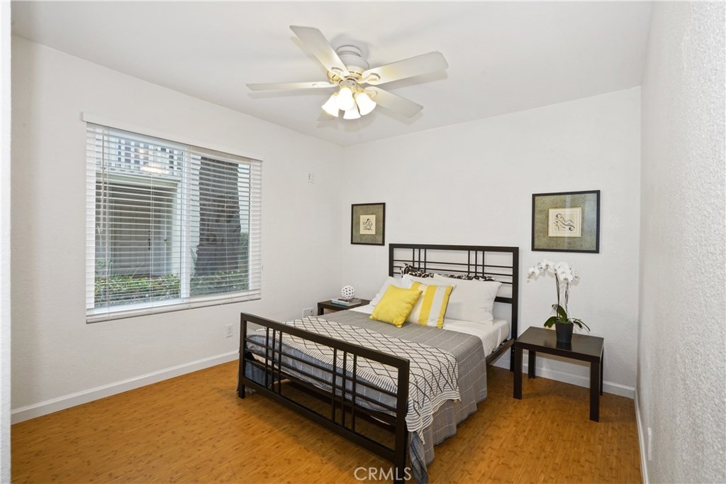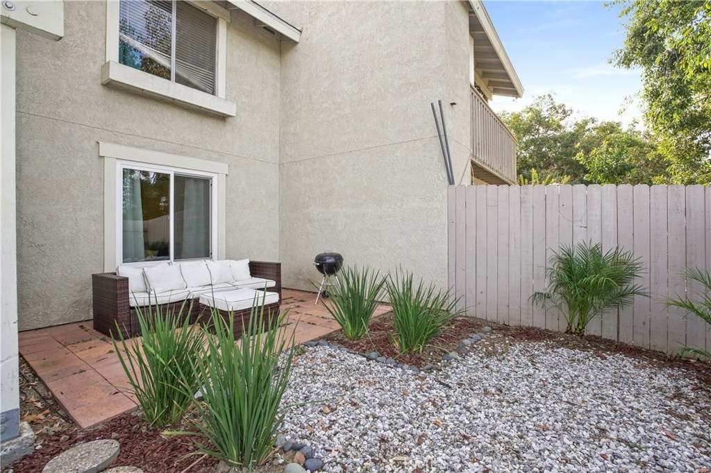 Adorable ground floor single level Condo in the great neighborhood of Valencia in Mission Viejo. Upon walking up to the front door you're welcomed by lush trees and manicured landscaping. Once opening the door you will notice the very clean upgraded modern style kitchen featuring laminate flooring throughout the property. The family room is an open space that is bright, cozy, and welcoming. The property features a large backyard and patio is beautifully manicured with a lot of space to relax and enjoy some privacy in the peace and quiet. The laundry area is located on the patio to the right. This home is beautiful and Commuter friendly. There is 2 very spacious bedrooms with excellent closet space. The bathroom is very exceptionally presented. There is one assigned parking spot that is just a few steps from the front door, and plenty of parking for guests as well as a car wash bay. Dont miss out on this turn key opportunity to have a place of your dreams.