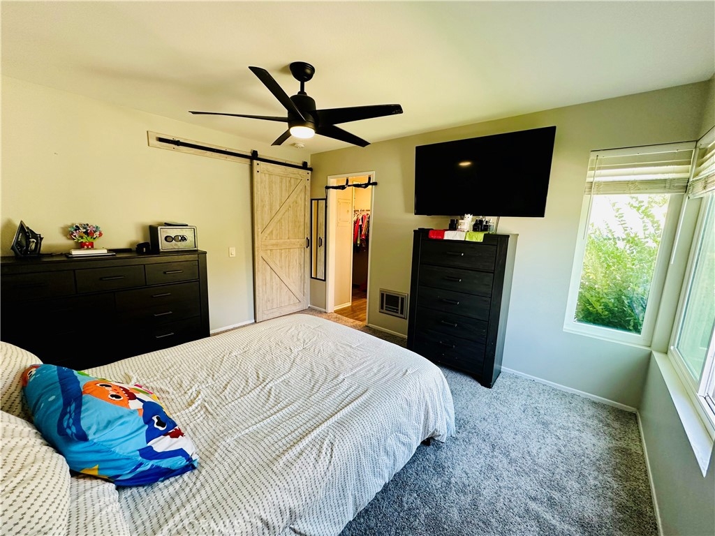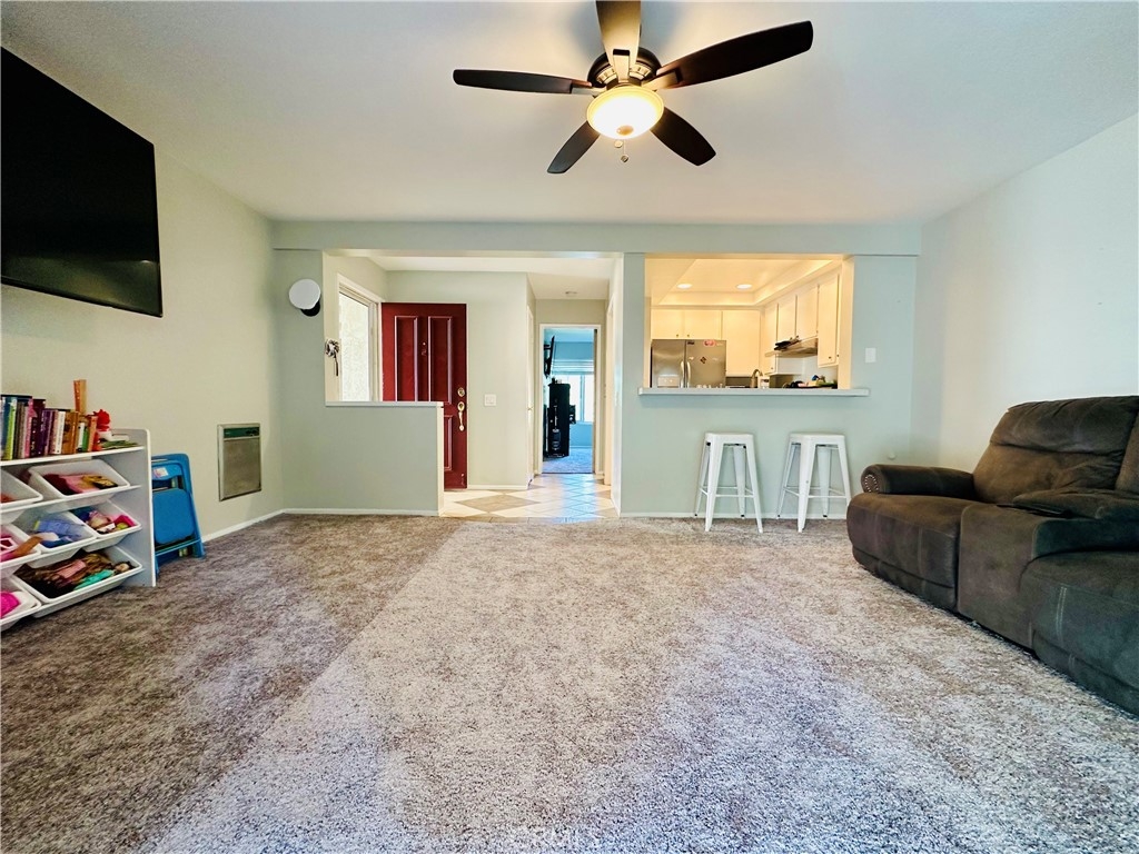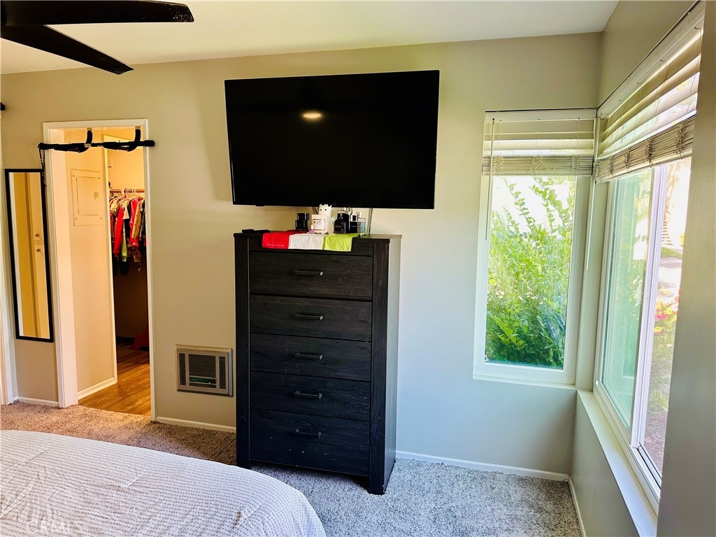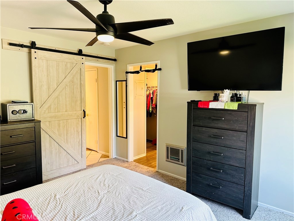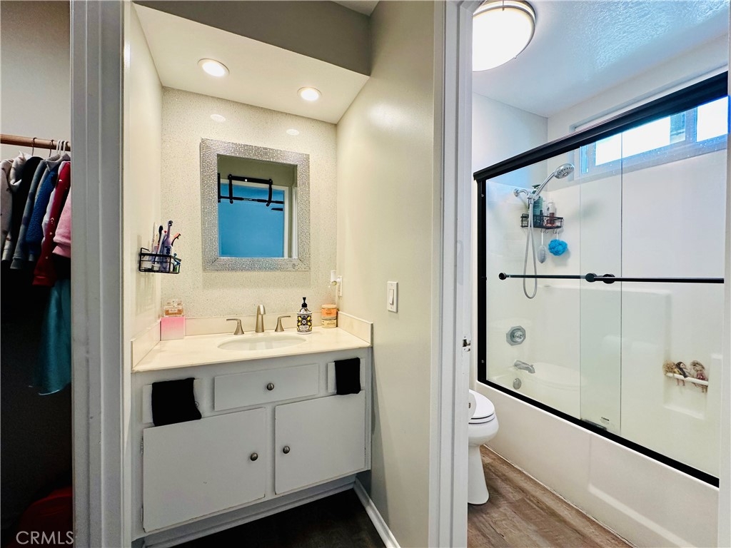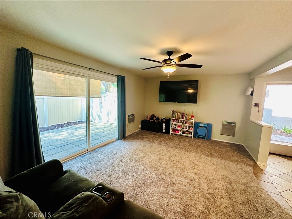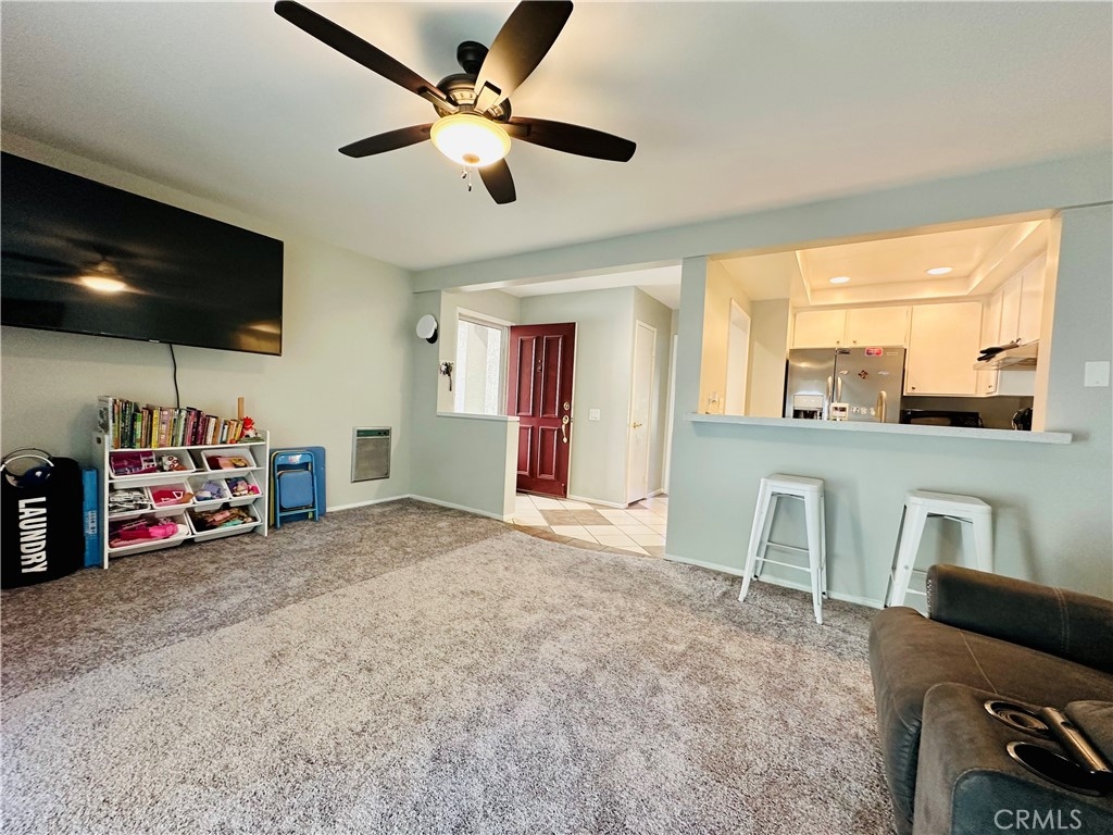 Beautiful Valencia Community condo for sale. Good size one bedroom one bathroom condominium. Ground floor, end unit with a spacious private patio area. No condominium behind the back patio, perfect for reunions with family and friends. Washer and dryer room is in the back patio. Open floor plan that makes the space look bright and cozy with the large sliding door that allows the light flow in nicely from the large patio. Carpet on Living room, ceiling fan. kitchen is open to then living room area, stainless steal appliances, quartz countertops, tile floor and recesses lights. Comfortable roomy bedroom with delightful barn door and ceiling fan. Large walk-in closet. The bathroom is beautiful with upgraded tub slider doors and vinyl floor. The vanity is framed with quartz backsplash and recessed lights. Double pane vinyl windows and sliding door. Location defines Valencia Condominiums. Close to 5 fwy, shopping centers, schools, and entertainment. William S Craycraft Park is walking distance from the condominium. Membership to The Mission Viejo Lake. Enjoy the lake, fishing, small boat/paddle boards rentals, sport courts and picnic areas.