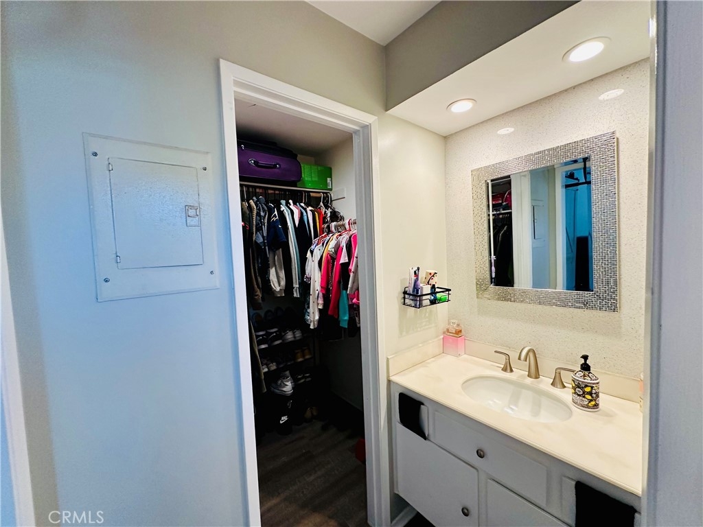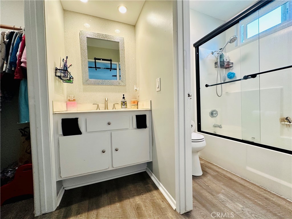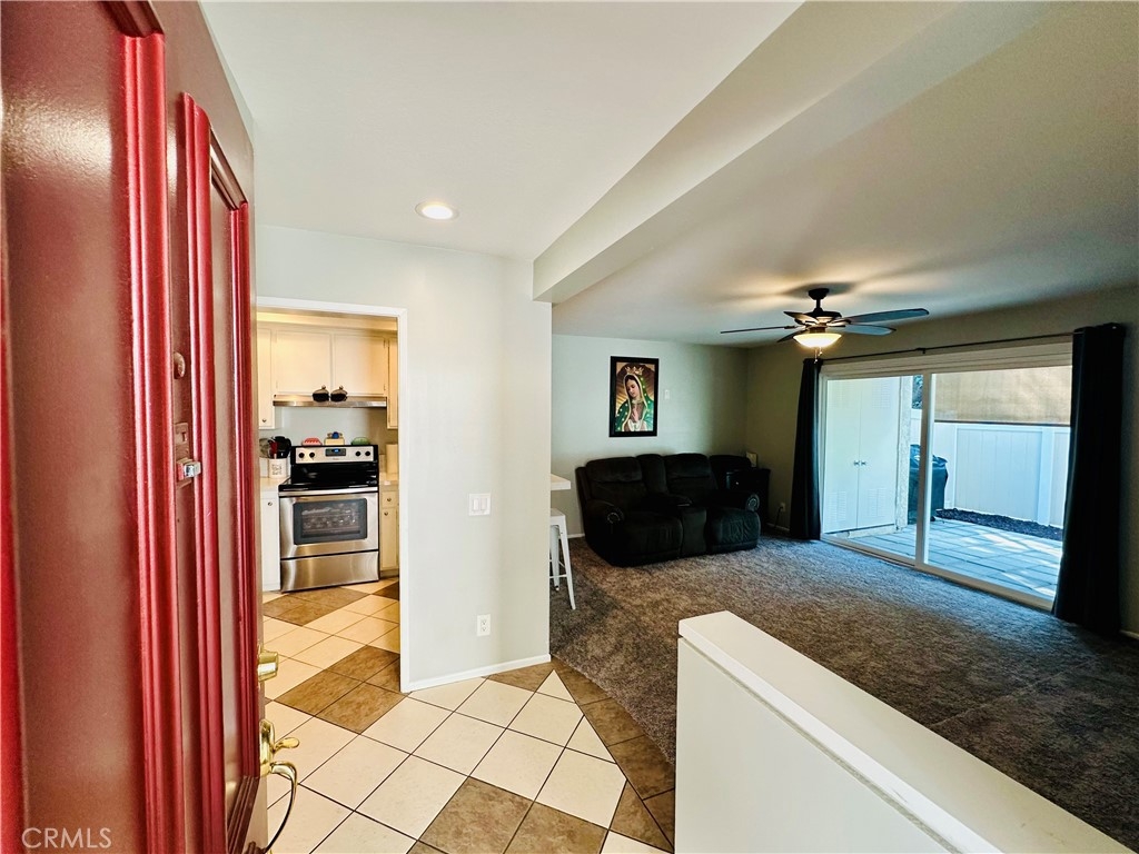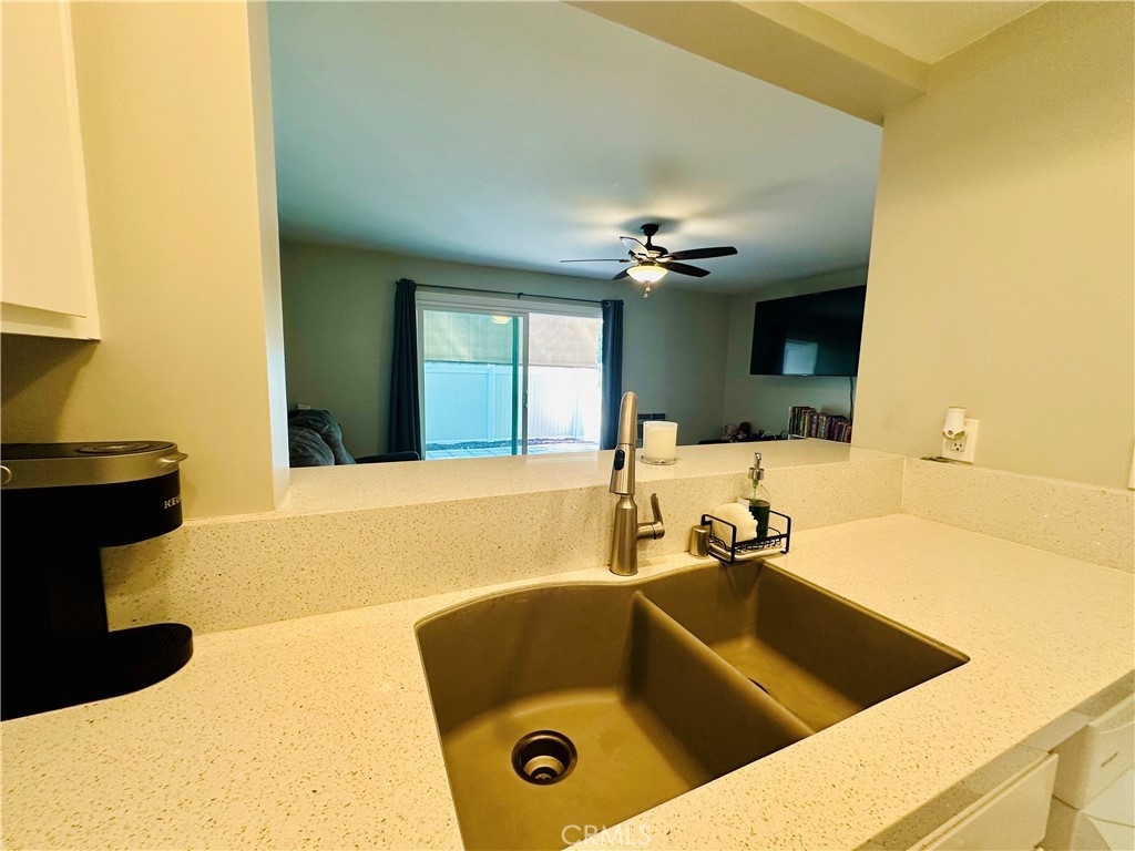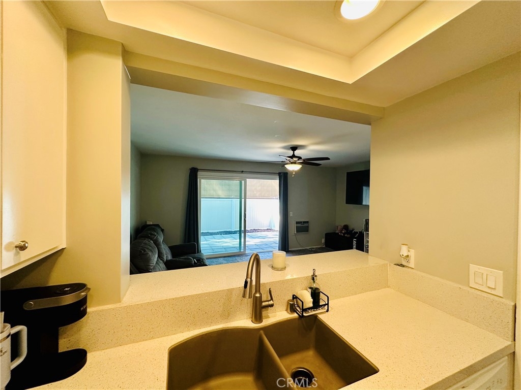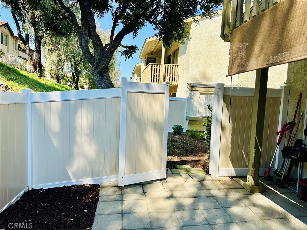 Beautiful Valencia Community condo for sale. Good size one bedroom one bathroom condominium. Ground floor, end unit with a spacious private patio area. No condominium behind the back patio, perfect for reunions with family and friends. Washer and dryer room is in the back patio. Open floor plan that makes the space look bright and cozy with the large sliding door that allows the light flow in nicely from the large patio. Carpet on Living room, ceiling fan. kitchen is open to then living room area, stainless steal appliances, quartz countertops, tile floor and recesses lights. Comfortable roomy bedroom with delightful barn door and ceiling fan. Large walk-in closet. The bathroom is beautiful with upgraded tub slider doors and vinyl floor. The vanity is framed with quartz backsplash and recessed lights. Double pane vinyl windows and sliding door. Location defines Valencia Condominiums. Close to 5 fwy, shopping centers, schools, and entertainment. William S Craycraft Park is walking distance from the condominium. Membership to The Mission Viejo Lake. Enjoy the lake, fishing, small boat/paddle boards rentals, sport courts and picnic areas.