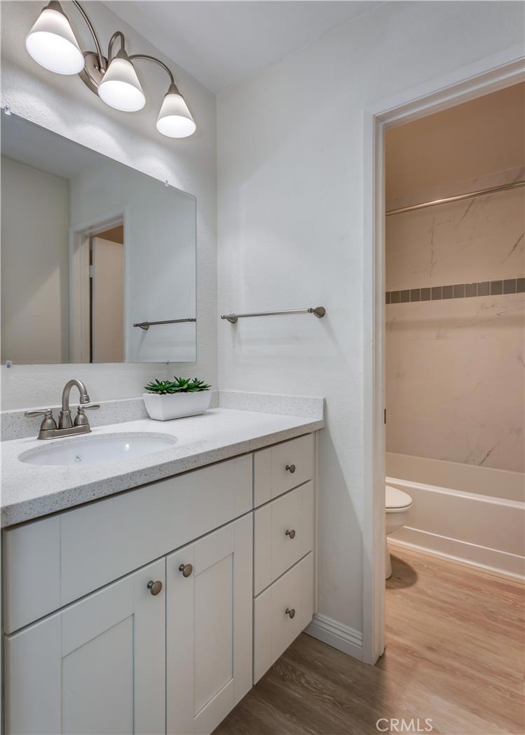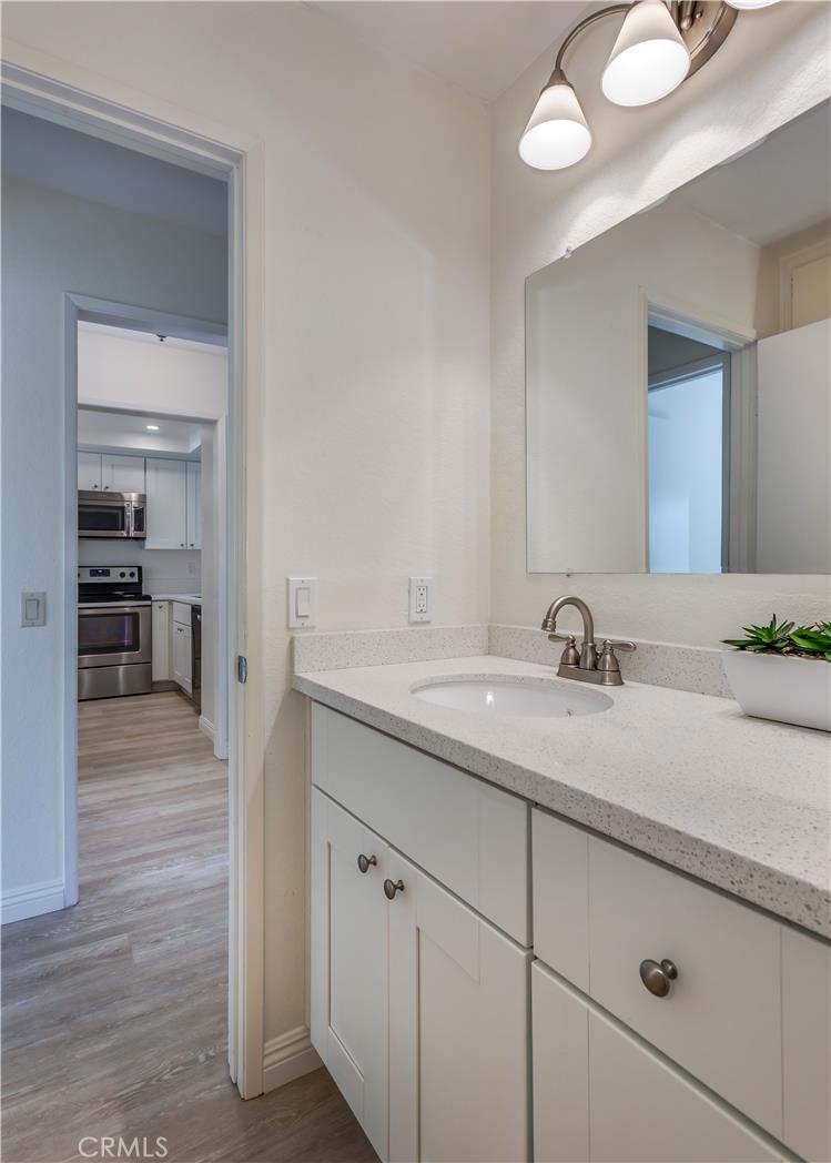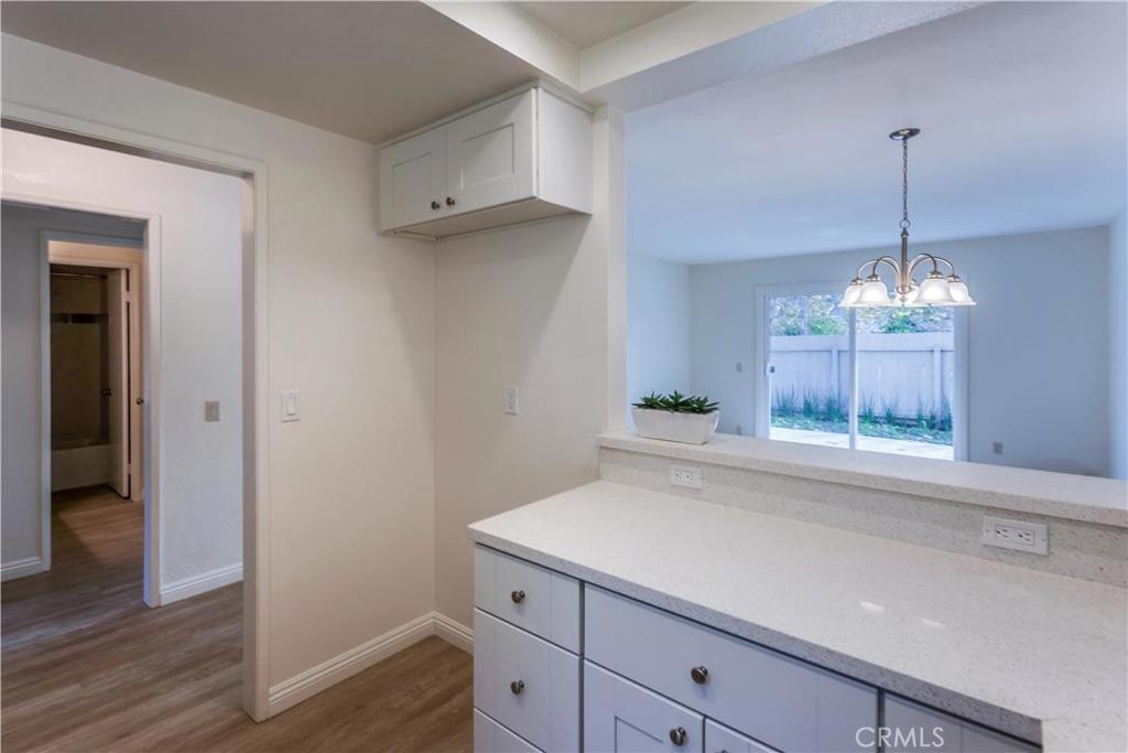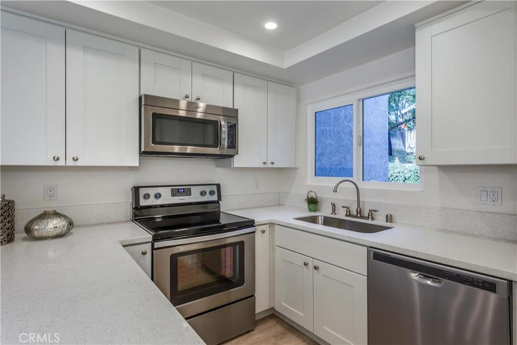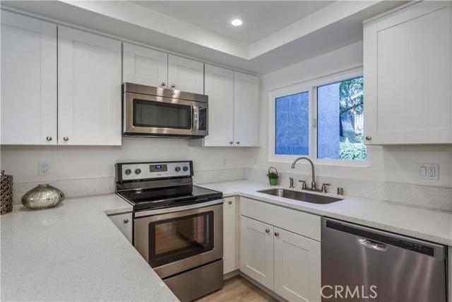 Enter an oasis of tranquility when you walk through the front door of this stunning home. This single level condo with 2 large bedrooms has been remodeled to perfection. You’ll love preparing your delicious meals from this sun filled kitchen. The kitchen has been thoughtfully remodeled with white cabinets, quartz countertops, all new stainless steel appliances, large stainless steel sink, brushed nickel fixtures and recessed lightening. This home has dual pane windows throughout and incredible vinyl plank flooring, you won’t have to do a thing to this home before moving in! The remodeled bathroom has been stylishly designed with a beautiful new tub, stunning surrounding tile, and a custom white cabinet with quartz countertop. Two large bedrooms have large closets and brand new neutral carpet. Enjoy the open family room that looks out to the spacious and freshly landscaped backyard. This home boasts two storage closets on the exterior, one is large enough for side by side washer/dryer. On top of all these wonderful features, the whole entire unit has been recently re-piped by the HOA. With Lake Mission Viejo privileges, enjoy summer concerts, fishing, sailing, picnics and the spectacular beach this is a wonderful place to call home.