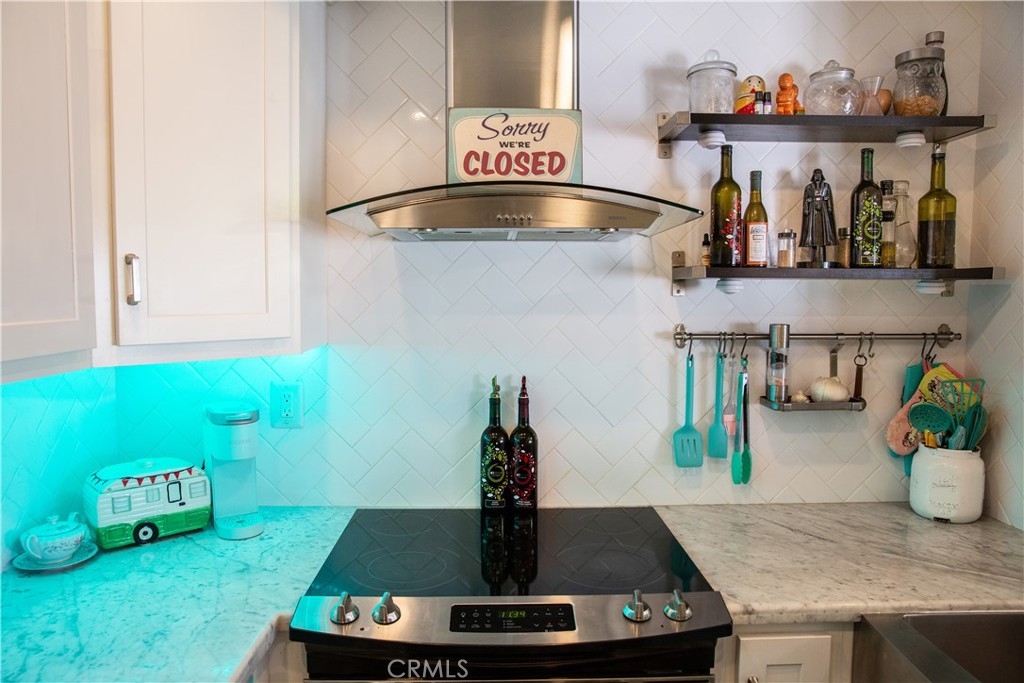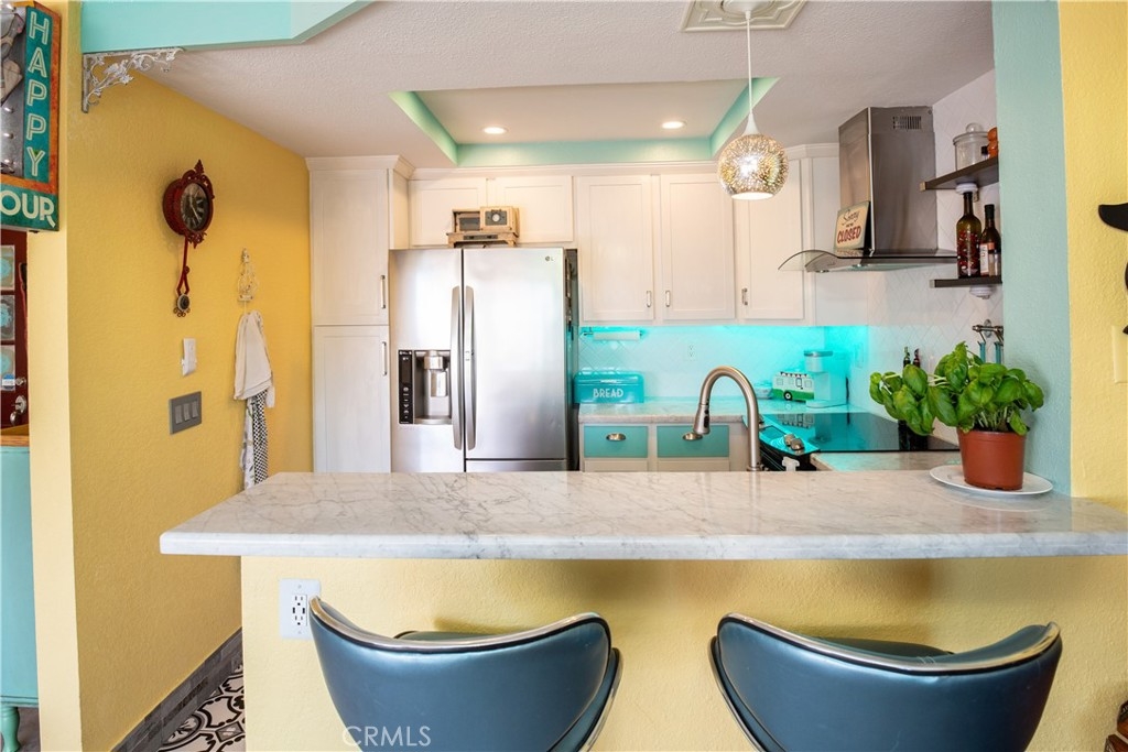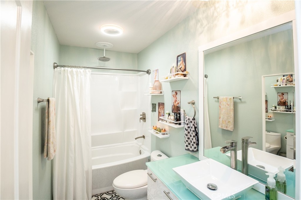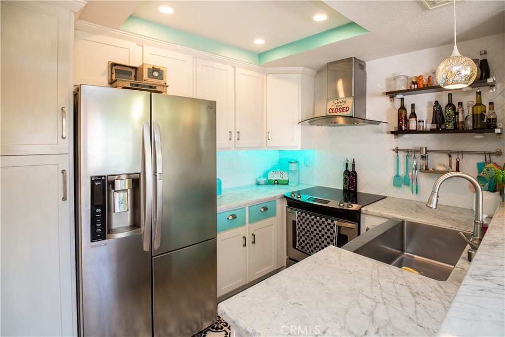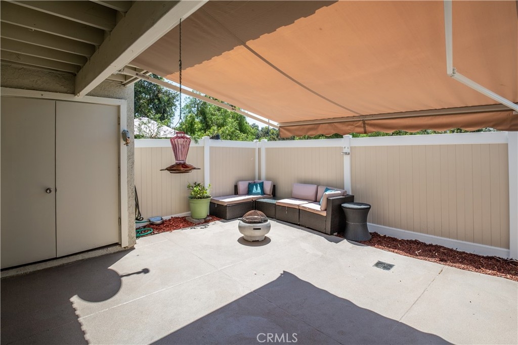 Welcome home! End downstairs unit backing to Craycraft park with large patio and new vinyl fence. Custom paint and tile throughout including stone baseboards. Kitchen boasts newer Carrera marble counter tops and a oversized stainless farmhouse sink with a motion detector faucet. Stainless steel appliances with the dishwasher being less than one year old. Custom color lighting in kitchen and recessed lighting is voice controlled. Kitchen flooring is newer porcelain tile. Eating area and both bedrooms have newer bladeless fans. Bathroom includes backpainted glass countertop with a custom sink. Tub or shower includes overhead rain faucet. All windows newer dual pane vinyl. Homeowners Association has recently replumed unit. Plenty of parking and lot has recently been repaved. Assigned parking space included. Lake Mission Viejo just minutes away includes swimming, boating, fishing, concert and more. Close to schools, shopping and the 5 freeway without the noise.