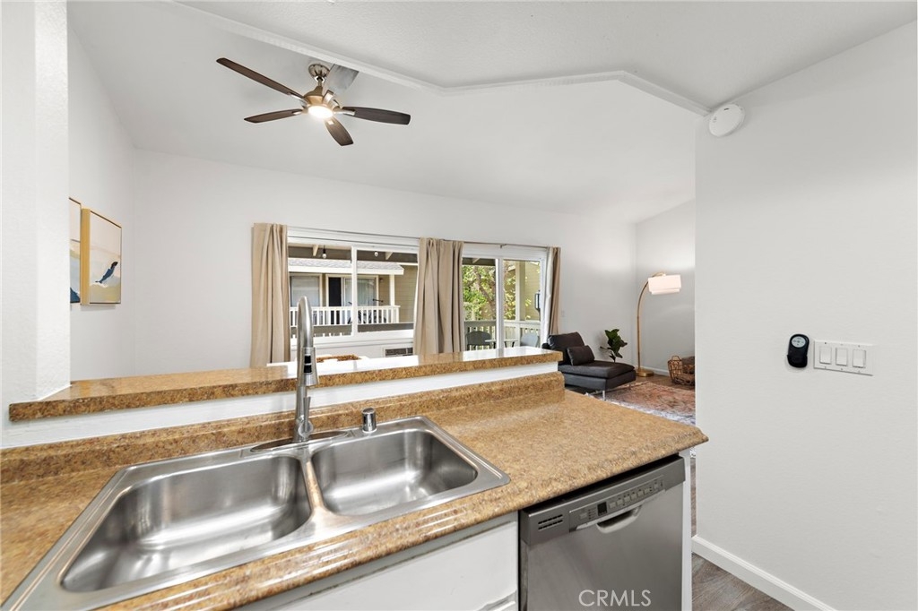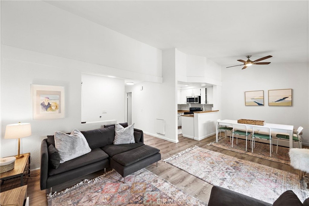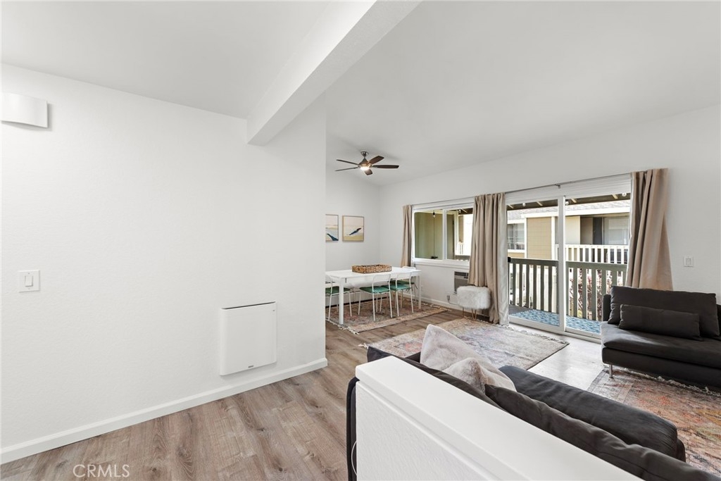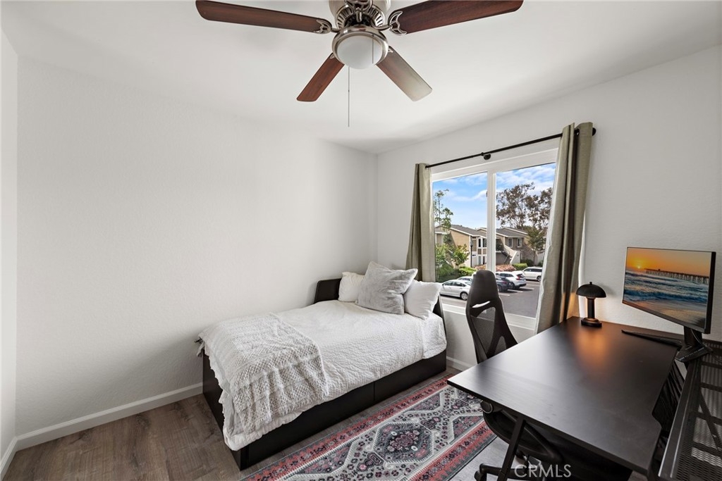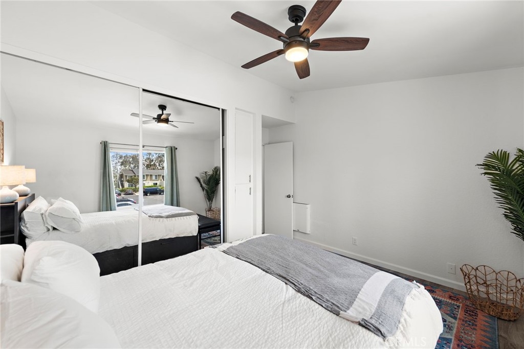 This charming upper end unit in the desirable city of Mission Viejo is a must-see! With 2 bedrooms and 1 bathroom, it features a private patio perfect for outdoor relaxation. The interior boasts an open floor plan filled with natural light, complemented by luxury vinyl flooring throughout. You'll appreciate the convenience of a laundry closet with storage and an updated floating bathroom vanity. The home has been freshly painted as of April 2025. Plus, residents enjoy access to Lake Mission Viejo, which offers swimmable beaches, boat rentals, a seasonal snack bar, concerts, and lovely park and picnic areas. Don't miss your chance to make this delightful home yours!