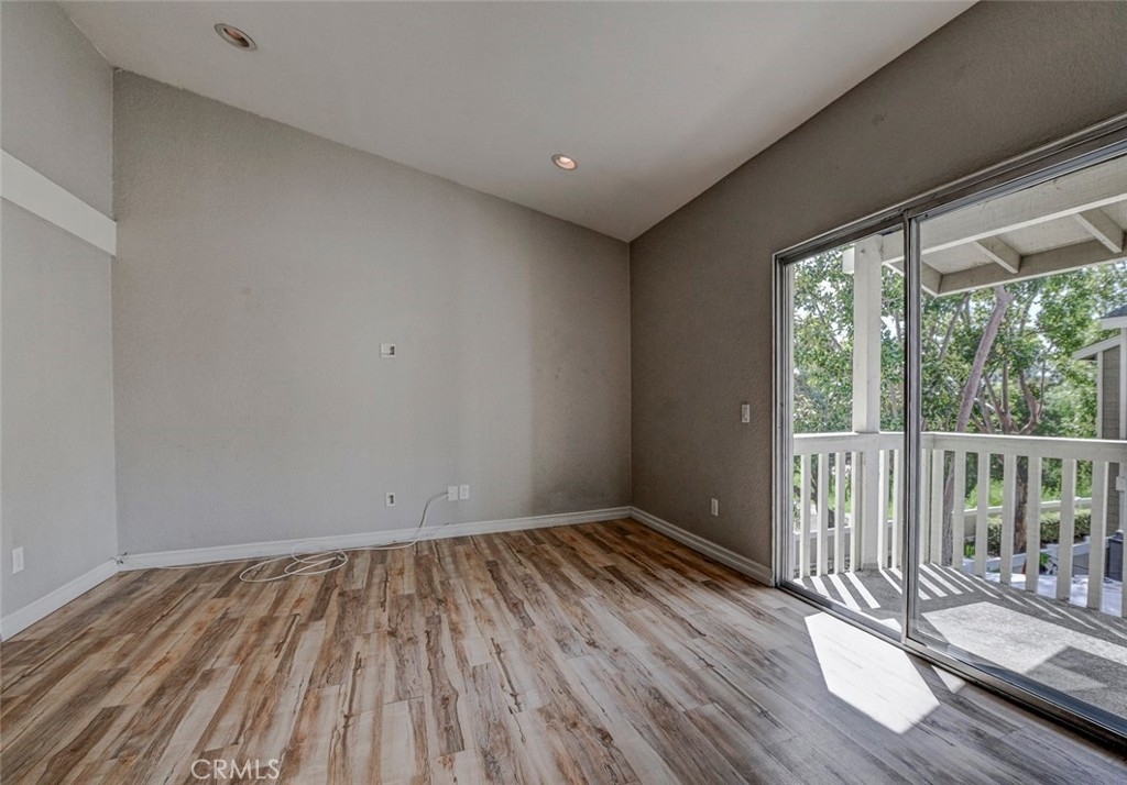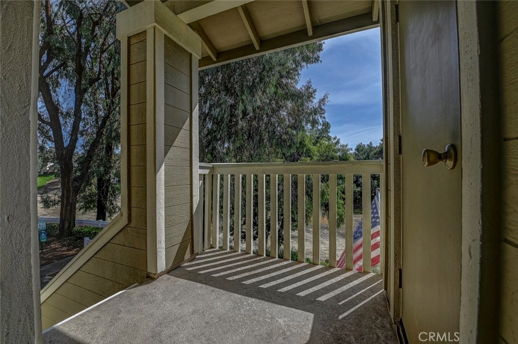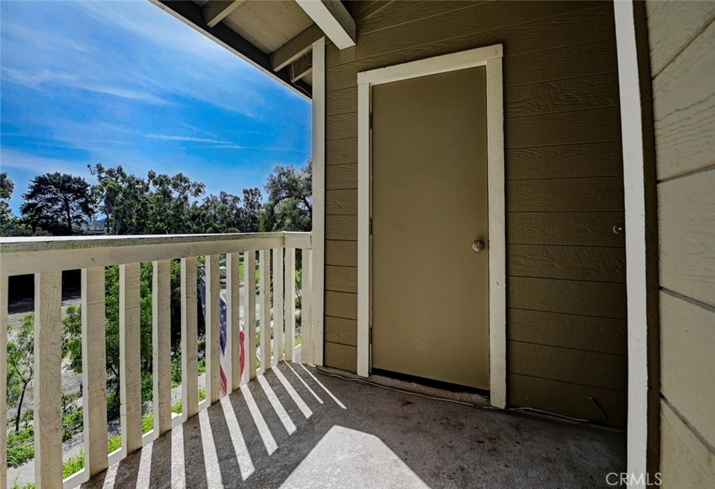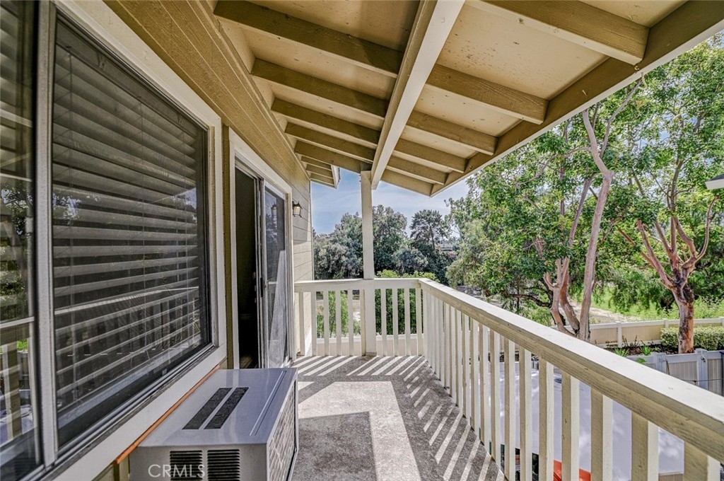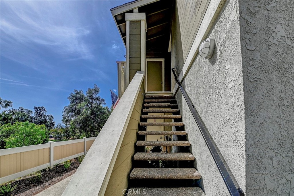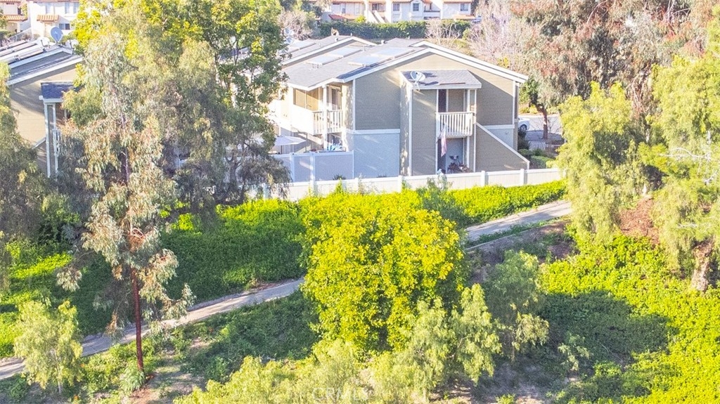 Excellent location in this highly desirable Mission Viejo neighborhood. This modern, upgraded 2+1 condo is ideally located at the upper rear corner and backs right up to the open wash area with a green belt view. Gorgeous mature trees provide a serene backdrop from your balcony. Easily walkable to local restaurants and to the nearby park. Homeownership here also gives you access to Lake Mission Viejo membership just up the road. With that you'll enjoy summer concerts, pontoon, paddle board and small boat rentals. Play at the sandy beach, swim, catch some fish or hang out in the community center. UPGRADES INCLUDE The kitchen has Quartz counter tops, newer microwave, all stainless appliances, upgraded cabinets, recessed lighting and the stainless steel refrigerator is included. The bathroom also has Quartz counter tops, double door for privacy, a tub and shower combo, recessed lights and an updated vanity. Both bedrooms have high ceilings with ceiling fans, new closet doors, upgraded heaters and luxury vinyl plank flooring. The open living space boasts vaulted ceilings, luxury vinyl floors recessed lighting, upgraded molding. The private balcony leads to your laundry area with a newer washer and dryer that are included and is enclosed with weather proof doors. On the front landing area you have a storage closet that also has an upgraded weather proof door and houses the almost new water heater. Additional features are upgraded paint and wood trim, Pex piping and an upgraded AC unit.