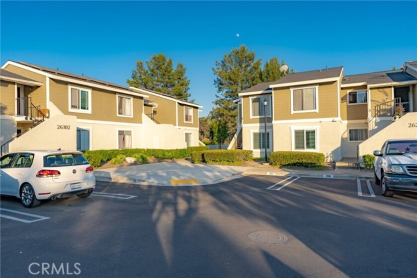 Fabulous charming condo in the Valencia community, less than 2 miles from Lake Mission Viejo! Desirable ground level, Two bedrooms, one bath (recently remodeled with marble shower), end unit, open kitchen to the dining area and a large patio that backs to a quiet greenbelt. 1 Assigned parking space #158 is included. Perfect starter home or investment. This home was just repainted, inside and out, along with new fencing in the backyard and the community was recently re-piped. HOA amenities offer access to beautiful Lake Mission Viejo, a Car Washing Station, trash services, and walking trails. Must see!