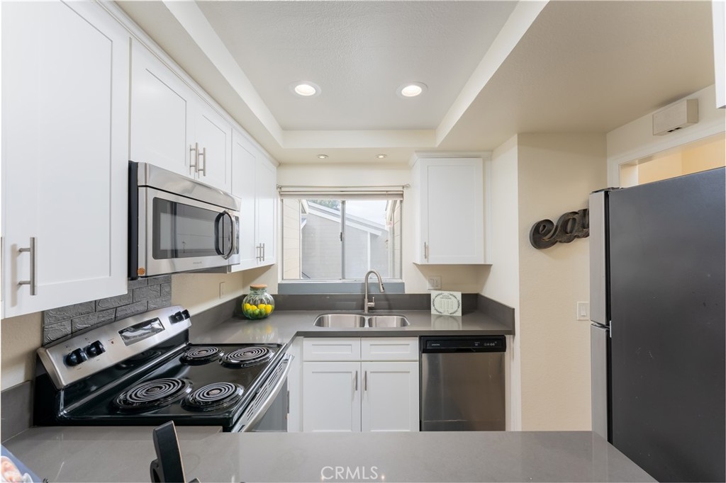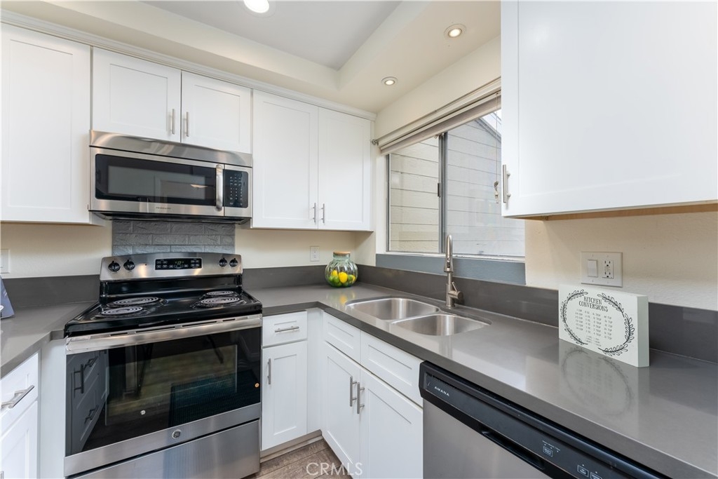 Welcome home to this gorgeous light and bright upper level condo nestled in the hidden gem of Valencia Community in Mission Viejo. As you walk in you will notice the soaring vaulted ceiling, abundance of natural light, and open floor plan perfect for entertaining. It’s featuring laminate wood flooring throughout, high ceiling in the living room and one of the bedrooms. Nice kitchen with new white cabinet, Quartz counter-tops, and Stainless Steel appliances. Upgraded powder room with quartz counter top, resurfaced bathtub, balcony off the living room with access to the laundry closet with brand new washer/dryer. Both bedrooms are spacious with tons of natural light. There is one assigned parking #153 close to the unit, plus ample parking spots on the site for your guests to enjoy and a car washing station close to the unit. This home comes with Mission Viejo Lake membership. The lake offers Summer Concerts, fireworks, boat rentals, ball courts, sandy beach, fishing all year around, a Food Shack with dining area, and many more! It’s located in an ideal location, close proximity to parks, shopping and restaurants and more! Easy access to major freeways! Great condo for first time home buyers or as an investment property! Highly rated Saddleback Valley School District. This home is a must see!