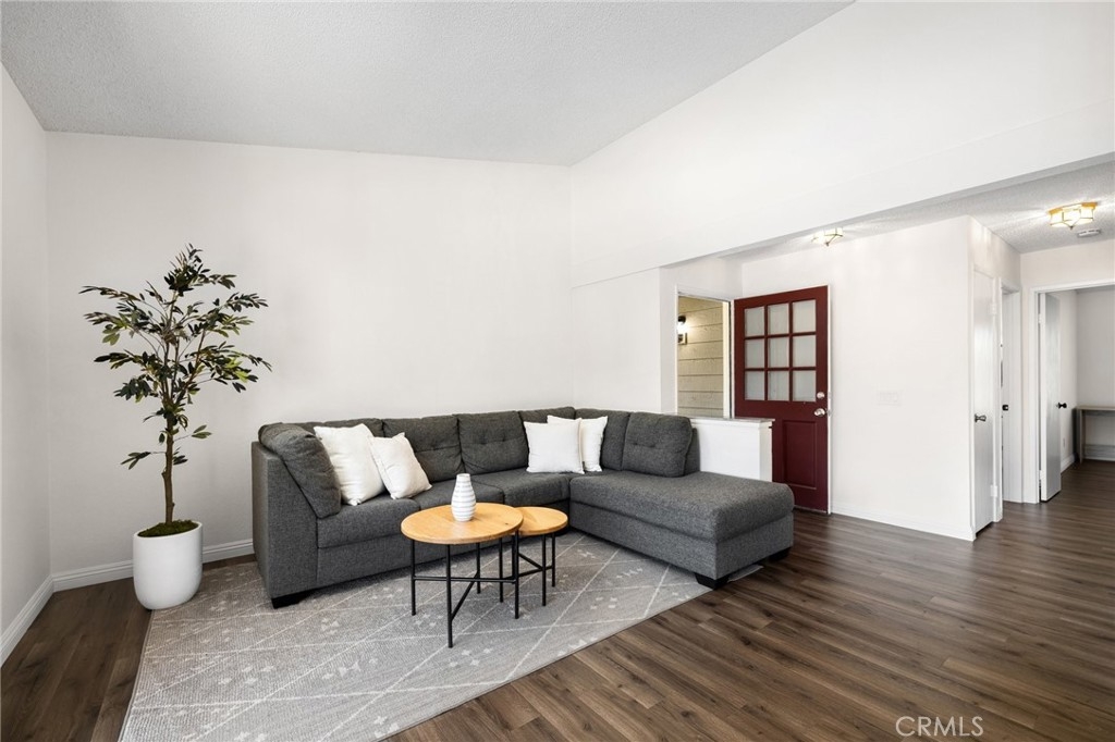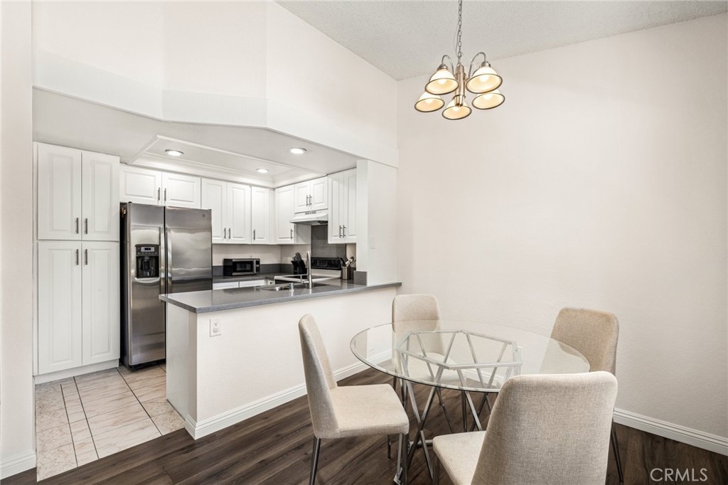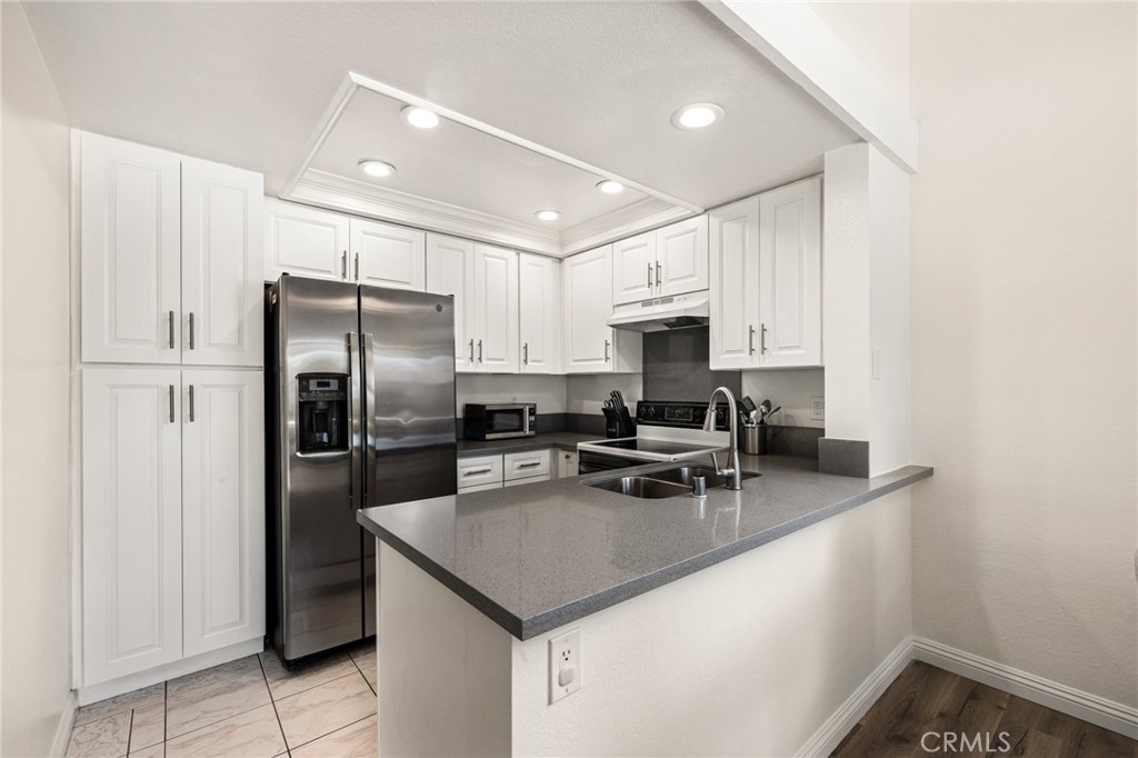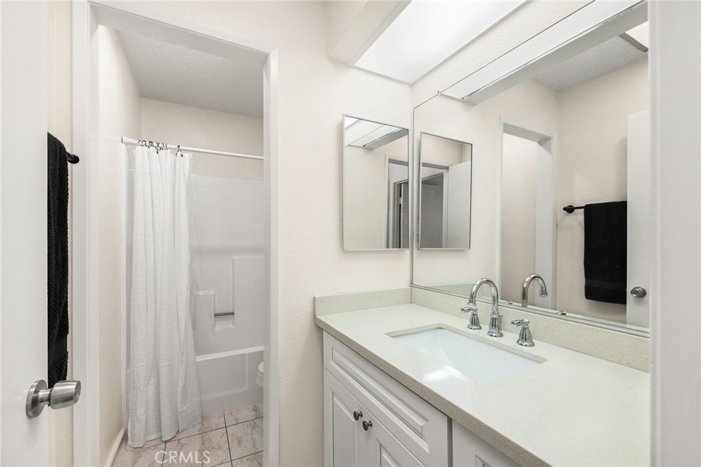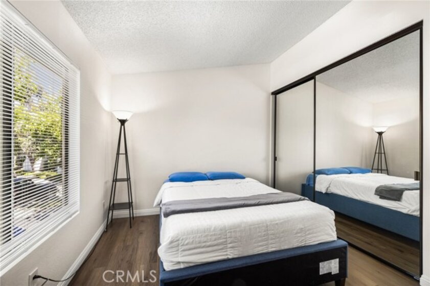 Welcome to your beautifully updated and freshly painted 2-bedroom, 1-bath condo located in the serene Valencia community of Mission Viejo! This upper-level, end-unit provides ultimate privacy and a peaceful retreat, with bright, open living spaces featuring vaulted ceilings and updated vinyl flooring. The modern kitchen, complete with quartz countertops, stainless steel refrigerator, and ample cabinet space, flows seamlessly into the living area, perfect for both relaxation and entertaining. Step out onto your private balcony, surrounded by mature trees, and enjoy the convenience of an enclosed laundry area with included washer and dryer. Both bedrooms offer high ceilings and mirrored closet doors, while the upgraded bathroom features a quartz vanity and re-glazed tub/shower combo. With one assigned parking spots and plenty of guest parking, convenience is key. As a resident, you'll enjoy exclusive access to Lake Mission Viejo, where you can soak up the sun on sandy beaches, go boating or paddleboarding, kayaking, and experience summer concerts and fireworks shows. Mission Viejo also offers a vibrant active lifestyle with nearby parks, hiking and biking trails, and top-tier recreational facilities like the Mission Viejo Sports Park, which features soccer fields, baseball diamonds, and a variety of organized sports leagues for all ages. Close to shopping, dining, and with easy access to everything Mission Viejo has to offer, this is the perfect place to enjoy an active, community-focused lifestyle. Don’t miss out on this incredible opportunity!