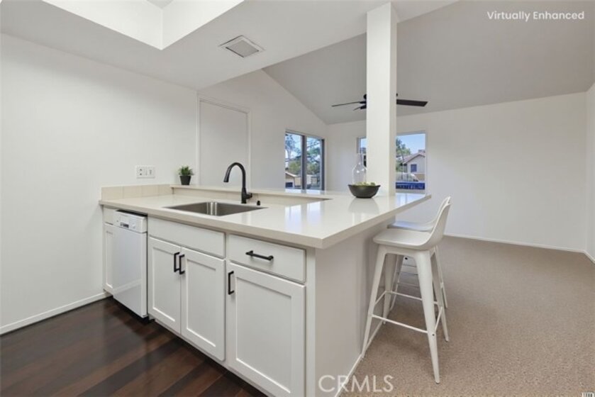 BACK ON THE MARKET BEAUTIFULLY REMODELED MISSION VIEJO CONDOMINIUM-2 Master Suites- 2nd Floor END-UNIT located at Las Palmas Community by Craycraft Park. Welcome to this charming, recently improved condominium located in the heart of Mission Viejo. This thoughtfully designed home features two spacious bedrooms, each with its own end-suite bathroom, creating the convenience of dual master suites- Perfect for privacy, guests, or shared living. One of the Suites offers a walk-in closet, adding exceptional storage and functionality. Livingroom has vaulted ceilings creating a spacious living area with a PANORAMIC VIEW OF SADDLEBACK MOUNTAINS. The home showcases fresh finishes, new closet shelves in master bedroom, new laminated wood floors in bathrooms, new stove and dishwasher, new carpet, contemporary fixtures, and an inviting open layout that maximizes space and natural light. Situated in a well maintained community with 24 hrs Security, close to shopping, dining, parks, and all of Lake Mission Viejo has to offer, including fishing, boating, kayaking, summer concerts, family picnics. This condo is the ideal blend of comfort, style and location. Association dues include Water and Trash, the only utility you pay is electricity. Dog park and park within walking distance, excellent school district, close to Saddleback College and a few minutes by car from Laguna beach, near the 5FWY. Don't miss this wonderful opportunity to own a turnkey home in one of Mission Viejo's desirable areas! ** All furniture is virtually staged**