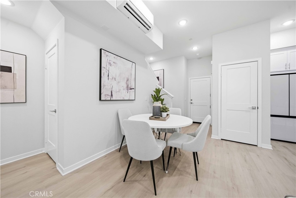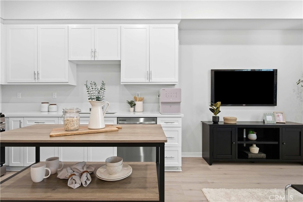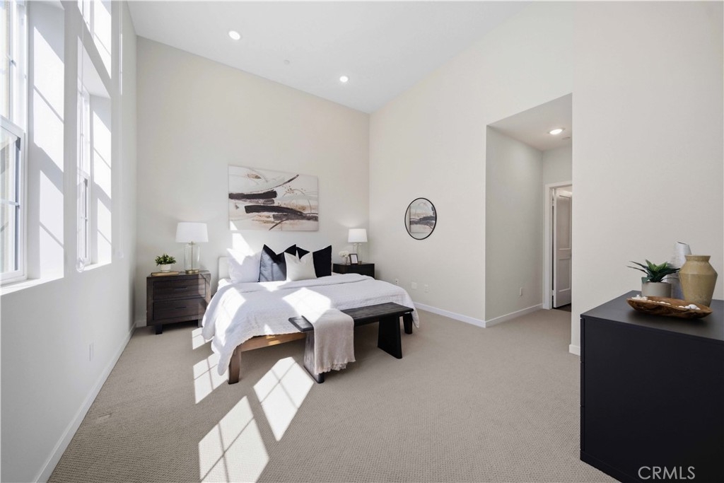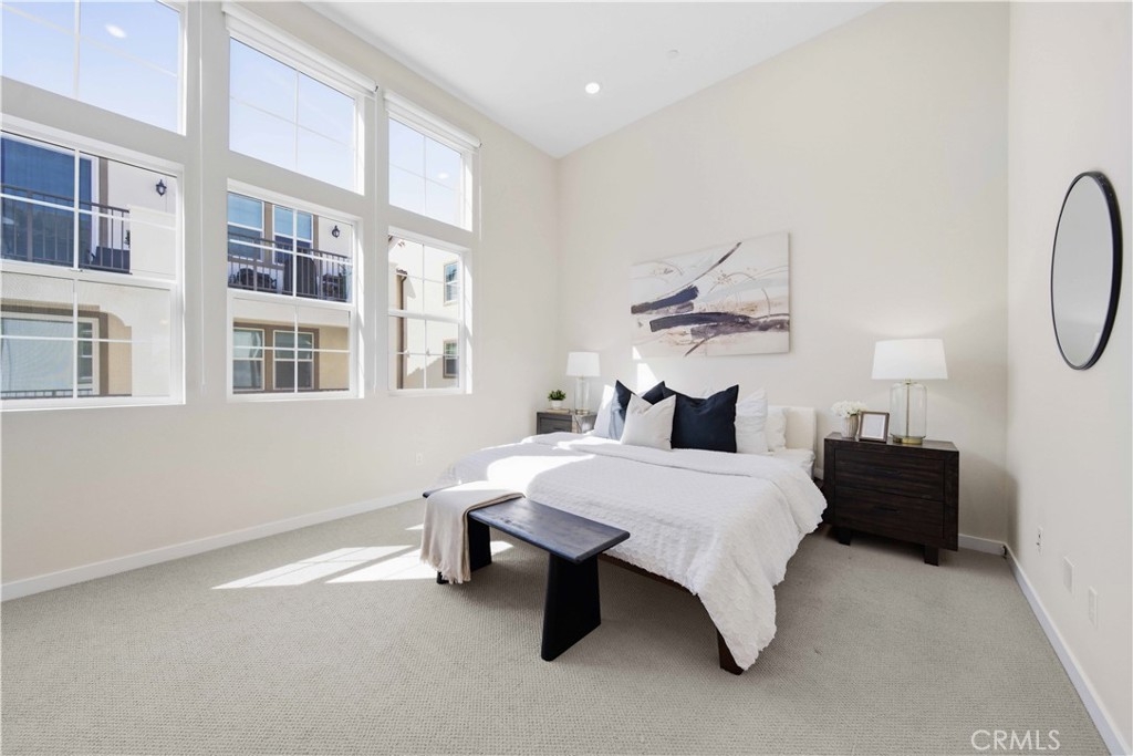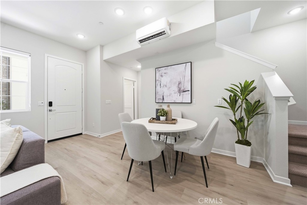 Welcome to 105 Lugo in Mission Viejo, a beautifully maintained, newer construction home built just about two years ago and proudly owned by its original owner. Located in the desirable Saddleback Place community by Trumark Homes, this modern residence offers the perfect blend of contemporary design, energy efficiency, and low-maintenance living. With approximately 887 square feet of thoughtfully designed space, the open-concept floor plan feels bright and spacious, enhanced by oversized dual-pane windows that fill the home with natural light. The main living area features wood-look luxury vinyl flooring, recessed lighting, and custom window treatments, creating a clean, sophisticated look. The kitchen is both stylish and functional, complete with stainless steel appliances, sleek countertops, white cabinetry, and seamless flow into the living and dining areas—ideal for everyday living and entertaining. Upstairs, plush upgraded Berber carpeting lines the staircase, hallway, and primary bedroom, adding warmth and comfort. The spacious primary suite is highlighted by dramatic 13-foot ceilings, creating an airy retreat with an open, light-filled ambiance. Built with today’s efficiency standards in mind, the home includes owned solar panels and a tankless water heater, offering long-term energy savings. An oversized one-car garage plus an additional dedicated parking space provide added convenience. Residents enjoy access to the community pool, spa, and BBQ area, perfect for relaxing or gathering with friends. Conveniently located near the 241 Toll Road, major freeways, shopping, and dining, this home delivers modern comfort in a highly desirable Mission Viejo location. 105 Lugo is a rare opportunity to own a nearly new, original-owner home that has been meticulously cared for from day one.
