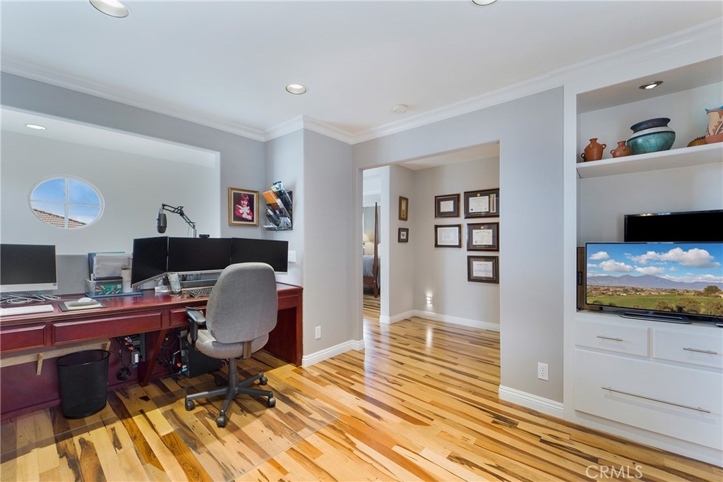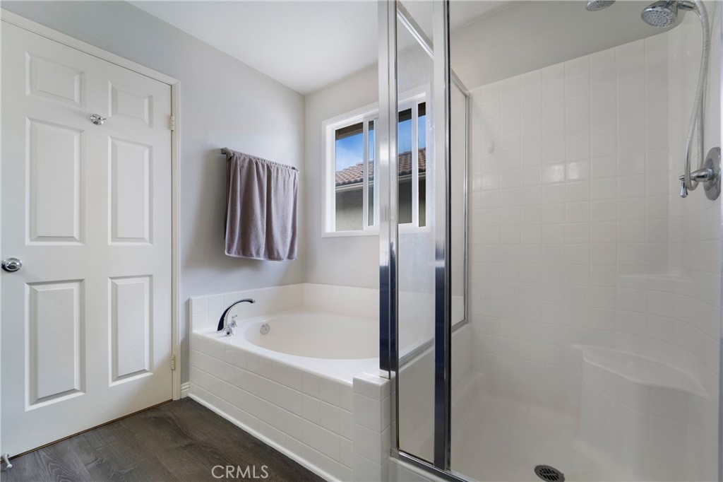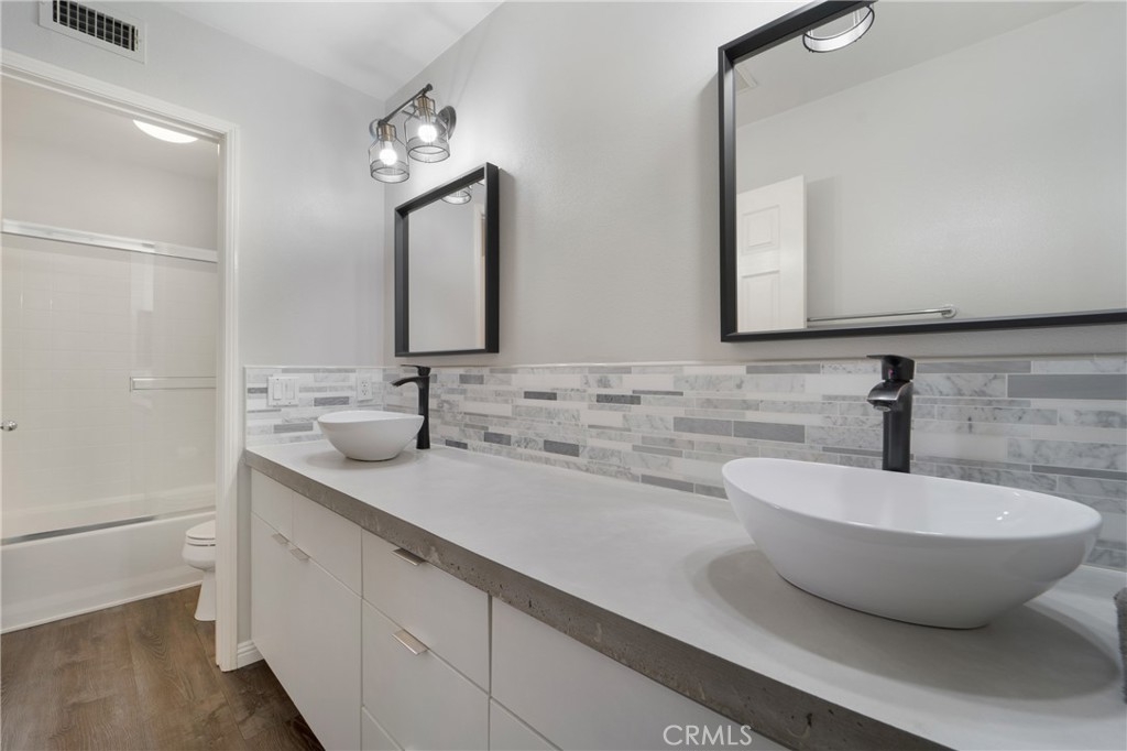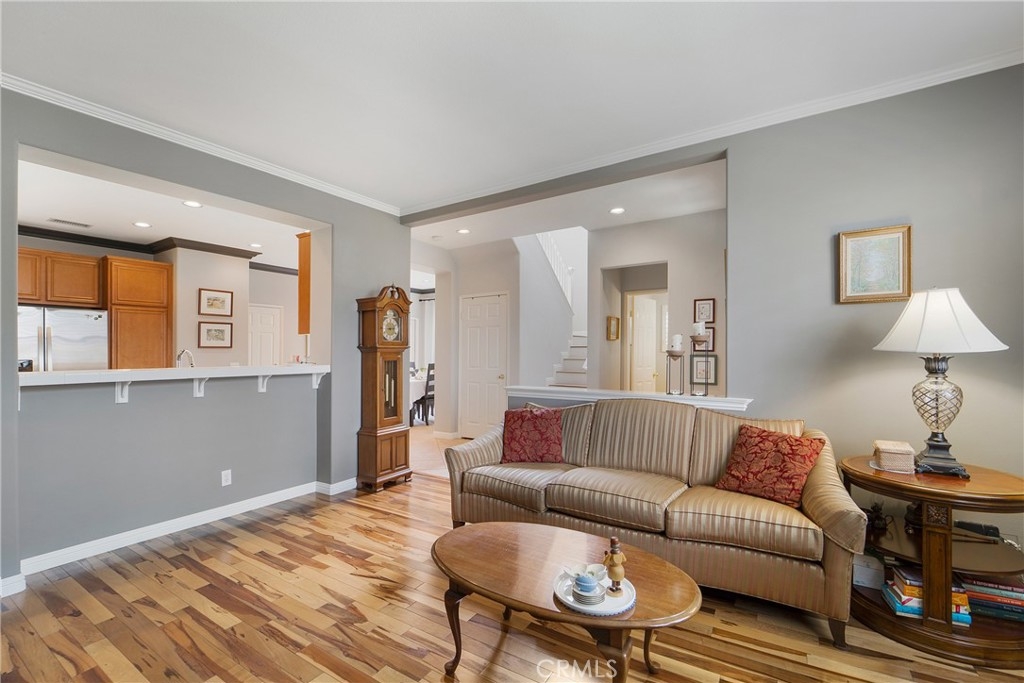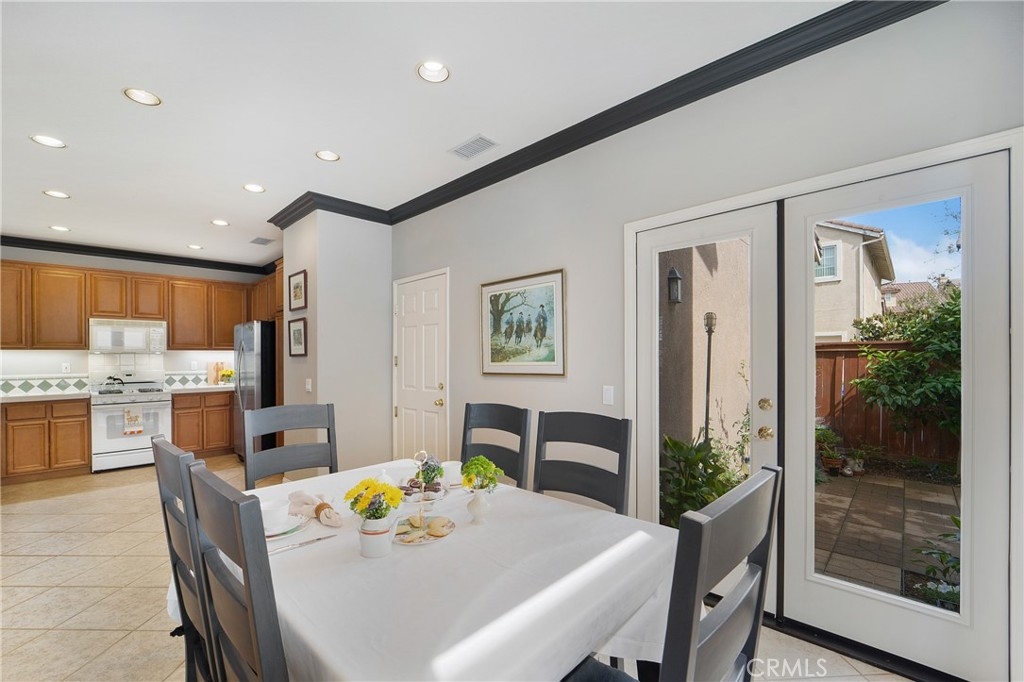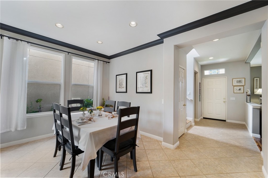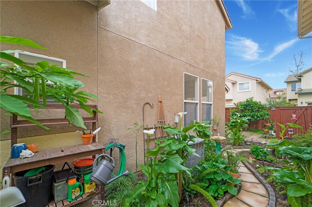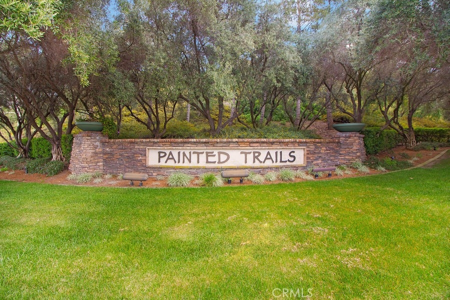 At the base of the Saddleback Mountains, in the coveted Painted Trails community, sits this fabulous home offering a covered front porch AND a lovely backyard with a lovely garden to brag about! This home is a zero lot line house, a detached condo reflecting front landscaping being cared for by the HOA and the streets being privately maintained. Plenty of space to relax on the covered front porch or play in the HOA maintained grassy area out front. As you enter, you notice that fresh, natural light floods this home and beautiful wood floors compliment the neutral decor! A formal living room offers views as well a warm, cozy fireplace. The counter opens from the living room to the kitchen for ease of entertaining and visiting. A formal dining room leads out to a charming and serene garden! This floor plan boasts a large, open kitchen with ample storage and plenty of space to prep, cook and entertain! Upstairs is complimented with a gorgeous owner's suite with walk in closet, soaking tub, walk in shower, and dual vanities as well as a private stool. The secondary bedroom boasts an en suite remodeled bath with beautiful modern finishes, dual vanities, tub and shower. The third bedroom is currently modeled as a view and light filled open office space, with built in dual desks and custom storage but can be simply converted to an enclosed room. An upstairs laundry room offers ease of use, situated in between all three bedrooms and includes the washer and dryer set. The backyard is graced with a serene and special space, set up to enjoy outdoor dining, fruit for juicing, flower picking and soft lighting for night visits. The flowers are abundant and just beginning to bloom! The orange tree is abundant in bloom and a true treat to harvest! The hummingbirds are in harmony as they fly through this beautiful and welcoming space. The garage is filled with ample storage cabinets and above head storage for ease of organization! This lovely home offers a beautiful place to rest, play and entertain and is centrally located to so many amenities! Painted Trails offers pools, parks, sport courts, a rose garden, fitness park, wilderness trails and beautiful views! Award winning schools, hiking and biking trails, dog parks, pickle ball courts, shopping and dining are just around the corner. Lake Mission Viejo membership conveys and boasts swimming, fishing, boating, concerts and many event opportunities! This is an opportunity to own a delightful home, in a fantastic location!