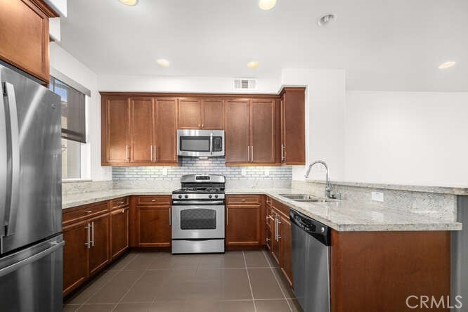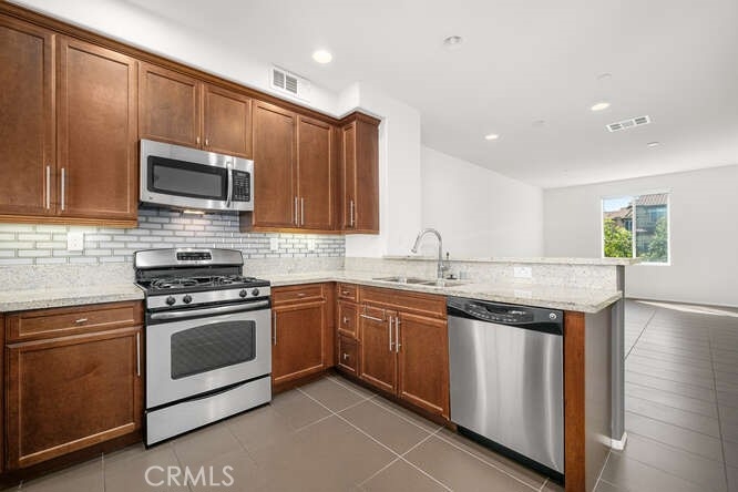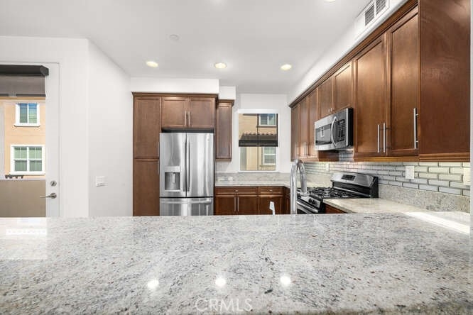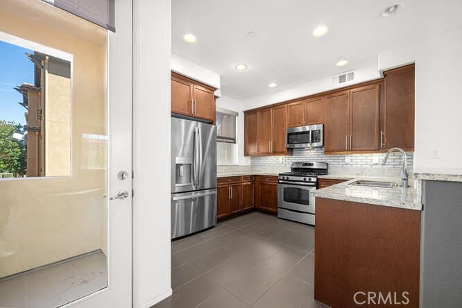 WELCOME HOME TO THIS BEAUTIFUL UPGRADED 2 BEDROOM PLUS DEN HOME! This is Urban style living at its best. Excellent location pool view unit. This beautifully upgraded home features 2 bedrooms, large den and 2.5 bathrooms, with elegant tile flooring throughout. The main entrance with front patio opens up to the 1st floor extra large den perfect to be used as an office, game room or additional bedroom. Direct access to a two car garage. The main floor open-concept design shines with a stunning kitchen that boasts granite countertops, an abundance of cabinets, and stainless steel appliances. The kitchen flows seamlessly into the great room, which includes a dining area and cozy living room with a private balcony off the kitchen. On the top floor, you'll find a convenient laundry closet and two spacious bedrooms, each with its own ensuite bathroom. The primary bedroom with an ensuite bathroom has dual sinks, a separate tub and shower, and a large walk-in closet. The secondary bedroom also provides privacy and comfort with its own bathroom featuring a vanity and a shower/tub combo.This home is complete with a two-car direct access garage, providing ample storage and convenience. The Ridge community offers fantastic amenities, including a private pool, spa, and playground. You'll also love the close proximity to shopping, dining and walking trails.