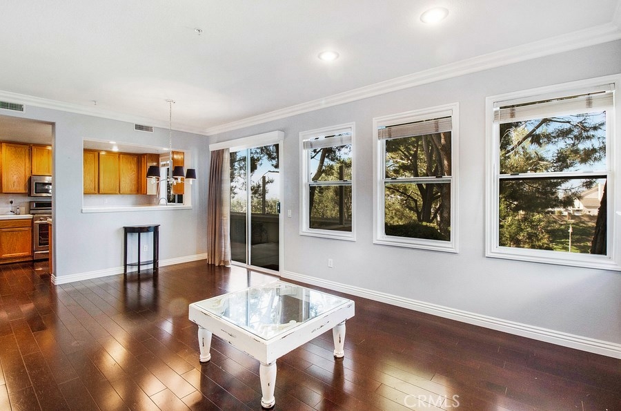 This Pristine 2 Bedroom, 2 1/2 Bathroom with Attached 2-Car Garage Home Sits Among the Stunning Trees and Gardens. Beautifully Upgraded With Wood Flooring, Newer Carpet, Crown Molding, Updated Baseboards, Door and Window Casing, New Bathroom Vanities, Sinks and Faucets and Wood Blinds Throughout. Stainless Steel KitchenAid Appliances Including a Stainless Samsung Refrigerator. A Stunning Marble Fireplace and Custom Built-in Components Cabinet Complete the Family Room. The Lower Level has Easy Access to the Powder Bathroom and Full-Size Interior Laundry with Built-in Storage. Both Bedrooms Upstairs Have Attached Updated Bathrooms for Privacy and Views from Every Window. A Private Patio with Glass Walls Looking Out onto the Trees Creates an Open Feel Perfect for Entertaining Family and Friends. The 2-Car Attached Garage is Oversized for Plenty of Storage and One of Only 10 2-Car Garages in this Development. Truly Private End Unit. California Court Has a Pool, Jacuzzi, Playground and Plenty of Guest Parking. There is NO Mello Roos and HOA Dues Include Lake Mission Viejo Membership. Close to Restaurants, Shopping, Toll-Road and Much More. Original Owner, Never Leased and Very Well Maintained. A Must See.