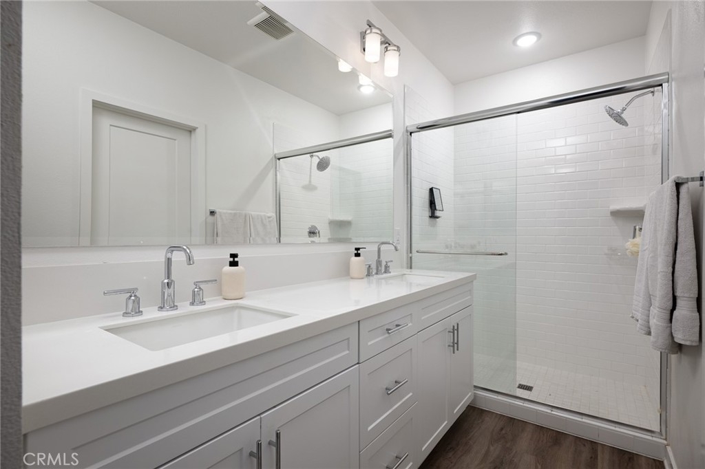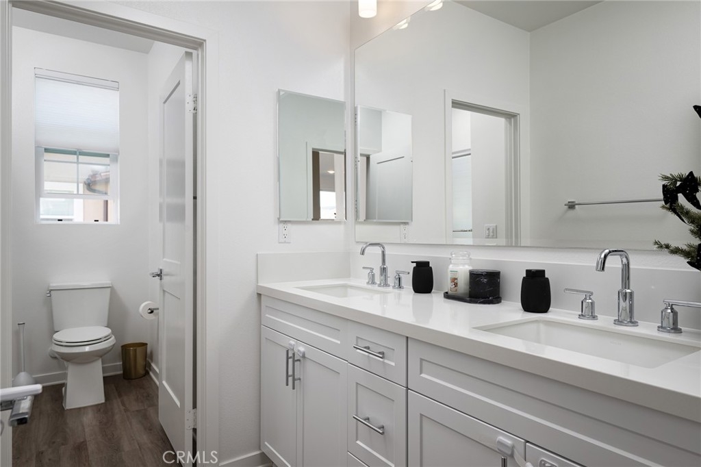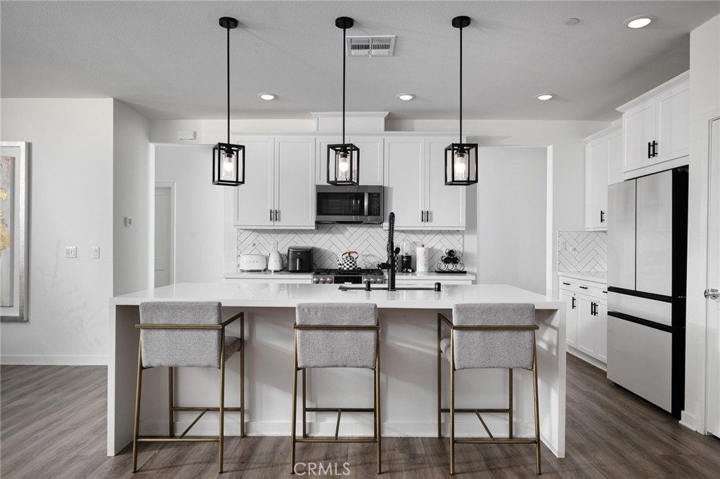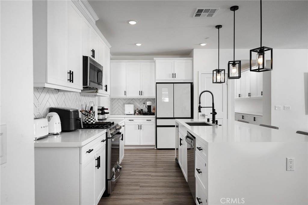 Welcome to your dream home in the highly sought-after Saddleback Place — with NO MELLO ROOS and PAID SOLAR! Built in 2023, this turnkey condo offers 3 bedrooms/2 bathrooms, 1,952 sq ft of upgraded living space, and a 2-car tandem garage — combining modern luxury with energy efficiency. From the moment you enter through the keyless entry, you’ll notice the thoughtful upgrades and designer finishes throughout this single story home located on the third level, with extra cabinetry in the entry walkway provides both style and functionality. The bright, open-concept great room is ideal for entertaining and everyday living. Built-in speakers with receiver and subwoofer create an immersive sound experience, while recessed lighting over the oversized island enhances the home’s warm, inviting ambiance. The chef’s kitchen is truly a showstopper, featuring: Dual waterfall countertops with matching surfaces throughout, Elegant backsplash, Quartz countertops & Shaker cabinetry, Upgraded oven/stove and microwave, Upgraded hardware and faucet, and spacious pantry. The living and dining areas open to a sunny private balcony — perfect for BBQs and relaxing evenings. Upstairs, all bedrooms are filled with natural light and include upgraded lighting in bedrooms and closets. The primary suite offers an extra-large double-sink vanity and a generous walk-in closet. The guest bath features sleek glass shower doors. Additional premium touches include plantation shutters in the front and blackout shades in the bedrooms for added comfort and privacy. More highlights include: Paid solar system, Tankless water heater, and Extra cabinetry for added storage. Enjoy resort-style amenities including a pool, spa, tot playground, walking paths, and BBQ areas. Located close to top-rated schools, parks, restaurants, shopping, and the year-round events at Lake Mission Viejo. This is the turnkey, energy-efficient, upgraded home buyers are searching for — and it won’t last long. Make it yours today!
