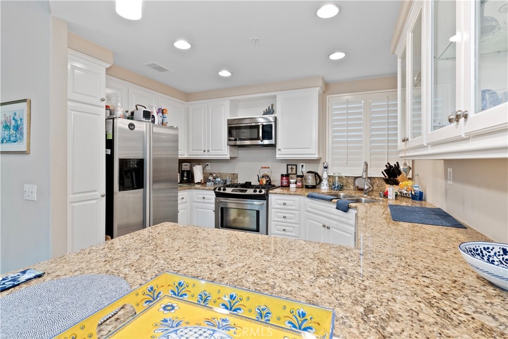 Welcome to 14 Le Mans, a stylish and comfortable home tucked inside the sought-after Mirasol community of Mission Viejo. This bright and open layout invites you to enjoy every corner of the space, whether you're hosting friends or settling in for a relaxing evening. At the heart of the home is a spacious family room that flows naturally into the kitchen and dining areas, creating a warm and connected feel. Natural light pours in through large windows, enhanced by upgraded wood blinds that bring both charm and privacy. Elegant shutters in key areas, including the master bedroom, were carefully chosen to elevate the look and feel. Thanks to its positioning, the home stays naturally cool, and air conditioning was rarely needed even during warmer months. Step outside to a peaceful patio perfect for morning coffee, quiet evenings, or outdoor dining. A two-car garage with direct access sits conveniently at the entry, making daily routines easy and secure. Living in Mirasol means more than just a home. You’ll enjoy access to a sparkling community pool, two relaxing spas, one located near the main pool and another right on Le Mans, along with beautifully maintained walking trails. You're also just minutes from Lake Mission Viejo, where summer concerts, boating, and stunning views create unforgettable moments. Top-rated schools like Bathgate Elementary and Newhart Middle are nearby, along with popular shopping and dining at The Shops at Mission Viejo and easy freeway access. This home is a perfect blend of comfort, location, and lifestyle. Come see what life in Mission Viejo is all about.