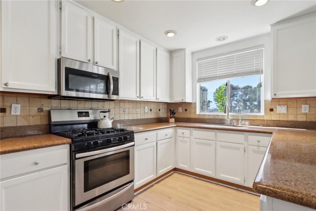 Step into this beautifully updated 2-bedroom, 2 and a half bathroom condo, where modern comfort meets everyday convenience. Located in the sought-after California Court community, this home features an inviting open-concept layout perfect for both relaxation and entertaining. The spacious living room offers a cozy fireplace, seamlessly flowing into the dining area and out to a private, fenced patio with peaceful open views. The kitchen is thoughtfully designed with stainless steel appliances, granite countertops and plentiful storage space. Both bedrooms are generously sized, with the their own en-suite bath with shower/tub combo and stylish finishes. The second bathroom mirrors the same modern design, providing both comfort and functionality. Additional highlights include an attached two-car garage, washer/dryer hookups, and ample storage space. Enjoy the perks of living in this vibrant community with easy access to shopping, dining, hiking trails, and exclusive Lake Mission Viejo membership privileges. Don’t miss the opportunity to make this stunning condo your new home—schedule a tour today!