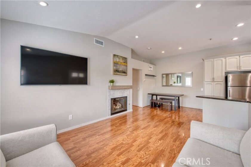 Welcome to this beautifully upgraded upper-level condominium offering 2 bedrooms, 2 bathrooms and a light filled open layout for modern living. With thoughtful improvements, this home blends comfort, style and functionality in every detail. The inviting living room features wood laminate flooring, recessed lighting and a stunning fireplace with a marble tile surround and wood mantle. A concealed TV outlet and mount create a clean streamlined look, while vinyl plantation shutters and Milgard double-pane windows enhance both energy, efficiency and timeless appeal. The kitchen offers granite countertops, stainless steel appliances and range hood, and newer dishwasher, stove, range, and refrigerator. Both bathrooms upgraded with remodeled showers and beautiful tile. Primary suite offers a perfect work-from-home space. Additional features include a single car garage with newer epoxy floors and a 14-50 NEMA outlet for EV charging, as well as washer and dryer hook ups. Residents of California Court enjoy an array of amenities including a community pool, spa, and BBQ area. Perfectly situated near shopping, dining and major freeways, this turnkey home offers low maintenance living with high impact upgrades-an ideal opportunity for buyers seeking style, convenience and modern amenities in a desirable upper unit setting!
