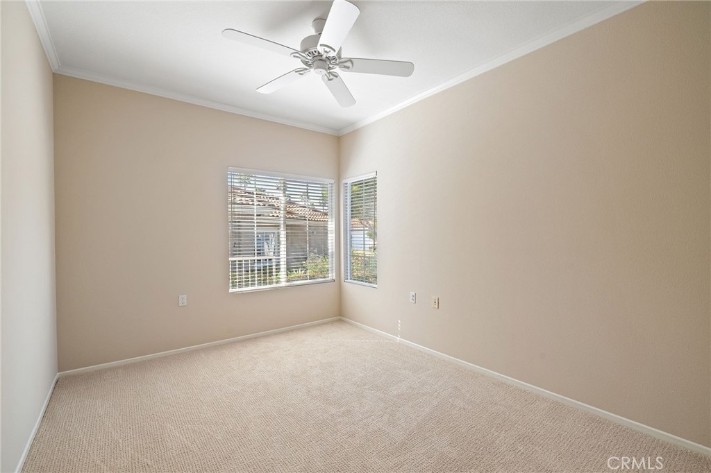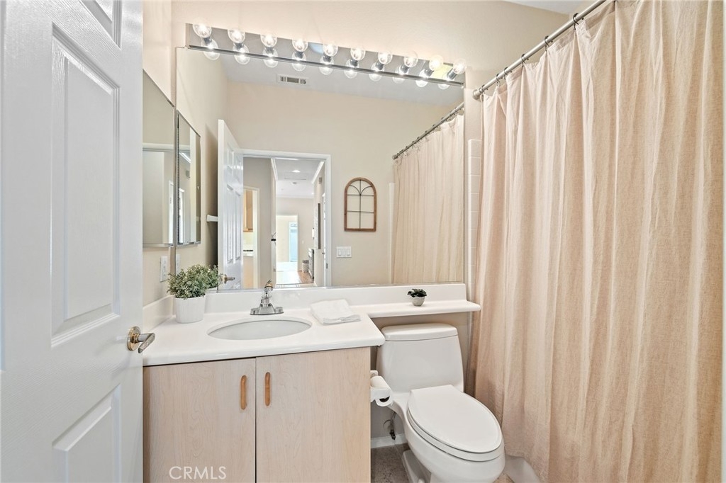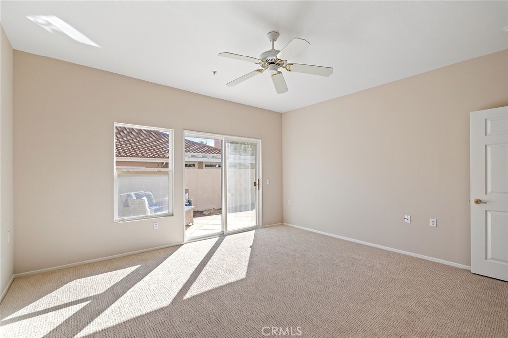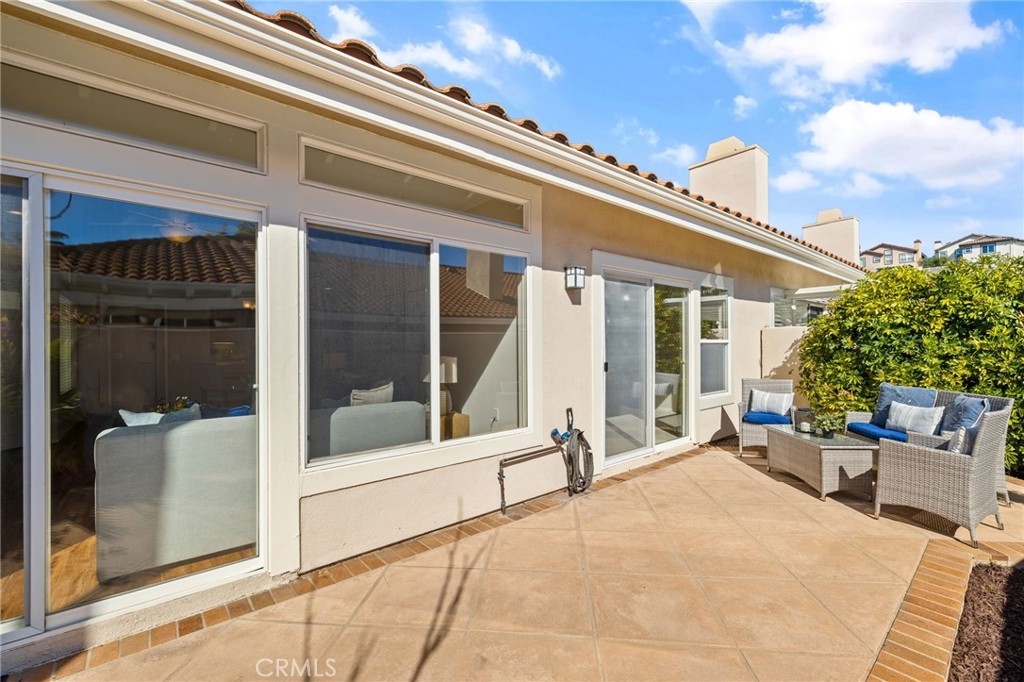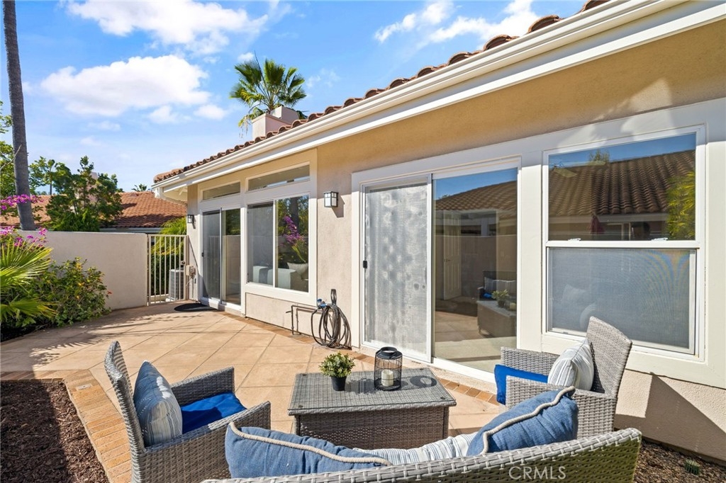 Welcome to the prestigious, guard-gated 55+ community of Palmia. This desirable end-unit, single-level residence offers 2 bedrooms, 2 bathrooms, and a 2-car direct-access garage — blending comfort, thoughtful design, and an exceptional lifestyle. Enhanced by soaring 9-foot ceilings and abundant natural light, the home feels open and airy throughout. The inviting living room features a cozy fireplace and expansive sliding glass doors that open to a private patio retreat, creating seamless indoor-outdoor living. The open-concept layout accommodates both a formal dining area and a charming kitchen nook for casual meals. The primary suite offers direct patio access, two closets, and an en-suite bath with a no-step shower and dual-sink vanity. The secondary bedroom is thoughtfully positioned on the opposite side of the home, providing ideal privacy for guests or serving beautifully as a home office or fitness space. A separate interior laundry room includes generous cabinetry and a utility sink for added convenience. Recently painted with new carpet in the bedrooms, this home is truly move-in ready and ideal as a lock-and-leave residence for those who enjoy traveling with peace of mind. Palmia’s resort-style amenities include a clubhouse, pools and spas, fitness center, library, billiards room, tennis, pickleball, paddle tennis, basketball, horseshoe and bocce ball courts, and a beautifully maintained 18-hole putting green. Residents enjoy a vibrant social calendar with organized groups including multiple Bridge clubs, Bunco Babes, Literary Groups, Men’s Poker, Pinochle, Poker, and more — offering endless opportunities for connection and community. The association maintains front yard landscaping, and cable television and high-speed internet are included. Residents also enjoy exclusive Mission Viejo Lake privileges. Ideally located near the 241 Toll Road, Irvine Spectrum, dining, shopping, and entertainment.