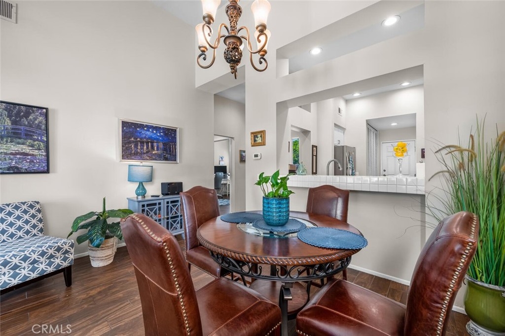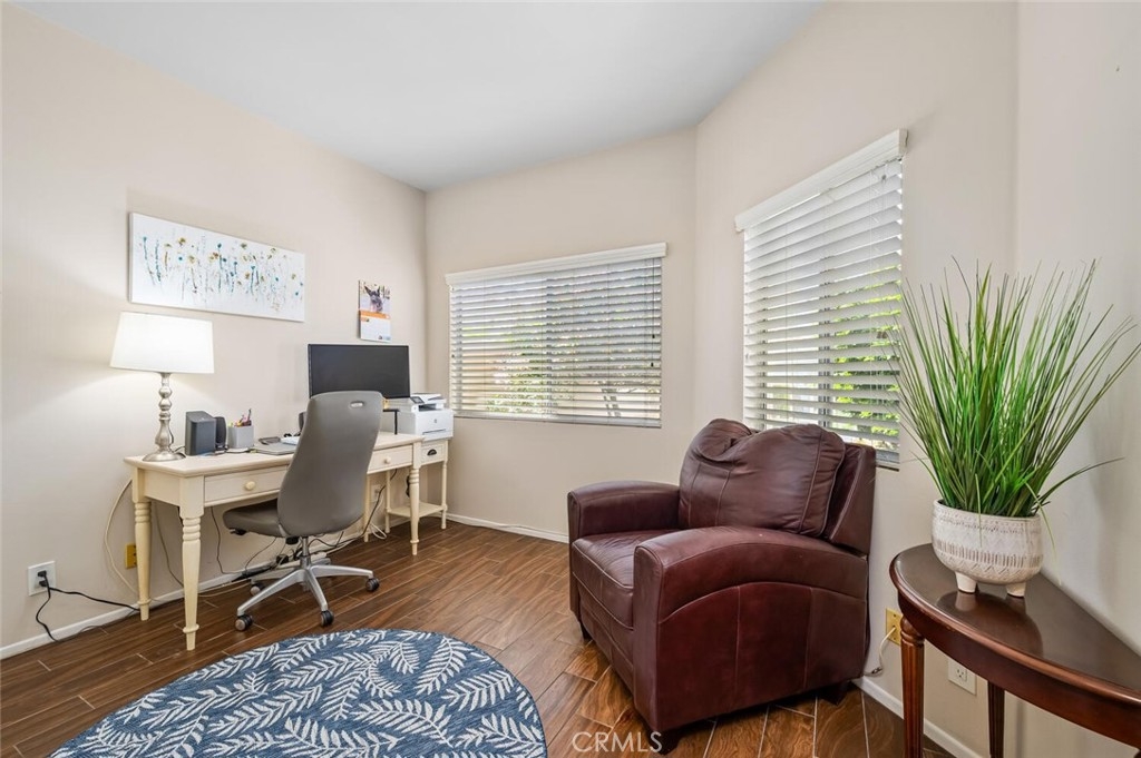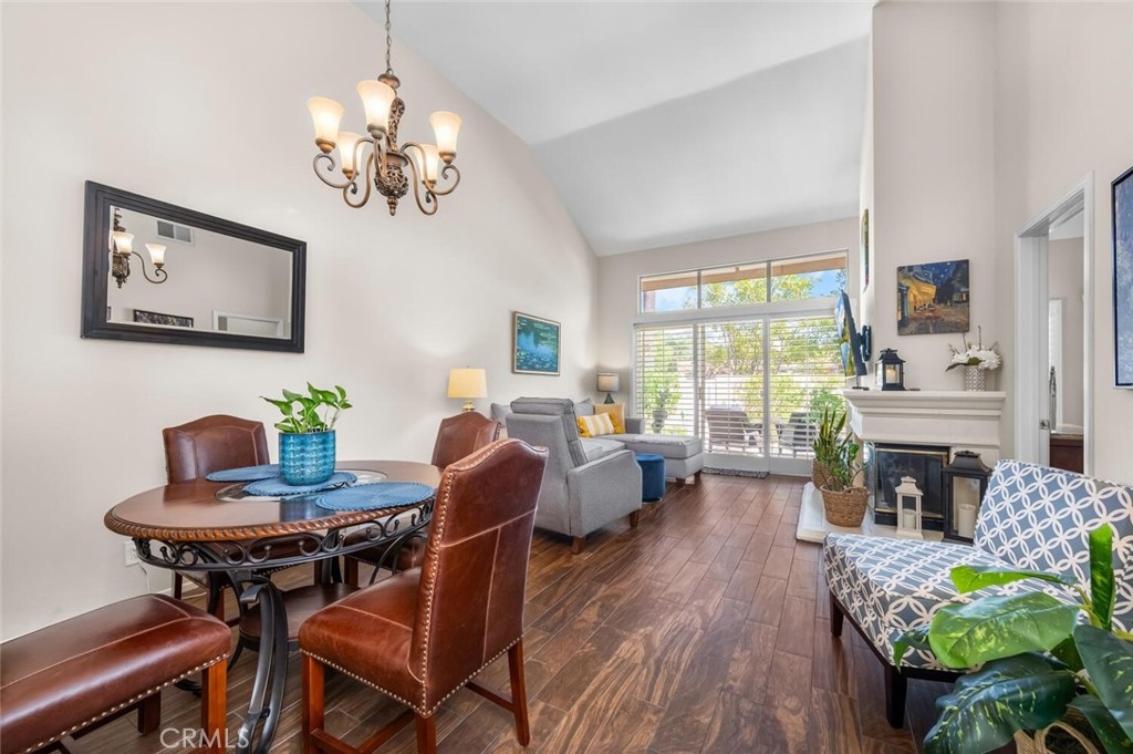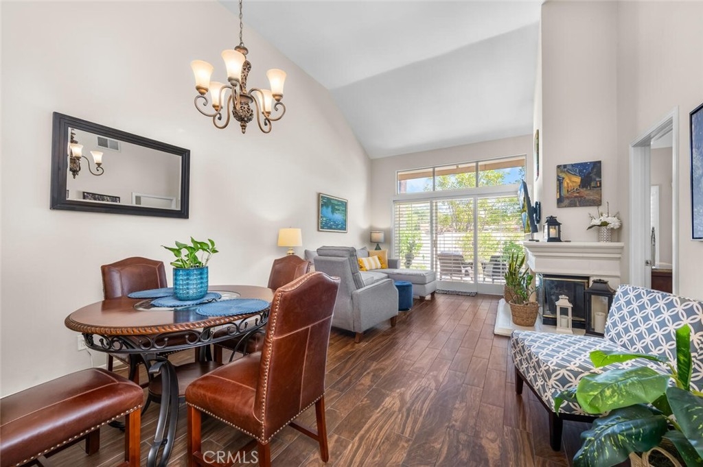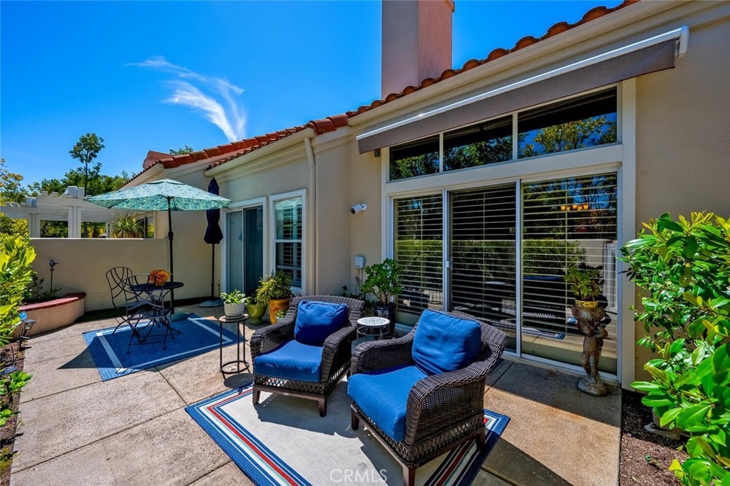 Charming Single-Level Home with Den in the Heart of 55+ Palmia. Step into this delightful single-level residence featuring Two Bedrooms and Two Full Baths. Soaring ceilings and plantation shutters create a light, bright, and cheerful atmosphere throughout. Move-in ready, this home offers a perfect blend of charm and comfort. The updated kitchen boasts newer stainless-steel appliances—including a refrigerator, convection microwave, and gas range— new quartz counter-tops and offers a peek-a-boo view into the dining area and adjacent great room. A cozy fireplace adds warmth and character to the Great room. Currently used as an office, the front den includes a door for privacy and built-in shelving, which may be reconfigured into a closet for added flexibility. Enjoy outdoor living on the lovely patio—ideal for a bit of gardening or dining Al Fresco. A retractable awning provides shade and comfort for those sunny afternoons. Additional features include an indoor laundry area, single-car attached garage PLUS an adjacent detached garage for extra storage or parking. Located in the highly sought-after 55+ Palmia community, you'll have exclusive access to resort-style amenities including a clubhouse, swimming pool, spa, 18-hole putting green, fitness center, pickleball and tennis courts, a library, shuffleboard, bocce ball, and more. Plus, enjoy membership to Lake Mission Viejo with boating, beaches, concerts, and picnicking. Conveniently close to shopping, dining, and entertainment—this home is truly a gem. Don’t miss the opportunity to make it yours!