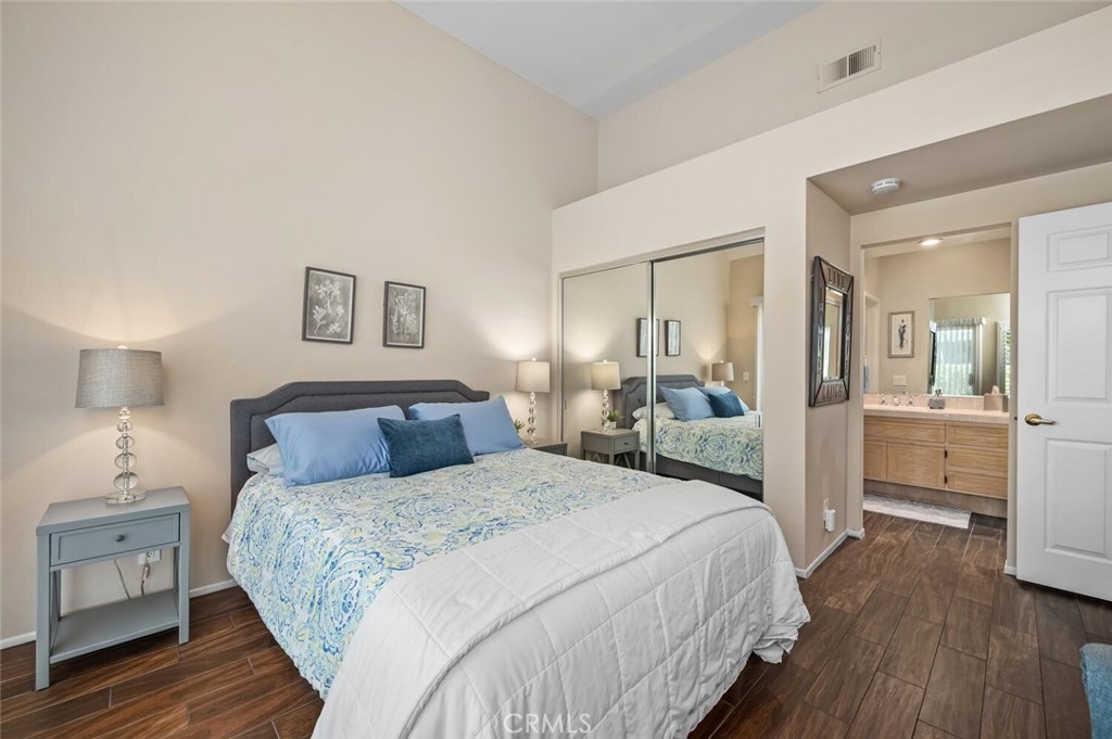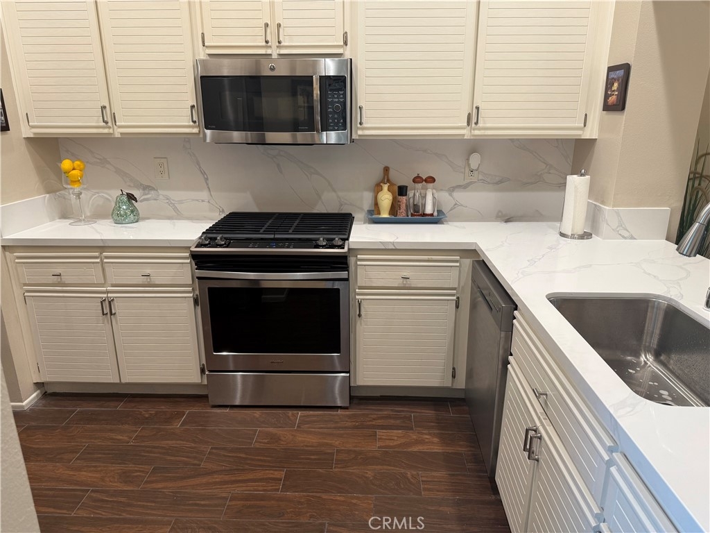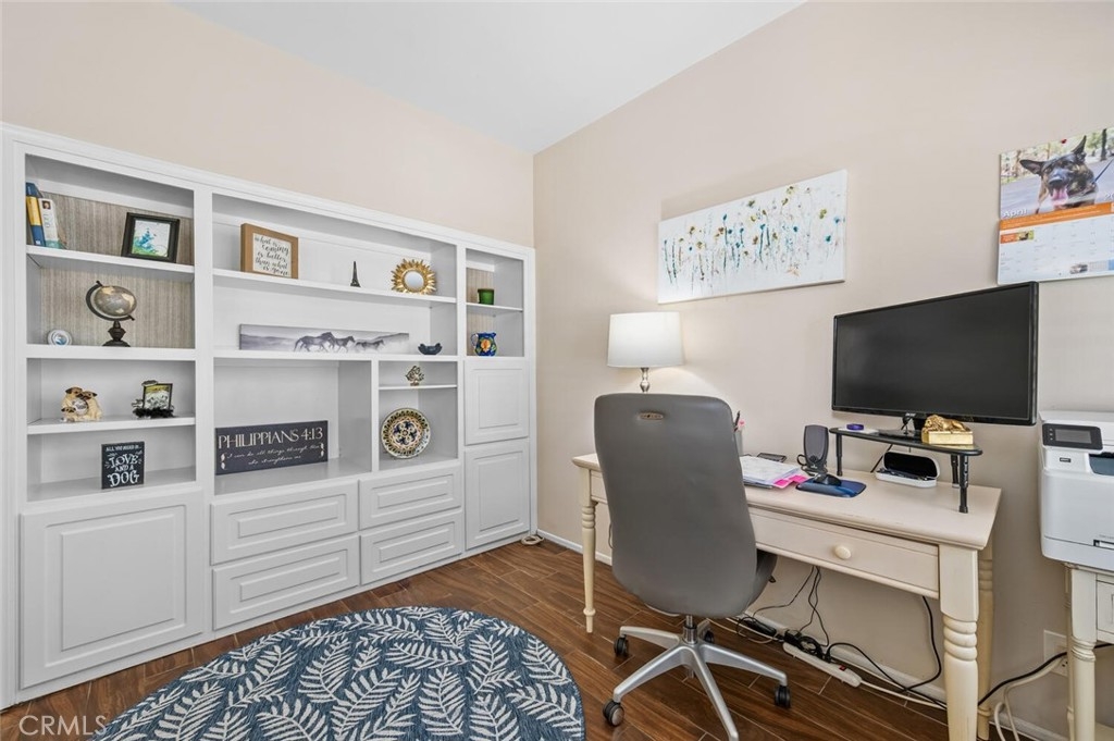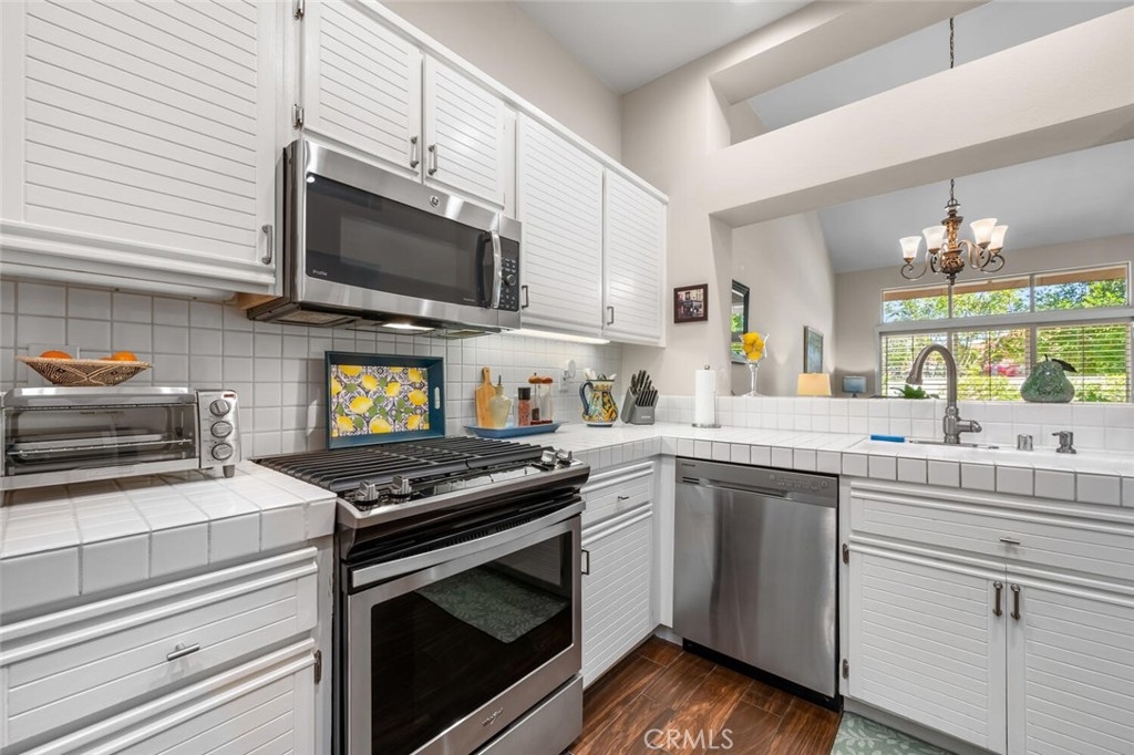 Charming Single-Level Home with Den in the Heart of 55+ Palmia. Step into this delightful single-level residence featuring Two Bedrooms and Two Full Baths. Soaring ceilings and plantation shutters create a light, bright, and cheerful atmosphere throughout. Move-in ready, this home offers a perfect blend of charm and comfort. The updated kitchen boasts newer stainless-steel appliances—including a refrigerator, convection microwave, and gas range— new quartz counter-tops and offers a peek-a-boo view into the dining area and adjacent great room. A cozy fireplace adds warmth and character to the Great room. Currently used as an office, the front den includes a door for privacy and built-in shelving, which may be reconfigured into a closet for added flexibility. Enjoy outdoor living on the lovely patio—ideal for a bit of gardening or dining Al Fresco. A retractable awning provides shade and comfort for those sunny afternoons. Additional features include an indoor laundry area, single-car attached garage PLUS an adjacent detached garage for extra storage or parking. Located in the highly sought-after 55+ Palmia community, you'll have exclusive access to resort-style amenities including a clubhouse, swimming pool, spa, 18-hole putting green, fitness center, pickleball and tennis courts, a library, shuffleboard, bocce ball, and more. Plus, enjoy membership to Lake Mission Viejo with boating, beaches, concerts, and picnicking. Conveniently close to shopping, dining, and entertainment—this home is truly a gem. Don’t miss the opportunity to make it yours!