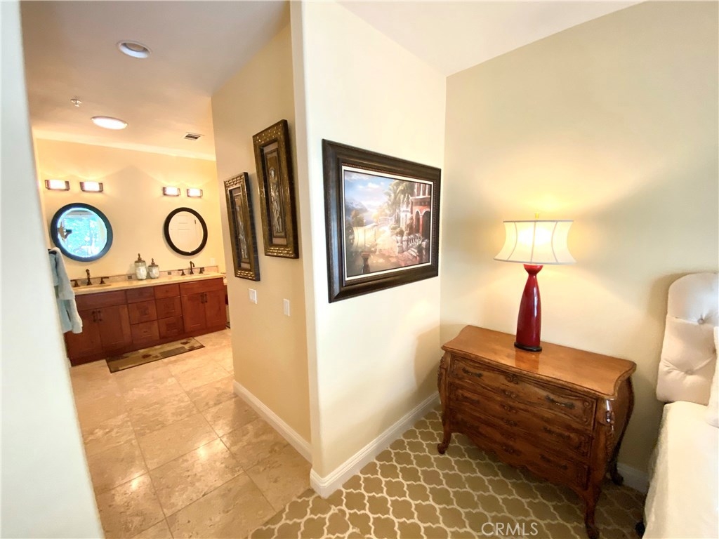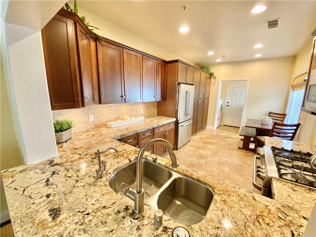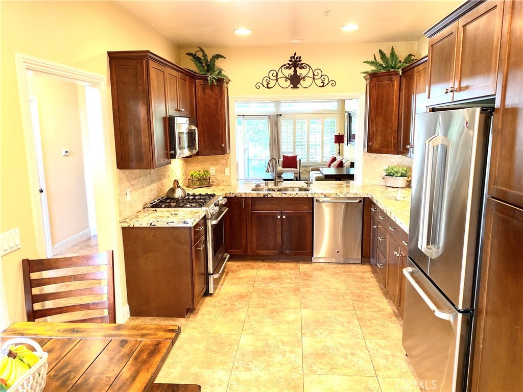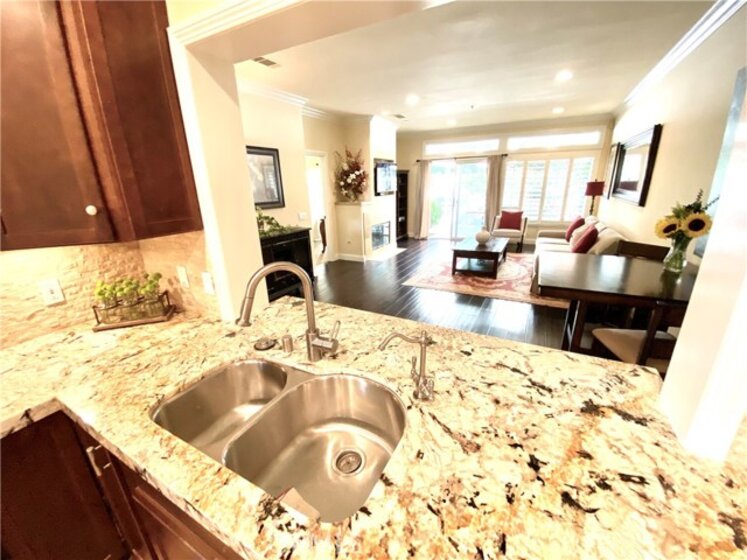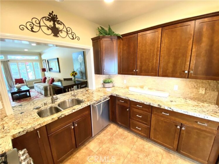 This fantastic home is located in the Palmia Senior Community. Recently remodeled and updated, this single level home is truly turn key. Freshly painted, new upgraded carpet, travertine and hardwood flooring, 2 bedrooms, 1 and 3/4 bath, dining area, also a roomy eat in kitchen with lots of storage and granite counters. Stainless steel appliances. Master bedroom with sliding door to patio and enlarged master bathroom featuring a no step in tumbled marble shower. Inside laundry and 2 separate garages, one with direct access. Home is very quiet and private as it backs to a slope. A low maintenance nice size patio with cover and a built in BBQ is perfect for entertaining. The location is private and very quiet. The Palmia Senior Community is second to none with an 18 hole putting green, tennis & paddle tennis courts, gym, pool & spa, billiards, bocce, shuffle board, library, lovely club house, many clubs, parties and much more. A must see property!