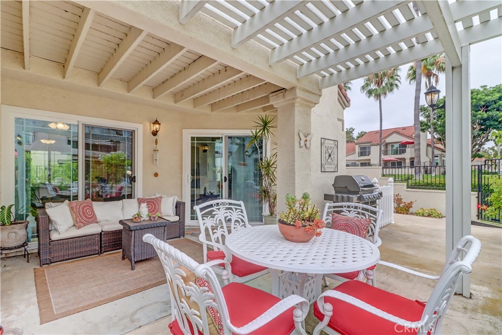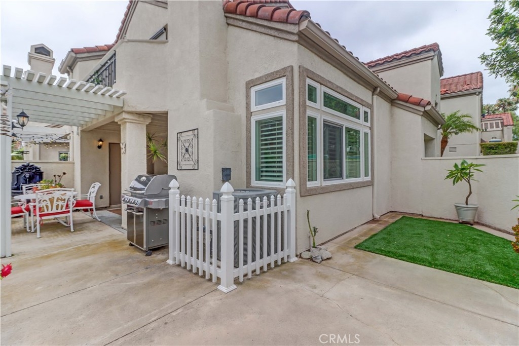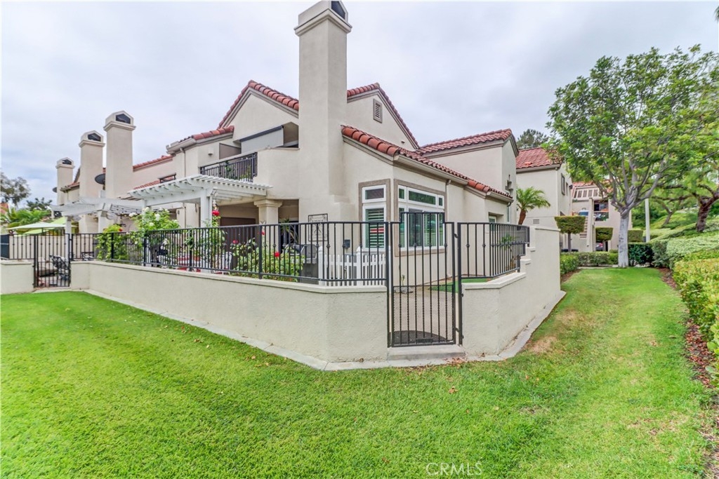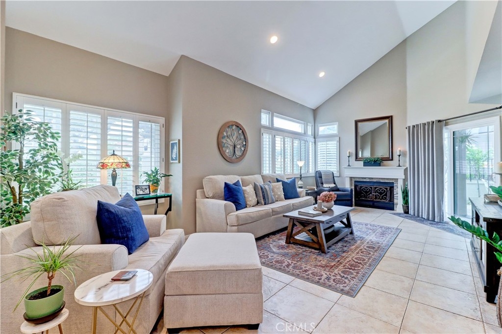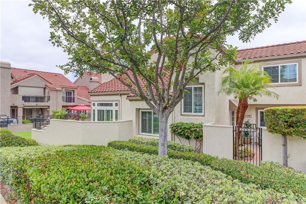 Welcome to the most sought-after floor plan in the community of Coral Gardens - a beautifully upgraded TRUE 3-bedroom, 3-bathroom END UNIT condo with the rare advantage of NOBODY LIVING ABOVE OR BELOW the interior living space. Ideally situated in a QUIET INTERIOR LOCATION away from street noise, this home is surrounded by a lush greenbelt and just a short walk to scenic Lake Mission Viejo. This private end-unit offers THREE DISTINCT OUTDOOR LIVING SPACES: a spacious enclosed front courtyard, a large wraparound back patio and a generous-sized balcony off the primary suite — perfect for enjoying the spectacular 4th of July fireworks from the comfort of home. The back patio has gate access to the surrounding greenbelt area, is partially covered, has a tranquil fountain, and a brand-new patch of turf ideal for kids or pets. This floorplan offers a MAIN FLOOR BEDROOM AND FULL BATHROOM-perfect for guests, multi-generational living, playroom, home office... Each bedroom in the home has exclusive use of a full bathroom. The living room is airy with its vaulted ceilings and large windows offering plenty of space to accommodate formal dining or simply enjoy as a spacious great room. The kitchen features quartz countertops, stainless steel appliances (gas range, refrigerator, and microwave), and a breakfast bar. Upstairs, the spacious primary suite opens up to a large balcony with an attached sunshade. The Primary bathroom has dual sinks, a walk-in shower and spacious closet space. A secondary bedroom and full bathroom complete the upper level. Additional upgrades include NEW WINDOWS AND SLIDERS THROUGHOUT (3 years old), WATER SOFTENER (2 years old), PLANTATION SHUTTERS, NEWER HVAC (2013), recessed lighting, crown molding, tile flooring, custom fireplace doors, and the ENTIRE HOME HAS BEEN REPIPED WITH PEX (2015). The attached 2-Car Garage has an epoxy-coated floor and plenty of storage spaces to keep you organized. Front loading washer and dryer is included, and you will love the custom & functional laundry sink/storage area next to it. The Coral Gardens community is meticulously maintained and offers fantastic amenities, including a sparkling pool, two spas, two tennis courts, and a grassy field perfect for picnics and outdoor recreation. As a homeowner, you'll also enjoy exclusive MEMBERSHIP TO PRIVATE LAKE MISSION VIEJO with access to boating, swimming, 2 clubhouses, picnic areas and a variety of community events, such as the Summer Sunset Concert Series.