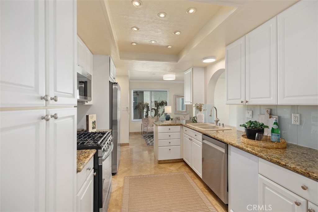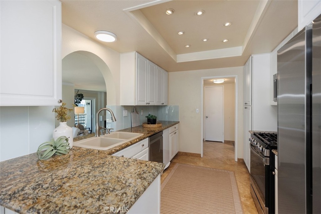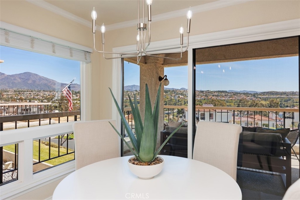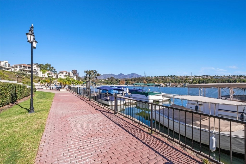 Beautifully upgraded Mallorca condo with the most incredible panoramic views of Lake Mission Viejo and the Saddleback Mountains. Enjoy one level living, with only two steps inside the unit and ground floor entry (3 steps to front door). This residence features a remodeled kitchen complete with granite counters, glass tile backsplash, stylish cabinet doors with soft close feature and drawers with soft close and dovetail joint construction, pull out pantry racks, a double sink, recessed can lights and stainless steel appliances. Also enjoy tastefully remodeled bathrooms, newer dual pane and energy efficient windows and doors and newer HVAC system. Bright open floor plan with primary bedroom and large secondary bedroom. Plenty of room for entertaining inside and outside on the oversized balcony to enjoy forever views of the lake and the majestic mountains. Large 2 car garage and guest parking nearby, premier lot/location and highly desirable southeast orientation. Living in Mallorca means enjoying an array of amenities: a private beach with restrooms, picnic tables, BBQs, two swimming pools with spas and restrooms, 72 boat docks, and paddleboard racks. Plus, lake membership opens the door to boat rentals, exclusive access to North and East Beach facilities, summer sunset concerts, and spectacular lake fireworks. Don't miss out if you are looking for remodeled and one of the best views in the community.
