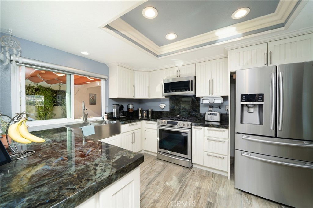 3D Walk-thru: https://tinyurl.com/valdemosa. Welcome to the 24-hour guard-gated community of Mallorca! Lakeside life is brimming with stunning water, mountain and cityscape views! This move-in ready corner unit has lake views from master bedroom, living room, amazing wraparound balcony. You’ll enjoy summer concerts from your balcony or private beach area. This Grandesa Model, the largest model in Mallorca, has a main floor master bedroom. It’s one of only 30 Mallorca homes with a full-size driveway and a 2-car attached garage! With only one shared wall, the breathtaking architecture, vaulted ceilings and abundance of windows drench this space with natural light and breeze. A custom open-wall design showcases your kitchen and dining area. You’ll love the durable porcelain tile flooring, granite countertops and island, gas stove and Samsung stainless-steel appliances, double sink with view window and pendant/recessed lighting. The family room has a cozy fireplace with a slider that reveals spectacular lake views. The master suite features an arched opening, beautiful feature wall and more lake views along with a spacious ensuite bathroom. Lounge in your outdoor space perfect for entertaining with a built-in BBQ and gas firepit. Additionally, this condo offers in-home laundry, a tankless water heater, newer AC, Ring security system and dual-pane Low-E windows. The coveted Mallorca community has nearby shopping & dining and offers sparkling pools and spas as well as a community boat slip option. Your private Lake Mission Viejo membership includes boating, swimming, picnic/BBQ area, and a wide variety of family-friendly local event opportunities! Easy access to Saddleback Valley Unified Schools, hiking/biking trails, shopping, restaurants and the 5/405 freeways! NO MELLO ROOS!!!