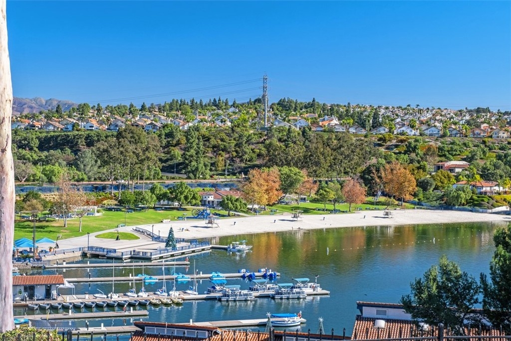 Model perfect Mallorca condo with incredible panoramic views of Lake Mission Viejo. Enjoy one level living, with only two steps inside the unit and ground floor entry. This residence has been expertly remodeled and thoughtfully designed and almost everything is new: new luxury vinyl flooring and carpet throughout, new dual pane and energy efficient windows and doors, remodeled kitchen with solid surface counters and designer backsplash, new lighting, new interior paint, new interior doors, custom fireplace surround, new door hardware, remodeled bathrooms with an all-new primary bathroom shower and vanity, and the list goes on! Bright open floor plan with primary bedroom and large secondary bedroom. Plenty of room for entertaining inside and outside on the oversized balcony to enjoy forever views of the lake and beautiful sunsets. Large 2 car garage and guest parking nearby, premier lot/location and highly desirable southwest orientation. Living in Mallorca means enjoying an array of amenities: a private beach with restrooms, picnic tables, BBQs, two swimming pools with spas and restrooms, 72 boat docks, and paddleboard racks. Plus, lake membership opens the door to boat rentals, exclusive access to North and East Beach facilities, summer sunset concerts, and spectacular lake fireworks. Don't miss out if you are looking for move-in ready and one of the best views in the community.