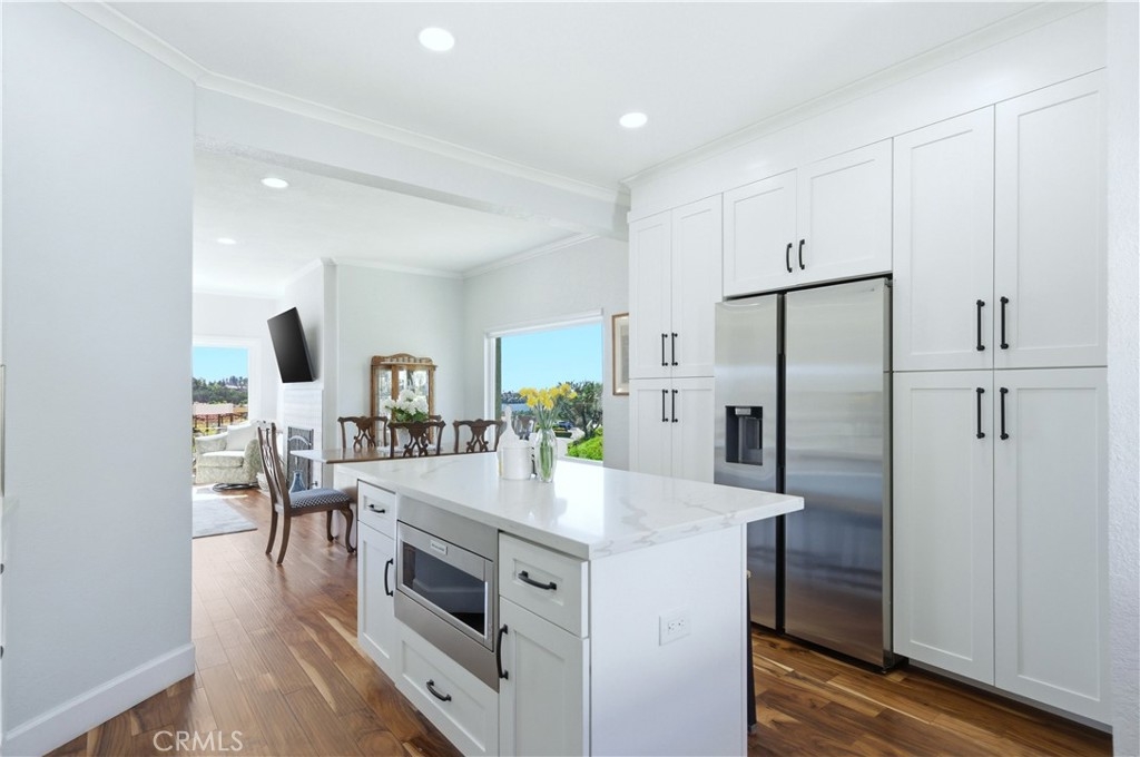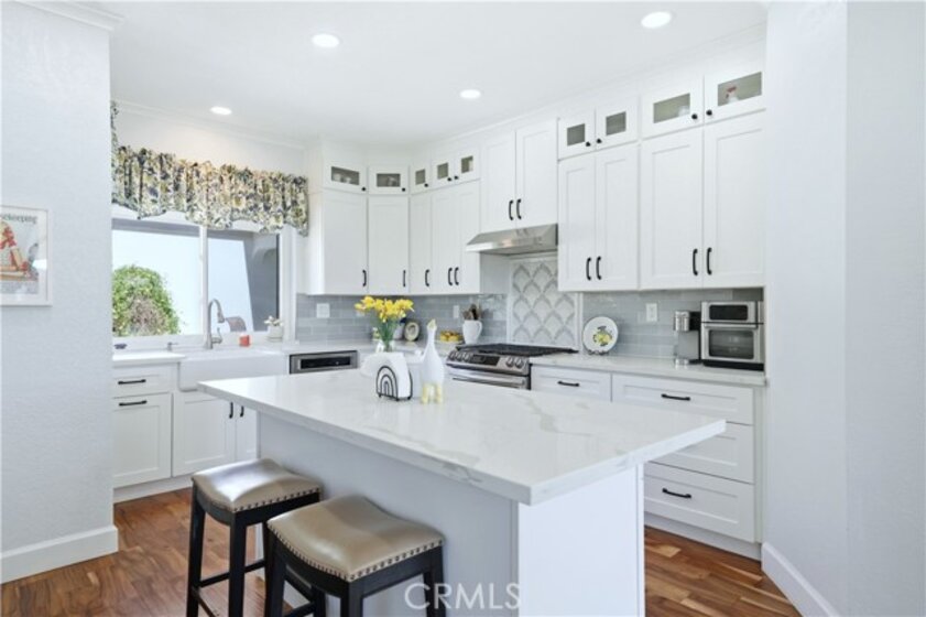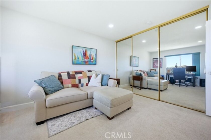 AT ONE TIME OR ANOTHER..... all of us have wondered, "why did the builder do that?" or "why didn't the builder do that?" With the upgrades and improvements that have been made, there is no need for second guessing any of that. Talk about "turnkey"! The tasteful front courtyard is just a hint. From removing the original wall between the kitchen and dining room creating that popular "Great Room Effect" by unifying the LR, DR, kitchen and nook, to raising the ceilings 2 feet in the kitchen, nook and primary bath, to adding a useful and functional kitchen island, to installing a barn style door to more easily access the increased walk in pantry, to the thoughtful addition of solar tubes to bring natural light into the two traditionally darkest upstairs rooms, there has been obvious attention to detail that anyone would be proud to claim as their own. Common features throughout the home include textured ceilings, expensive blinds, recessed can lighting, raised panel doors, Decor plugs/switches, door casings, oversized baseboards, crown molding, vinyl windows/sliding doors, engineered wood flooring, shaker style cabinetry with soft close features and drawers with dovetail joint construction. Be sure to notice the built-out closets. The kitchen is a thing of beauty and wonder. The barn style sink, the inlay tile design and the quartz counters might distract you from appreciating the extra storage provided by the larger cabinets. In order to fully appreciate the primary bath, you would need to see what it used to look like. The floor-to-ceiling tile walls and impressive glass shower appointments just may take your breath away. Perhaps the biggest and BEST FEATURE of the home is the PANORAMIC VIEW. From inside the home, you can see north to North Beach and south to East Beach and the Oak Preserve. From the balcony off the LR, you can see north from the natural serenity of Saddleback Mountain all the way south to Alicia. We have even not mentioned the private, sandy Mallorca beach with its bar-b-q's, picnic tables, cabana, restrooms and cordoned off swimming area. Nor have we described the 72 boat docks, 2 pools, 2 spas, the peace and quiet or the sense of security provided by a 24/7 manned gate. You are a member of LMVA (concerts, boating, swimming). Then there is that shopping option at MV Mall. Less than 30 minutes from several world destination beaches and between LA and SD, the opportunities are endless. You are investing in more than a home. It is a lifestyle.