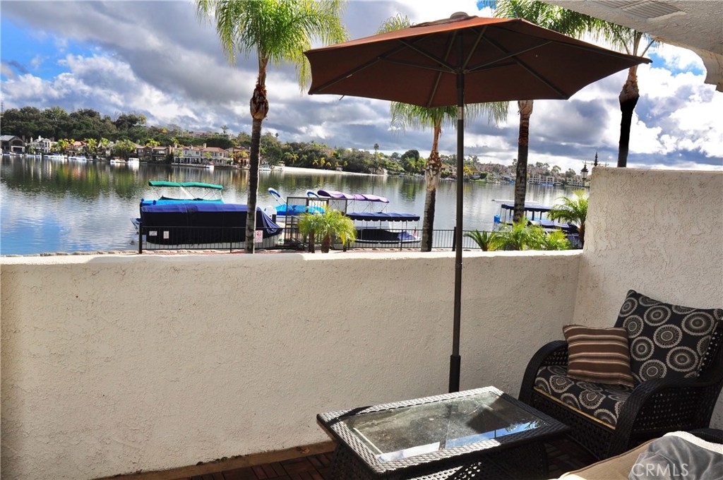 Rare Opportunity….Enjoy the ambiance of an unobstructed view with lakefront living at its finest! A special location on a cul-de-sac with extra guest parking just steps from lake access, private boat docks and the lower pool/spa area. One of the few homes without docks directly in front of it, your panoramic view includes an end-to-end lake experience, East Beach, North Beach, the Oak Preserve, sunrises and majestic Saddleback Mountain views. Perpetual light pours in from the celestial windows facing east (AM sun), South (midday sun) and West (PM sun). This “upside down” 2 story unit has no one living above or below. On street level is LV, DR, MBR, MB, Kitchen, Nook, and powder room. Downstairs offers a very spacious guest room, third guestroom/office, private patio and full bath. Perfect privacy for visitors! The Mallorca Community offers a 24/7 live gate attendant and private beach.
