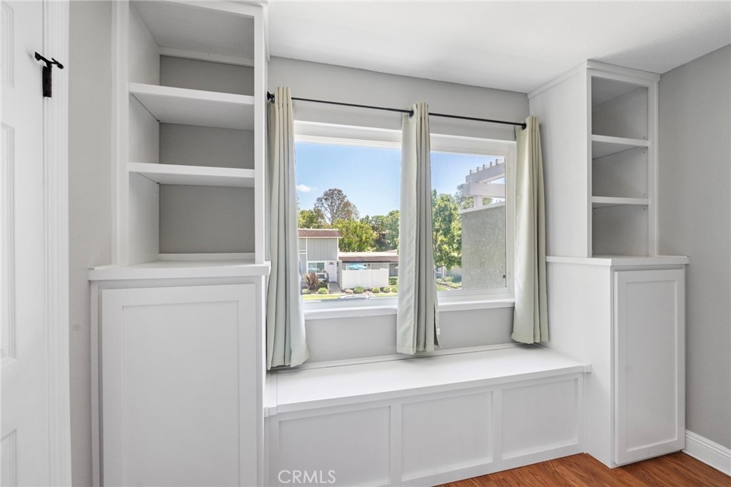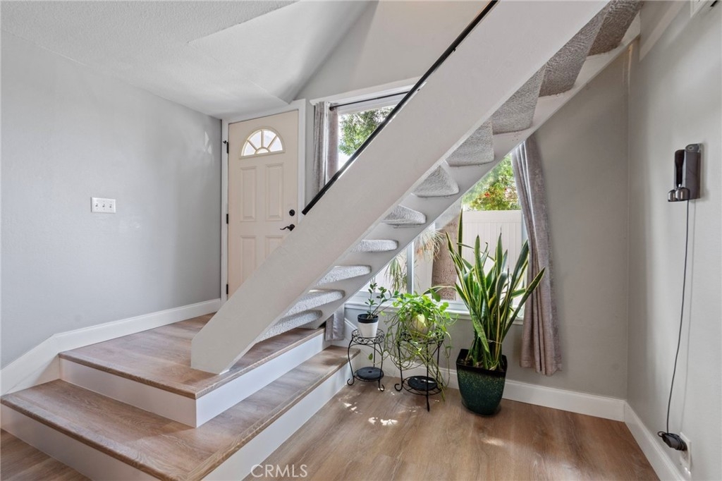 Beautifully remodeled 2-bedroom, 1.5-bath home located in the desirable Aliso Villas community of Mission Viejo. This well-maintained residence features upgraded luxury vinyl flooring throughout the downstairs, and a stunning remodeled kitchen complete with quartz countertops, stainless steel appliances, and a stylish farmhouse sink, large baseboards. Enjoy the convenience of direct access to the patio with recent fencing and a one-car garage with laundry hookups. Upstairs, you’ll find two spacious bedrooms, including one with custom built-in storage, and a beautifully updated bathroom showcasing a modern walk-in shower. Additional highlights include a one-car garage, an assigned parking space, and access to resort-style community amenities such as a pool and playground one building away. Exclusive membership to Lake Mission Viejo, which offers activities such as concerts, 4th of July event, boat rentals and two beaches. This turnkey home offers the perfect blend of style, comfort, and an exceptional lifestyle opportunity you won’t want to miss.