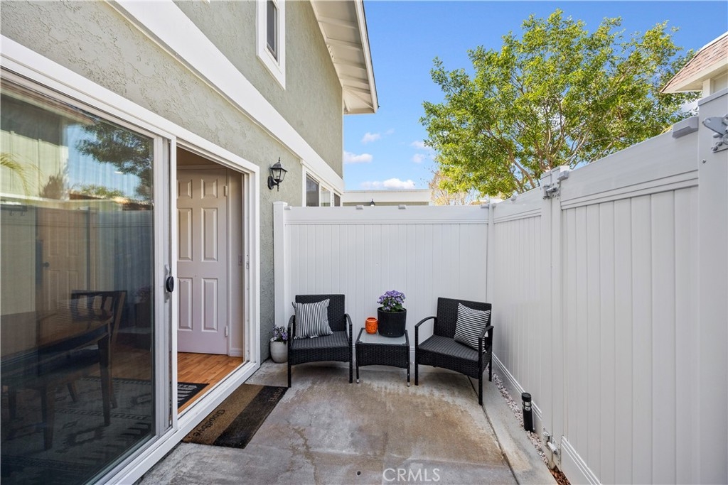 Tucked away in the heart of Mission Viejo, this turnkey, two bedroom, two bathroom home, with no one living above or below, and an attached garage, is not to be missed. The light and bright first floor boasts a spacious living area, updated paint and hardware in the kitchen, and a powder bathroom. Just off the dining area is a large and private patio, ideal for entertaining. Upstairs features updated LVP flooring, baseboards and paint. The two bedrooms are well-sized, both with walk-in closets, and the bathroom has been refreshed with board and batten accent wall, chic hardware, fresh paint and mirror. Enjoy the convenient, attached garage, plus another designated parking space, located near the unit. The serene community of Aliso Villas features a resort-style pool with spa, playground and lush landscape throughout. Located within a top-rated school district and central to golf courses, transportation, close to Target, grocery stores, the best beaches in Orange County, shopping and fine dining.
