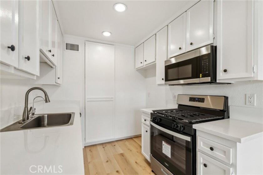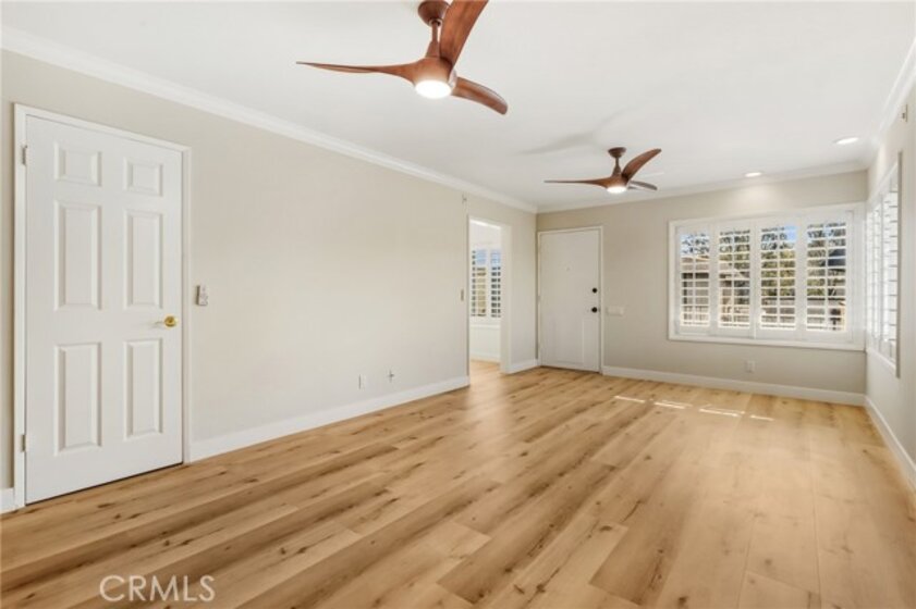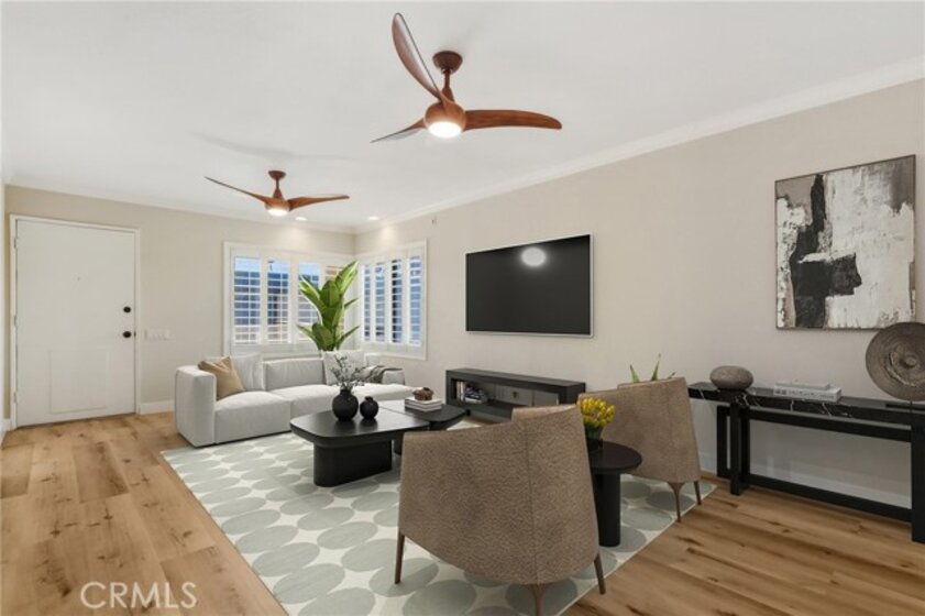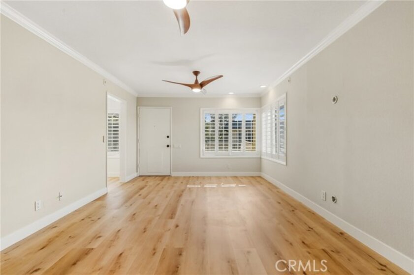 Lovely, move-in-ready carriage condo located in the desirable Aliso Villas II community. This private corner unit offers a single-level floor plan with an open layout and ceiling fans throughout. The home features dual-pane windows, central HVAC, new flooring, updated countertops in the kitchen and primary bath, and elegant crown molding. The kitchen is equipped with new dishwasher, microwave, and stove. Convenient in-unit washer and dryer hookups add to the home’s appeal. The property includes a one-car garage plus one assigned parking space. Community amenities include a pool and playground. Don’t miss this opportunity—schedule your showing today!