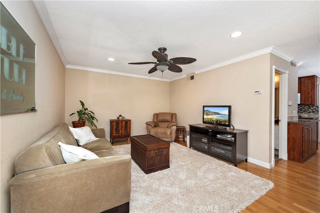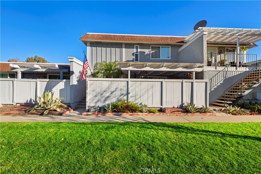 This beautiful Aliso Villas home features 2 bedrooms, 2 bathrooms with an open and inviting two story floorplan featuring an attached one car garage and additional assigned parking spot. No one above or below you! As you enter the property, you will be welcomed by a warm and inviting floor plan that features hardwood floors, scraped ceilings, recessed lights, crown moulding, double pane windows, and upgraded baseboards throughout. The kitchen and dining area open to the spacious, covered outdoor patio - perfect for reading or an afternoon BBQ. The kitchen was remodeled and features granite countertops, new spacious cabinets, recessed lighting, and added cabinet storage. Windows and sliding door to the outdoor patio are upgraded dual pane vinyl. Both bedrooms are upstairs feature new carpeting and large walk-in closets in both bedrooms. Property includes central A/C, and fibertite roofs. HOA amenities include pool, spa, playground, park areas, Community amenities include a pool, playgrounds and park areas. No mello-roos and low property taxes - don’t miss out on this amazing opportunity!